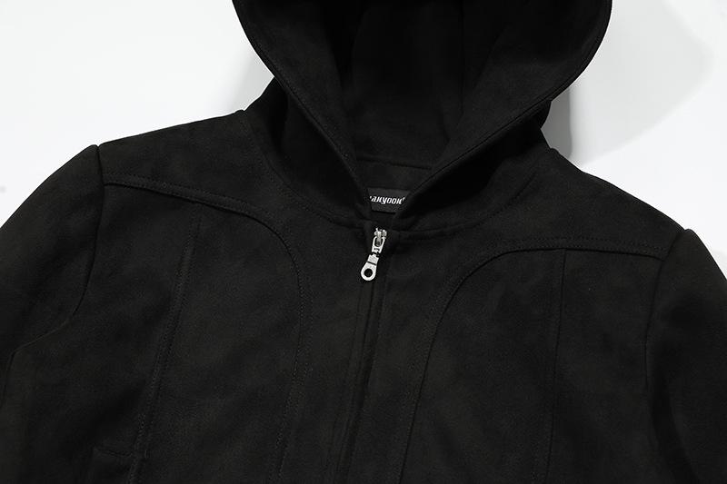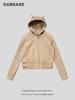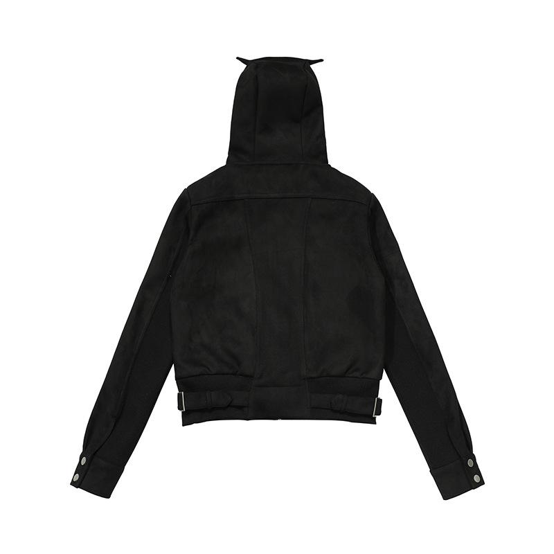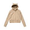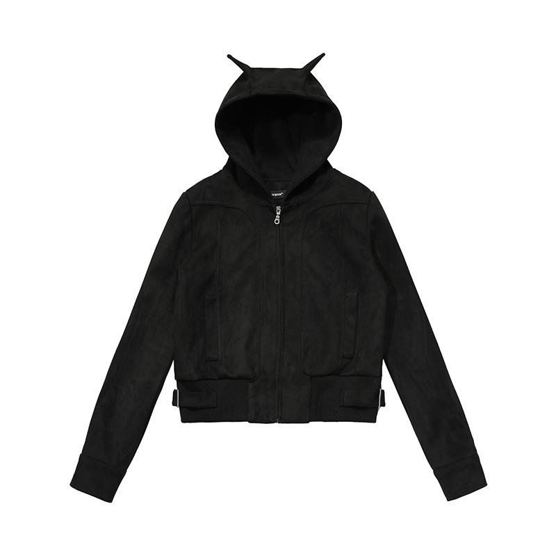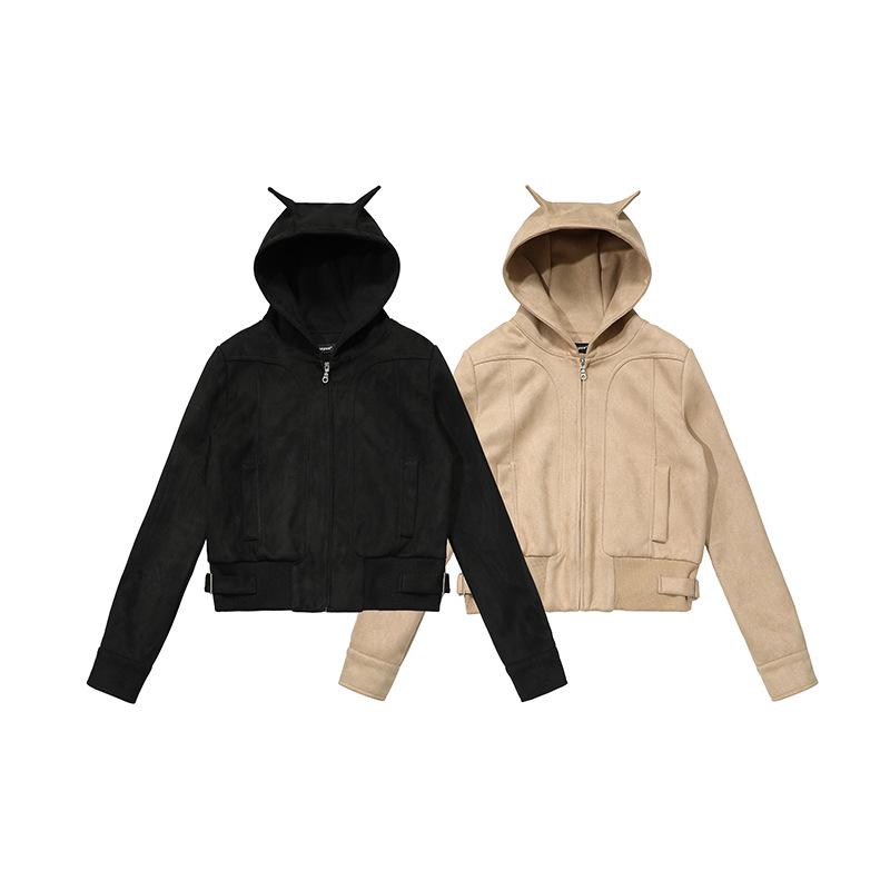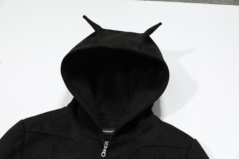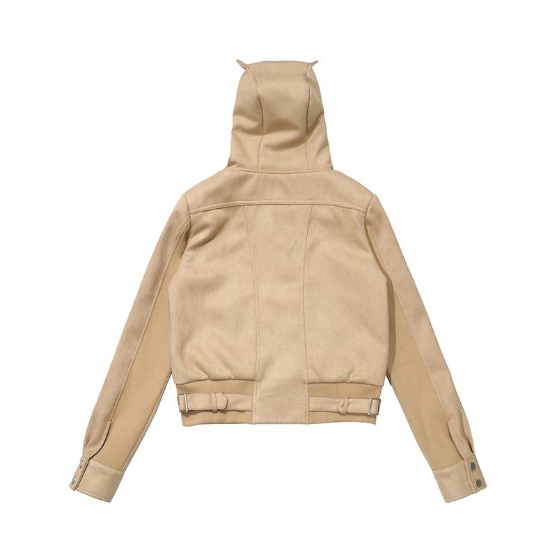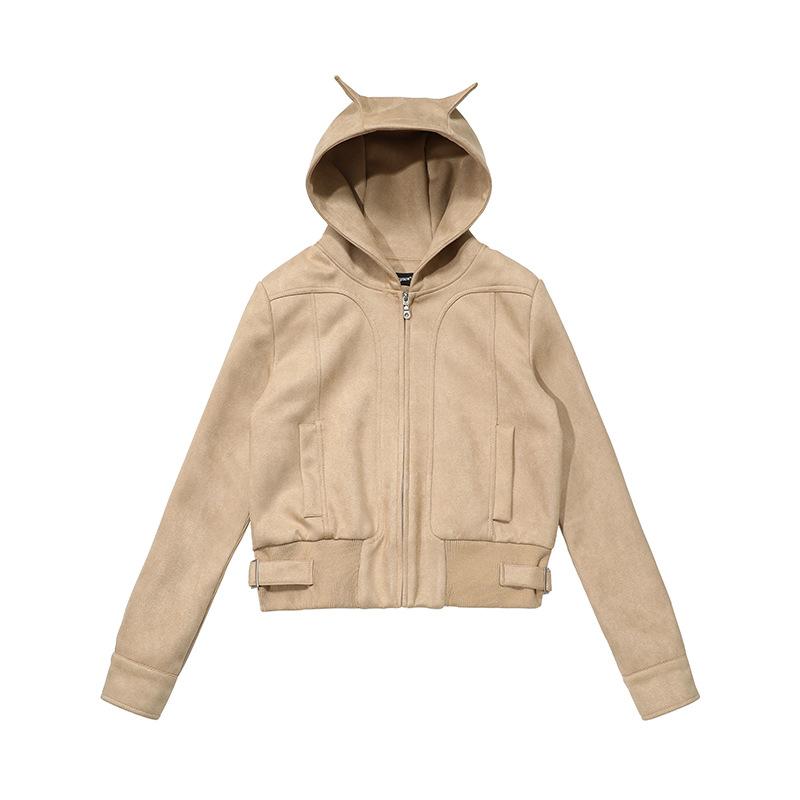 Calle Principal Americana Chaqueta Corta con Capucha de Cuerno de Diablito para Mujer Otoño Nuevo Retro Suelta de Gamuza Top