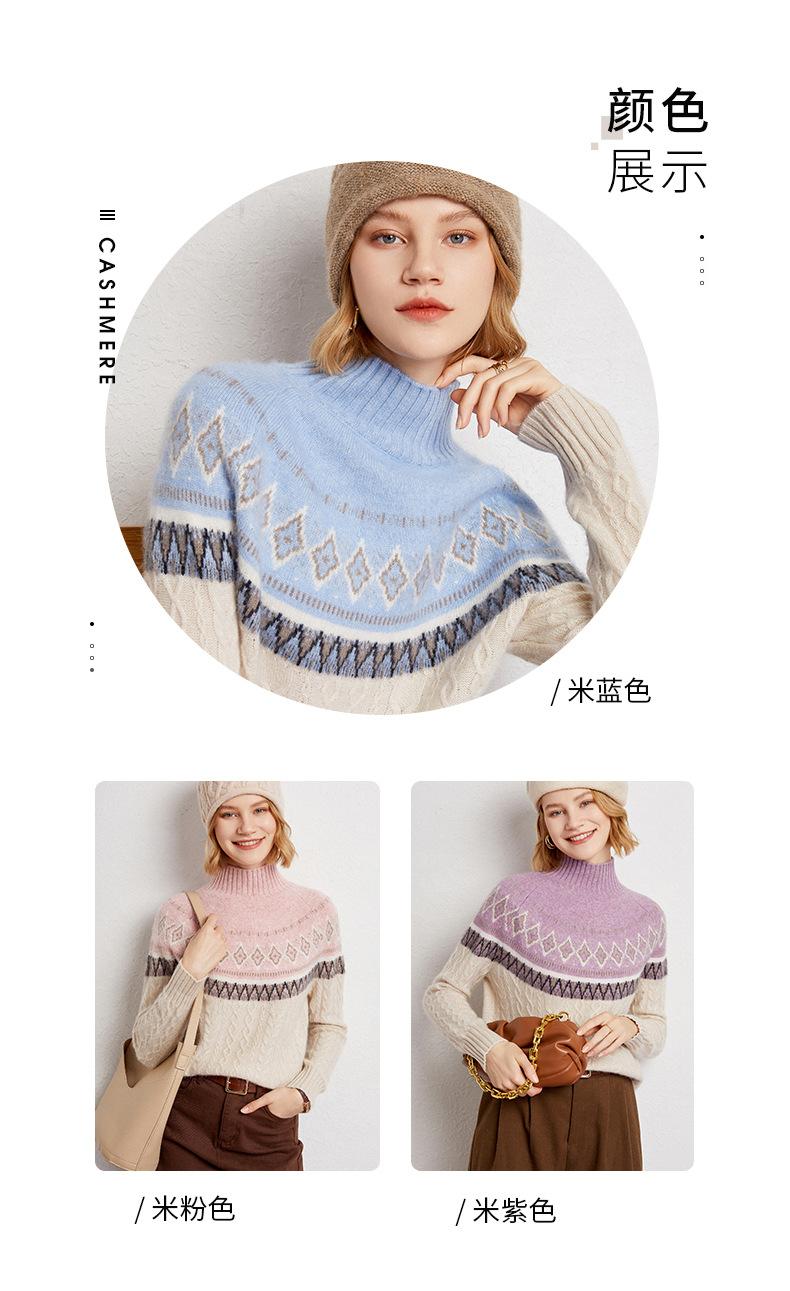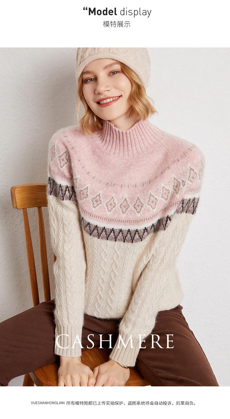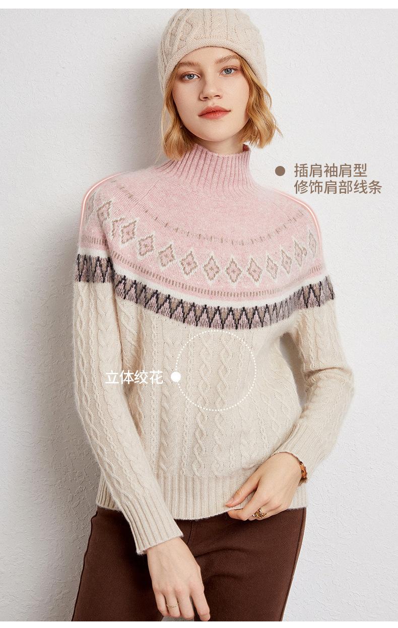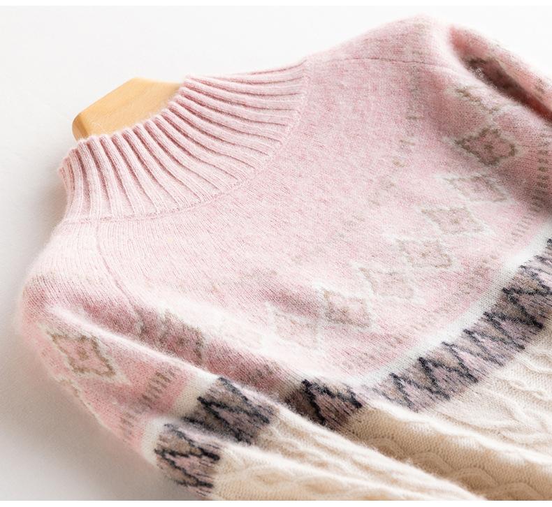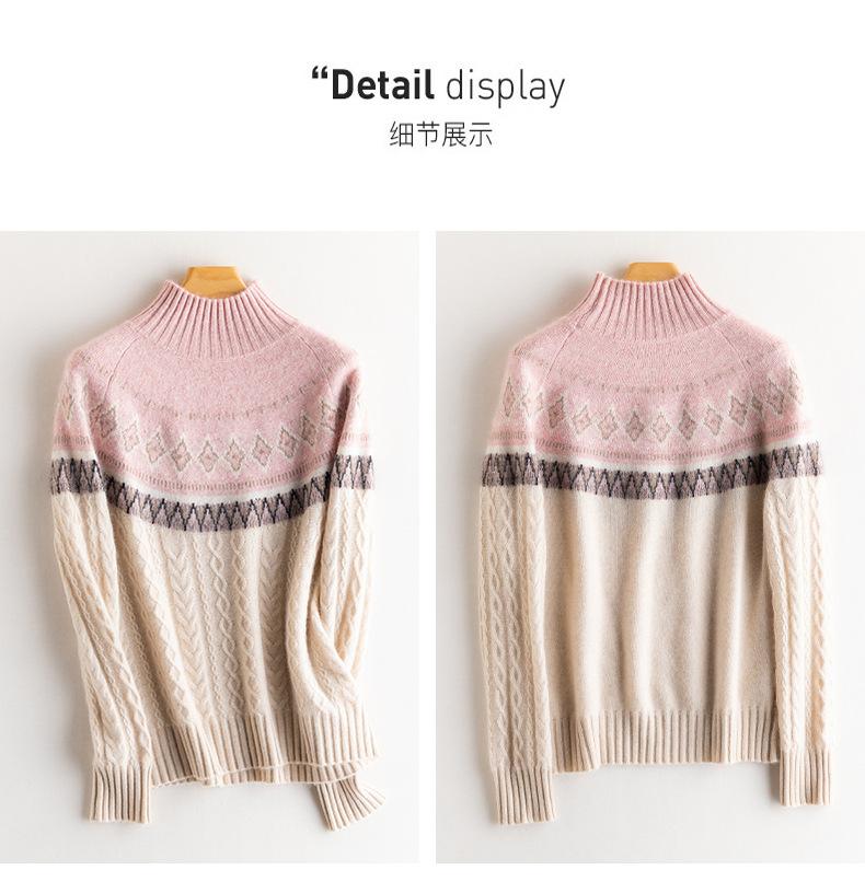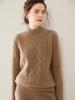 Suéter básico de punto de cachemira para mujer, nuevo de otoño e invierno, de punto crochet de siete agujas con cuello semi alto, suéter grueso de manga larga para llevar debajo