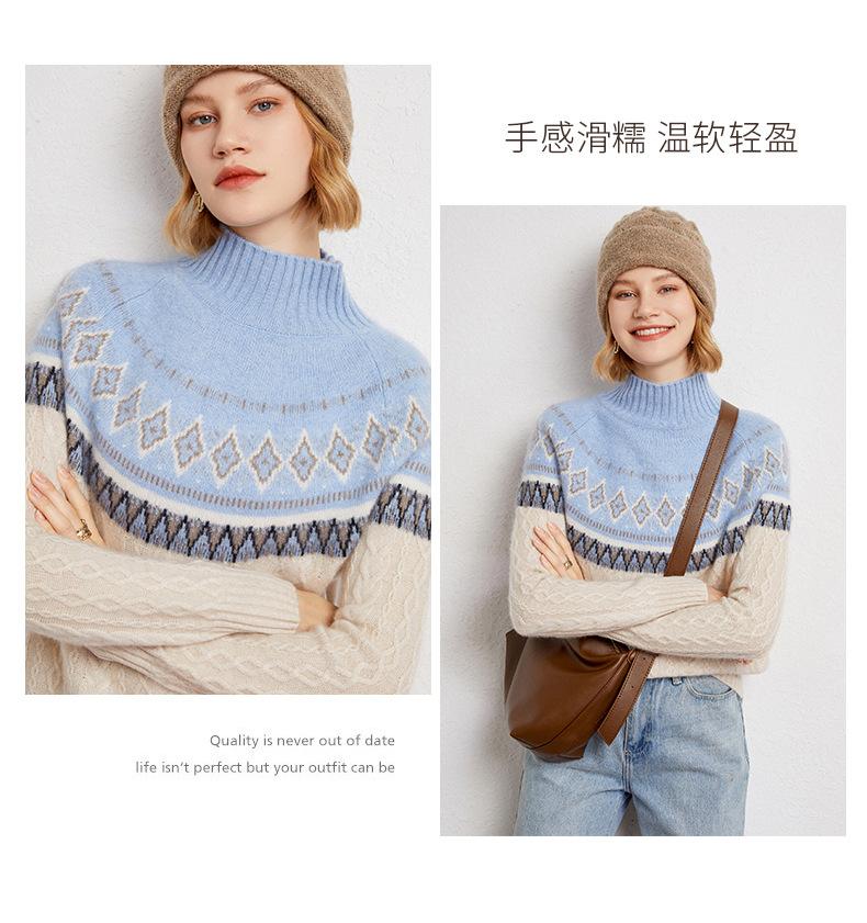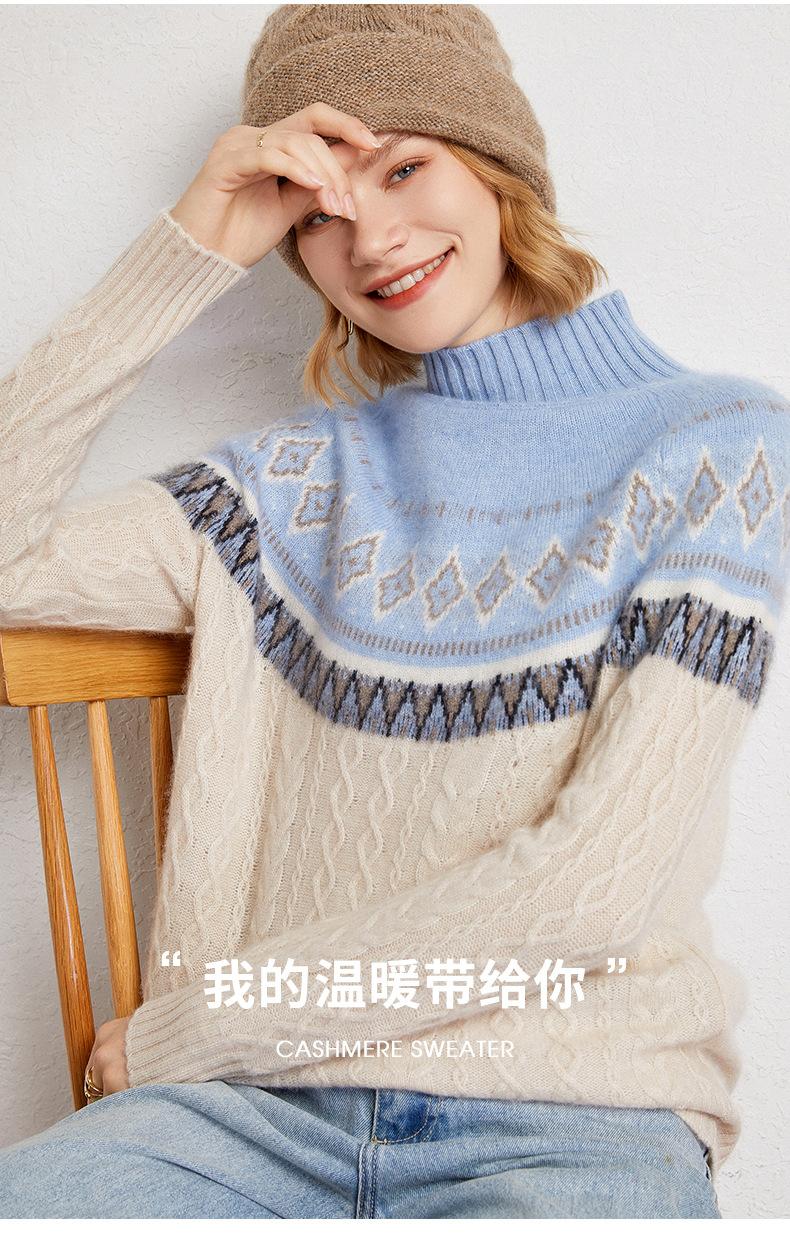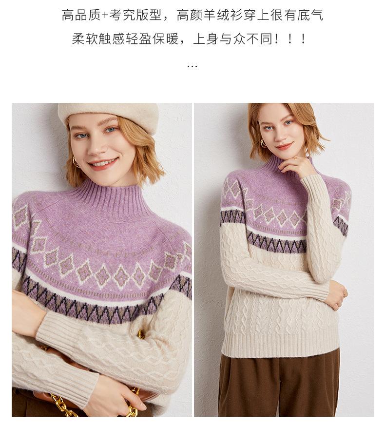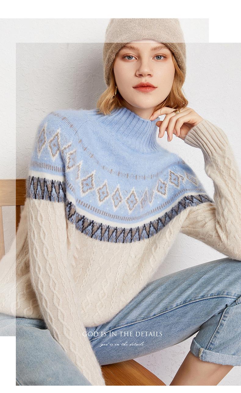 Suéter básico de punto de cachemira para mujer, nuevo de otoño e invierno, de punto crochet de siete agujas con cuello semi alto, suéter grueso de manga larga para llevar debajo