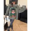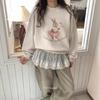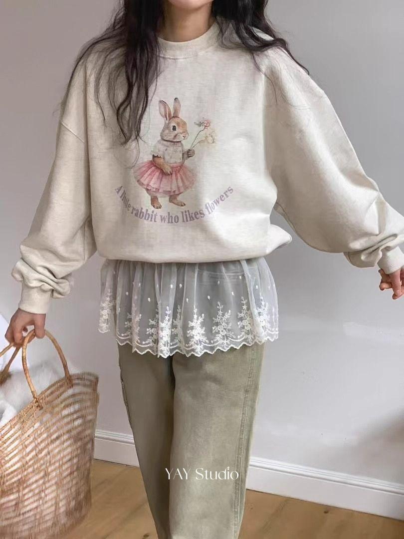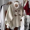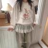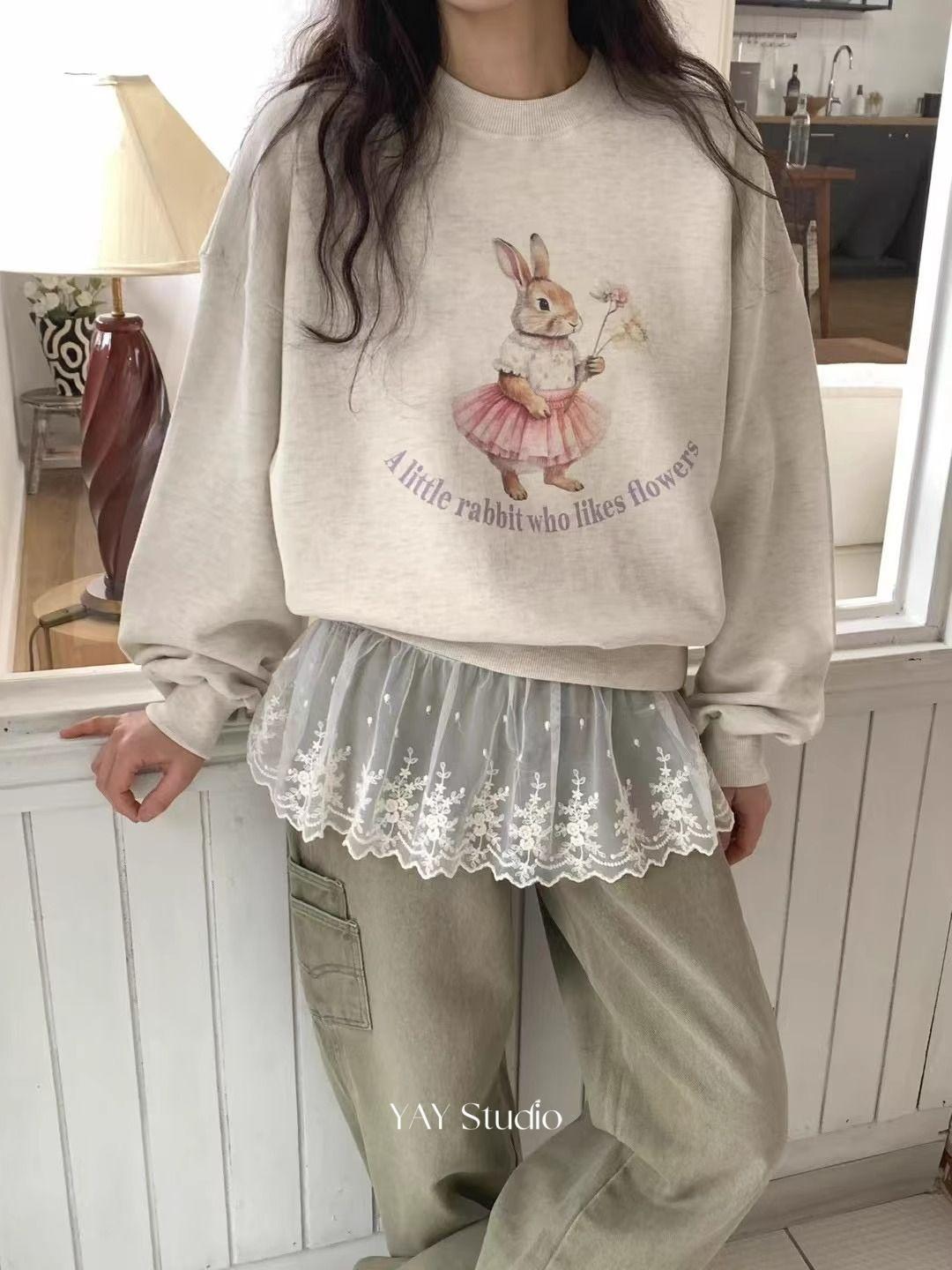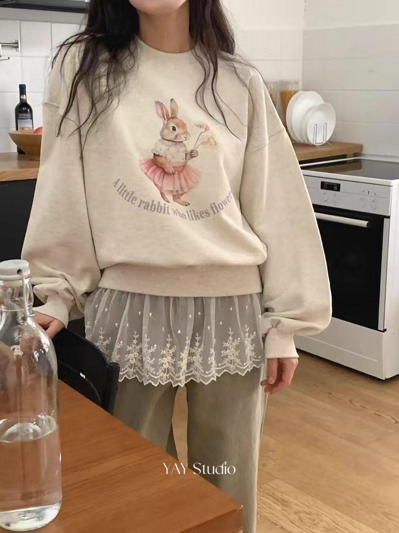 Estilo Perezoso Suéter Holgado Sudadera Gruesa para Mujer Otoño e Invierno Nuevo Coreano Dibujos Animados Conejito Manga Larga Cuello Redondo Top sin Capucha