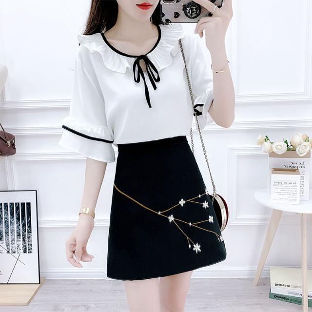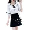 White top + black skirt (suit)