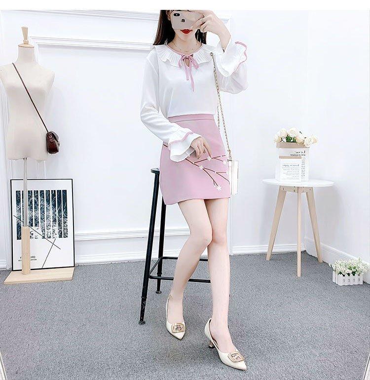 White top + pink skirt (suit)