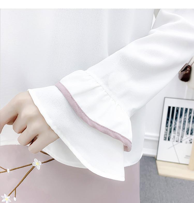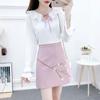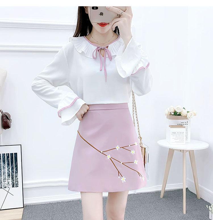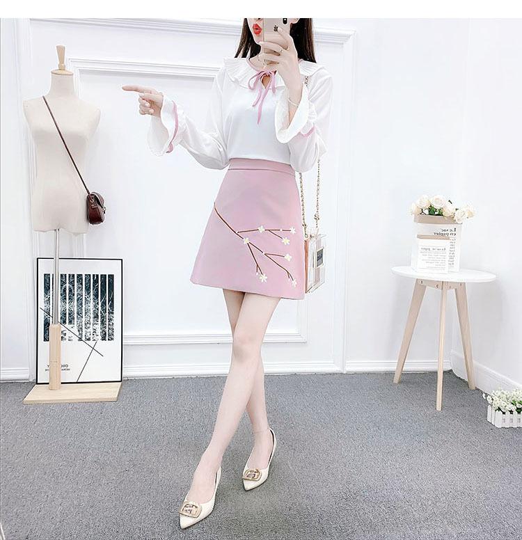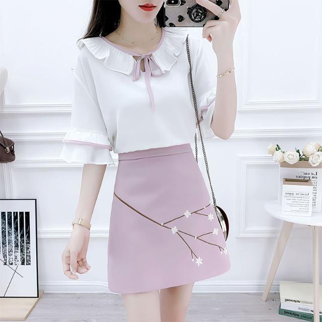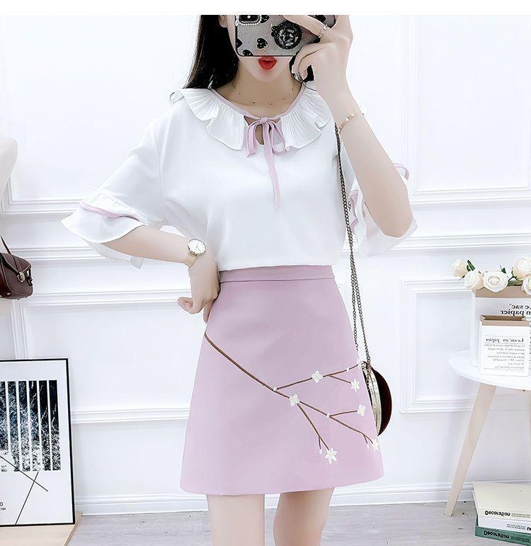 Traje nuevo de primavera y verano 2024, camisa de gasa de color fresco, falda bordada cruzada de dos piezas para mujer