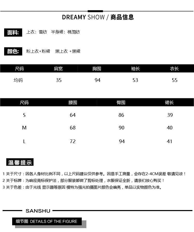 Single white top, Single pink skirt, Single black dress, White top + pink skirt (suit), White top + black skirt (suit)