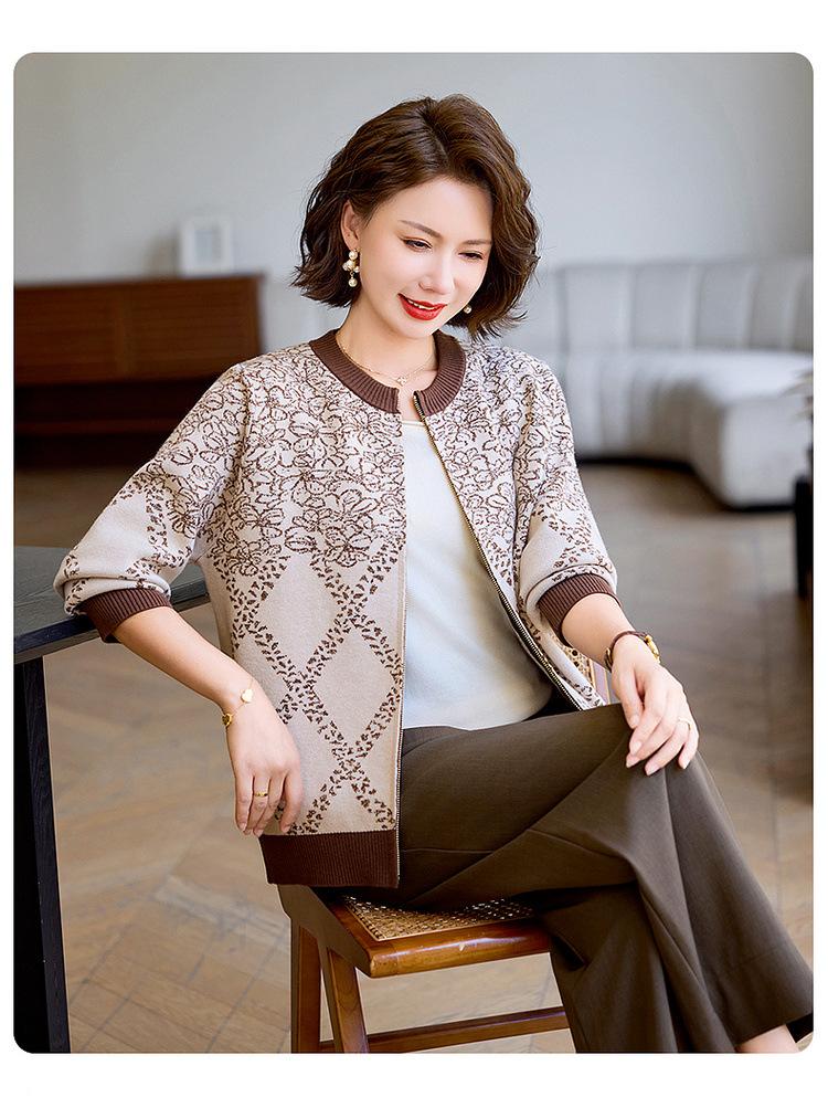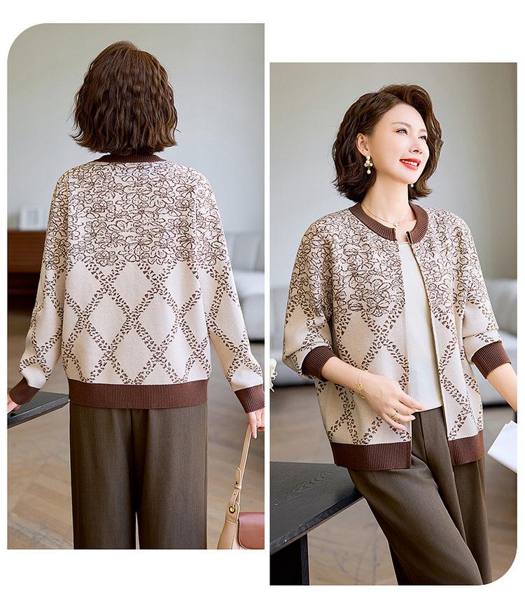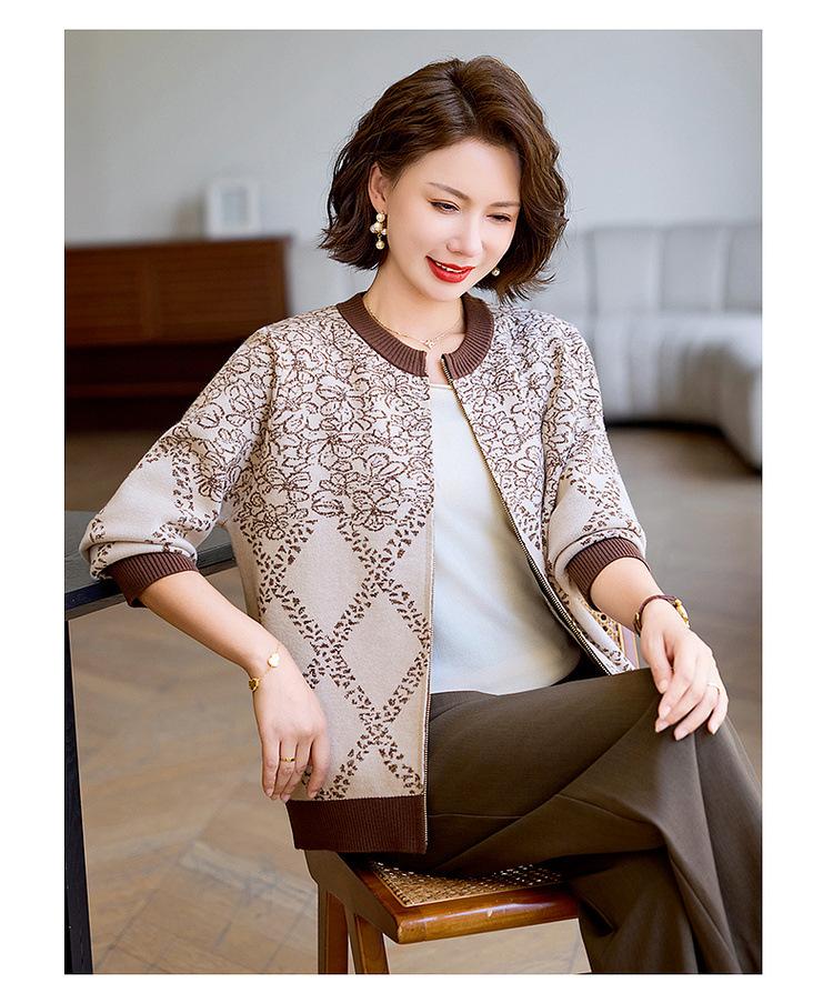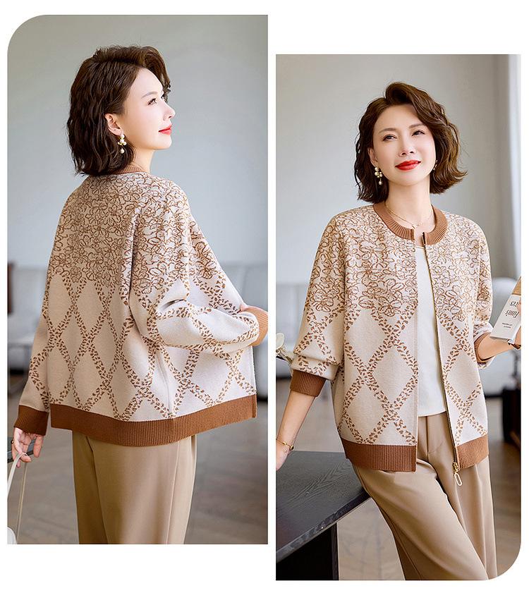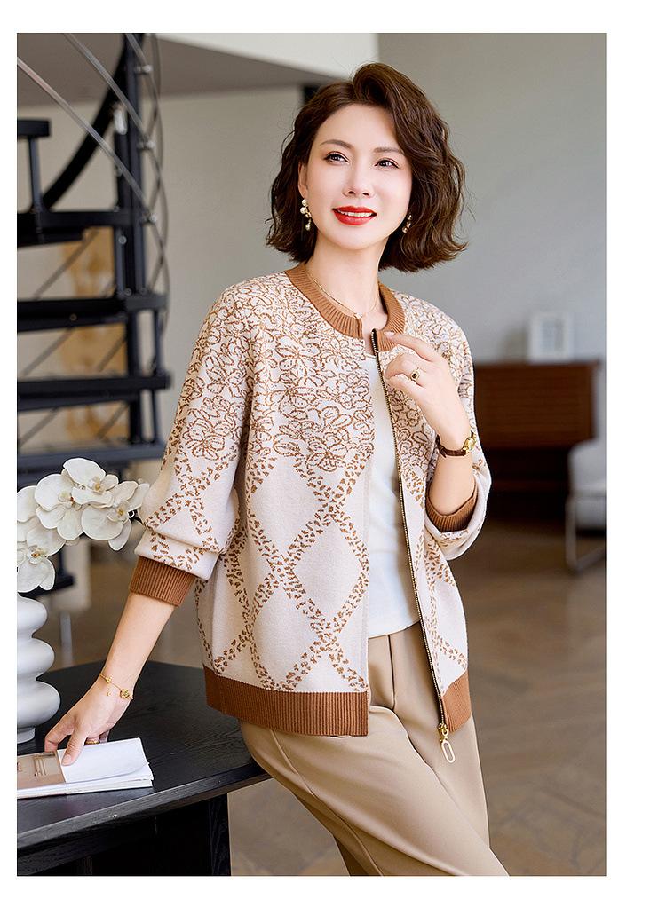 Ropa de otoño para mujeres de mediana edad, temperamento, abrigo corto, nuevo cárdigan de punto para madre, ropa exterior, top casual moderno para mediana edad y ancianas