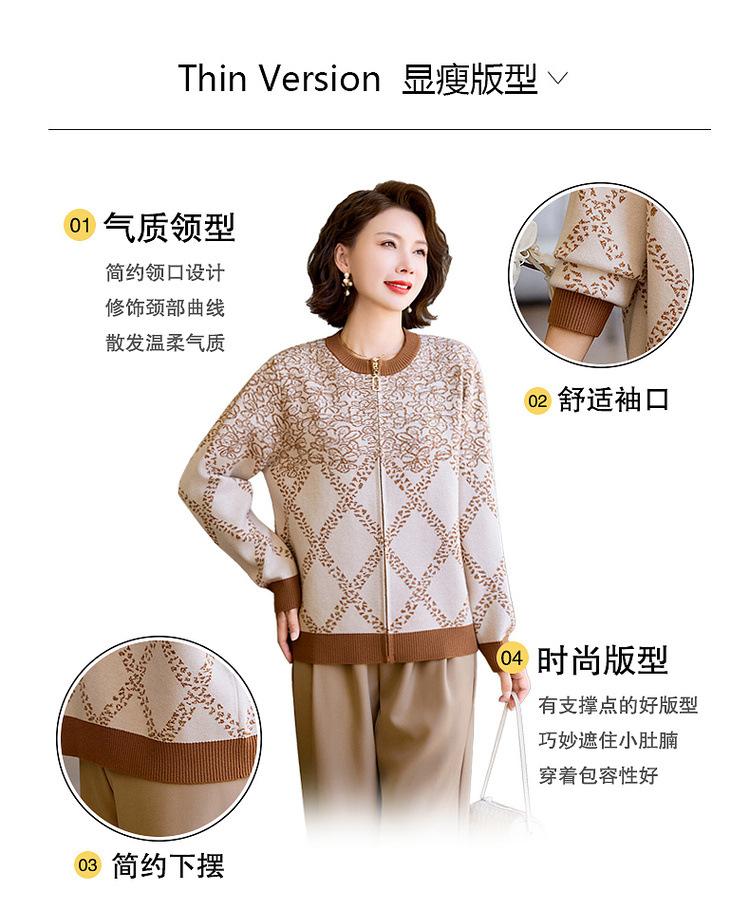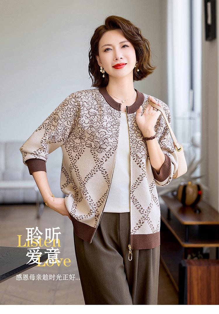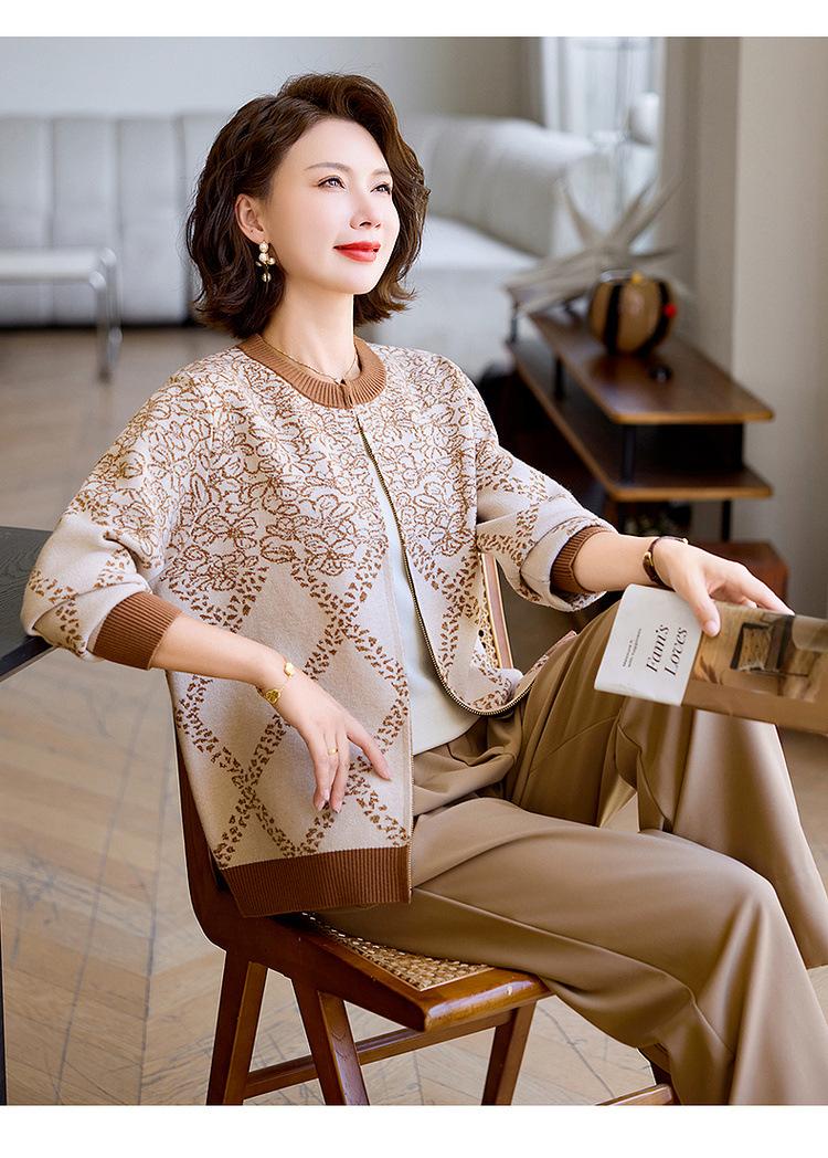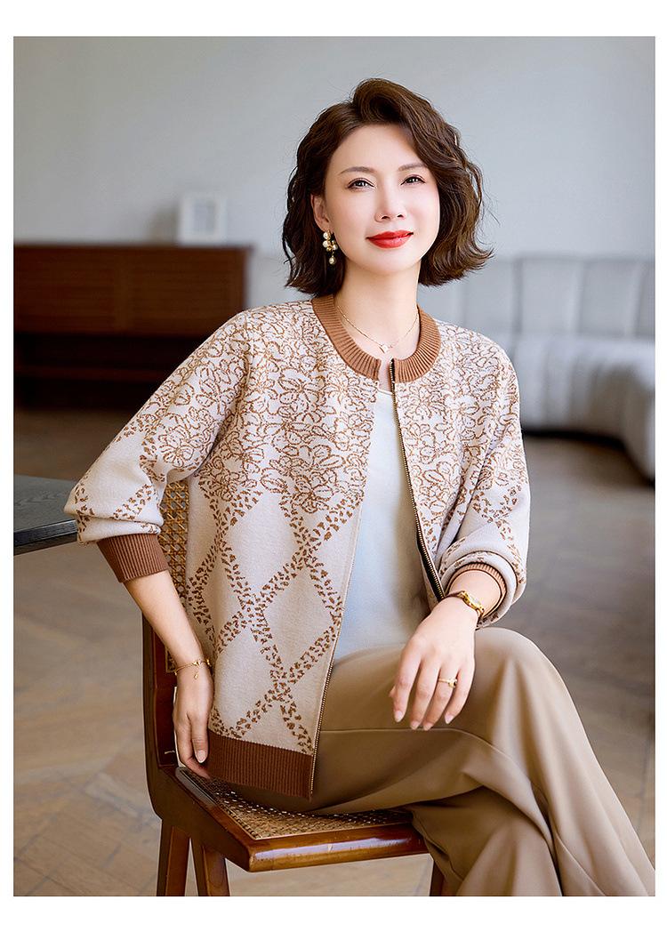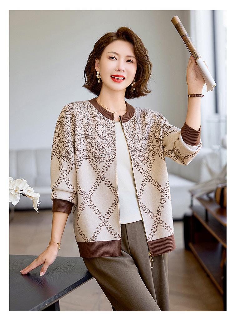 Ropa de otoño para mujeres de mediana edad, temperamento, abrigo corto, nuevo cárdigan de punto para madre, ropa exterior, top casual moderno para mediana edad y ancianas