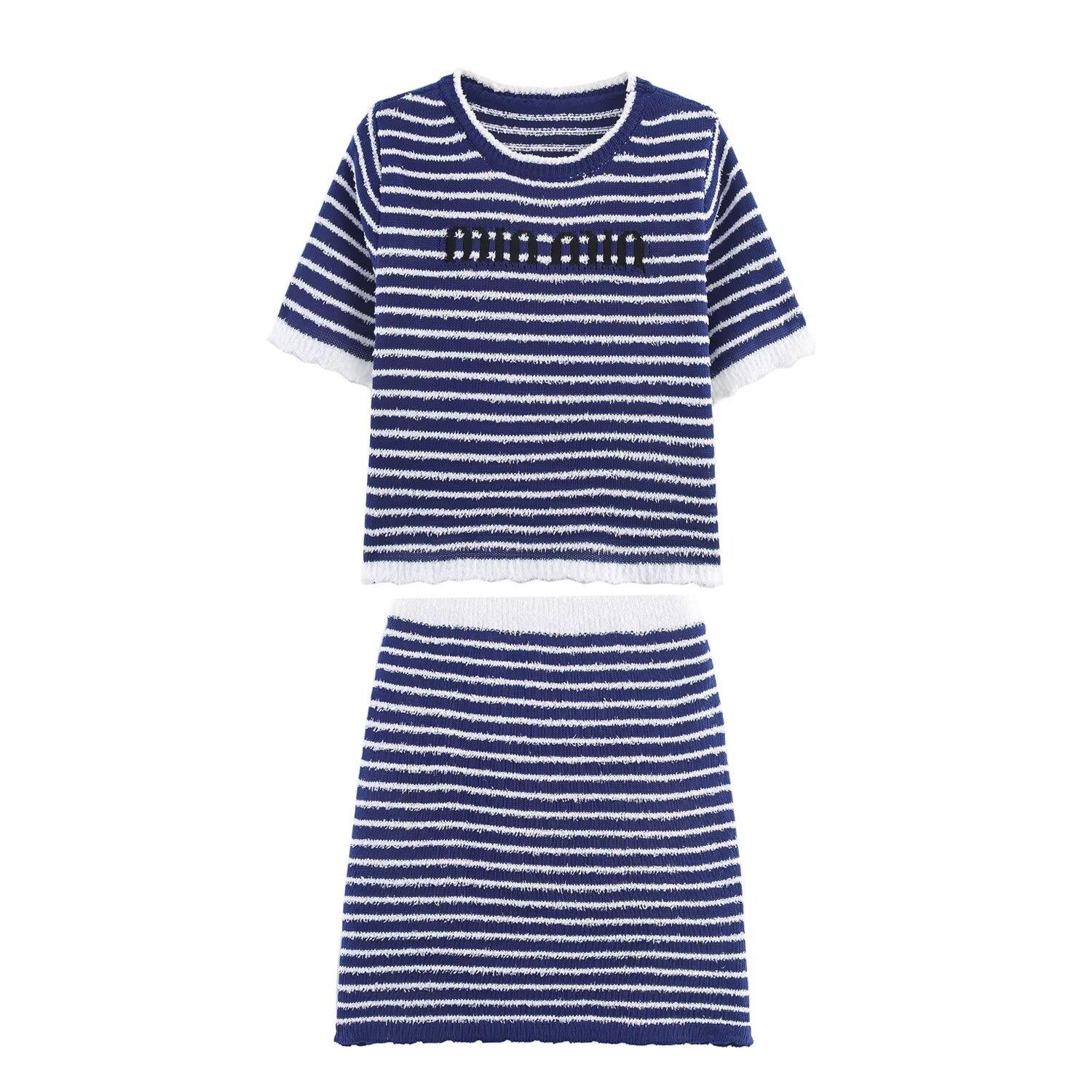 Ropa de mujer exclusiva transfronteriza europea y americana AliExpress INS estilo caliente moda bordado letra top de punto + conjunto de falda midi