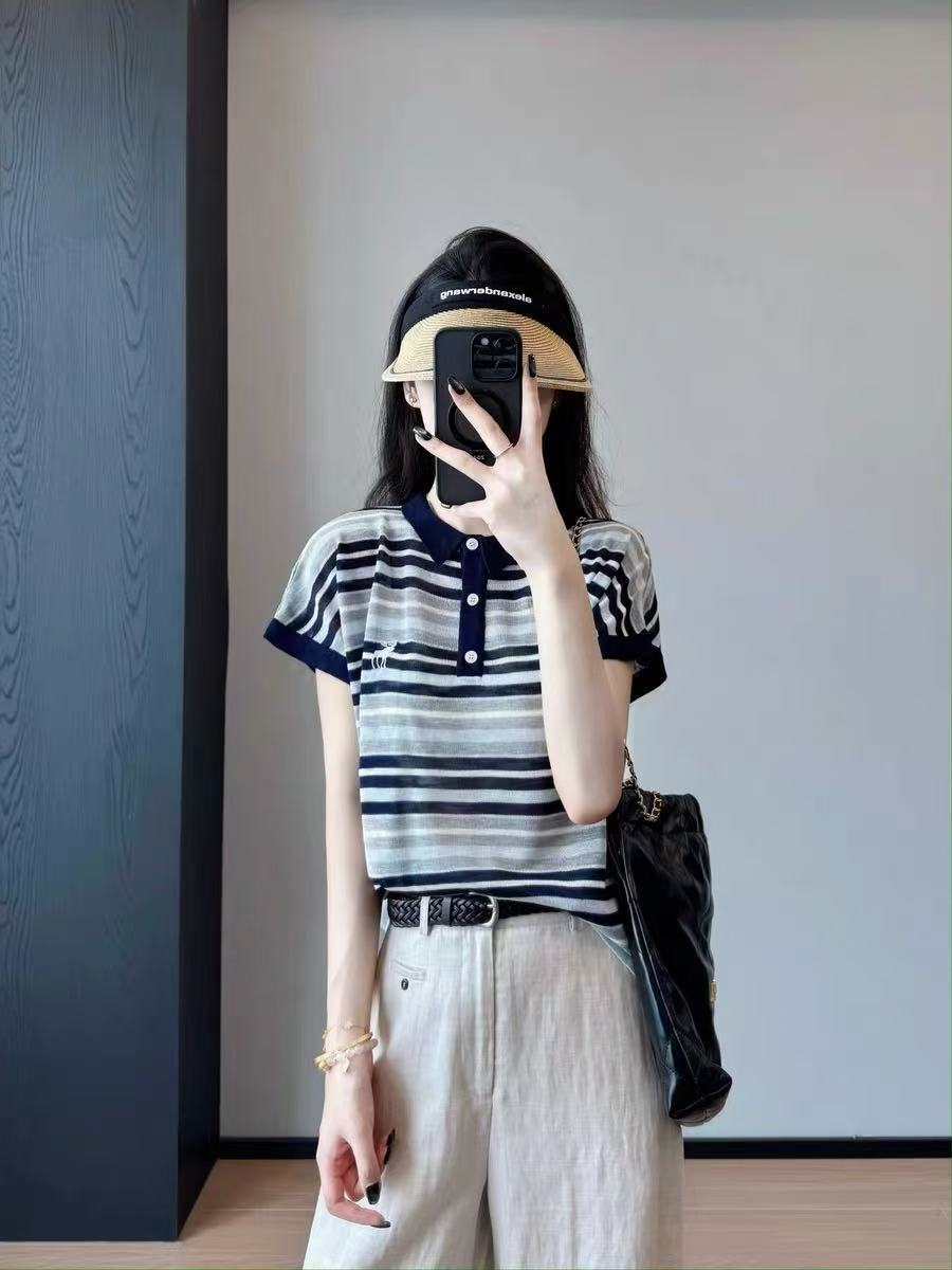 Estilo mejorado de cuello polo pequeño, exquisito y hermoso,