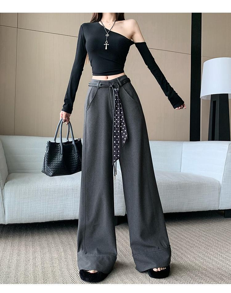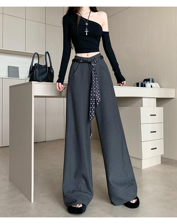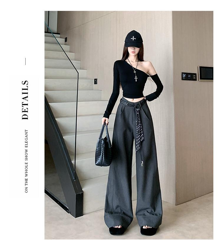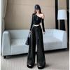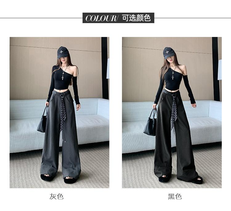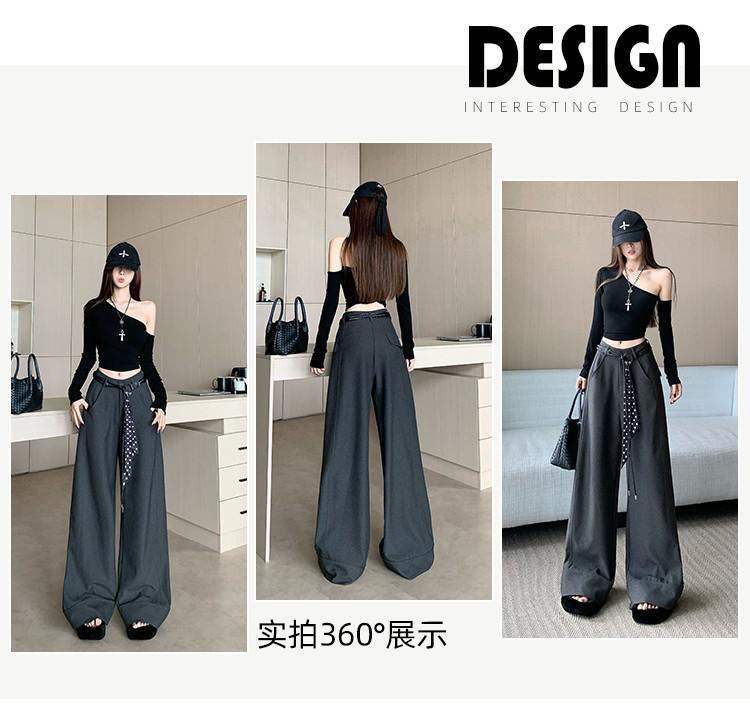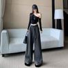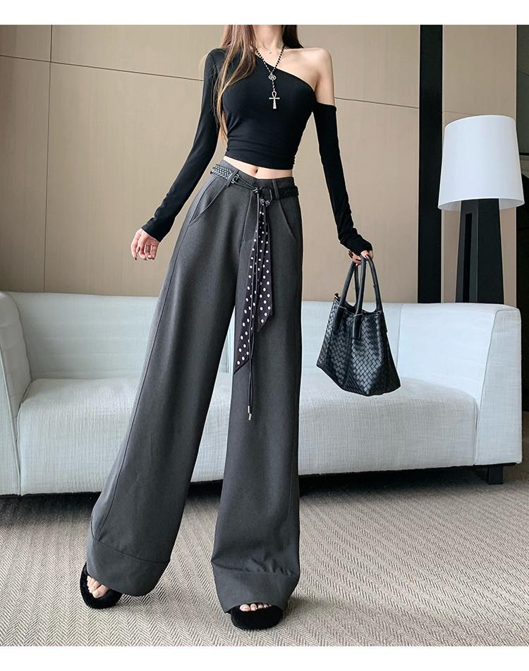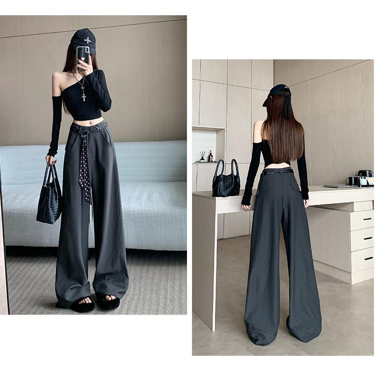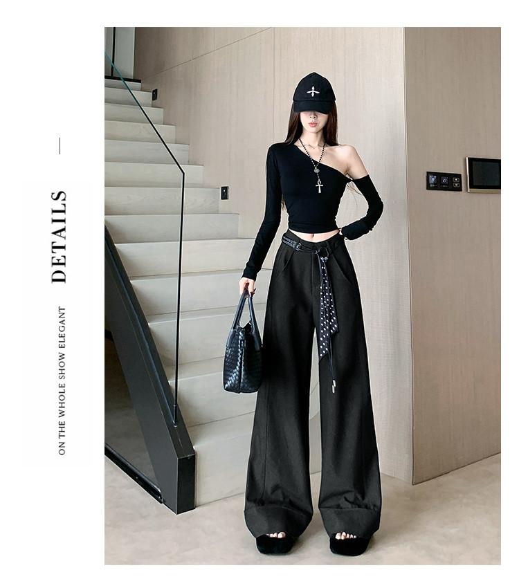 Pantalones de pierna ancha de alta gama transfronterizos 2025 otoño nueva moda pañuelo de seda cintura alta holgados adelgazantes casuales pantalones largos