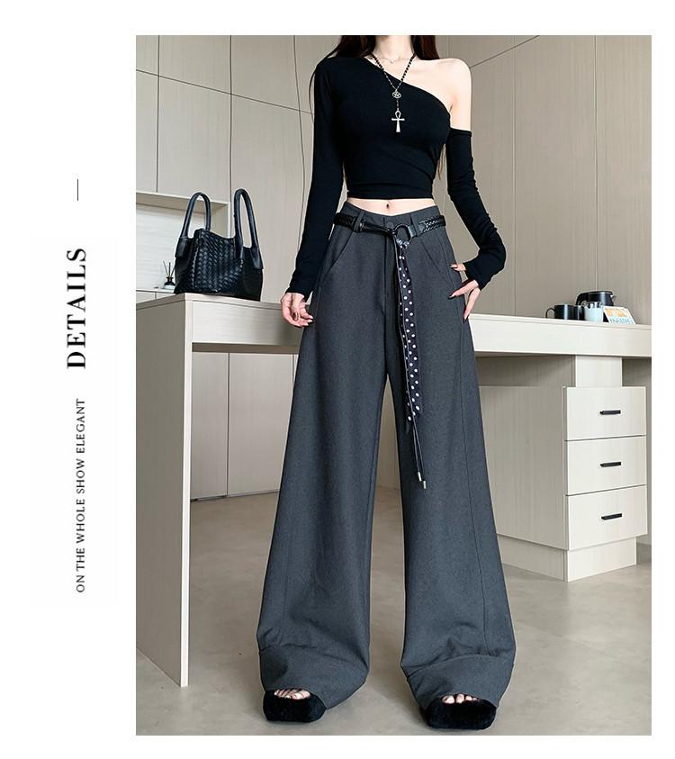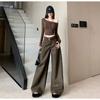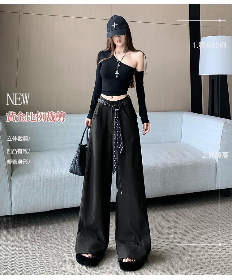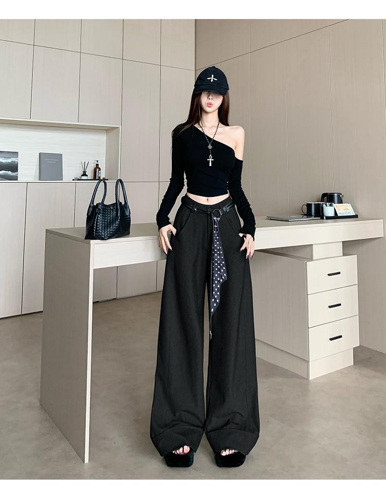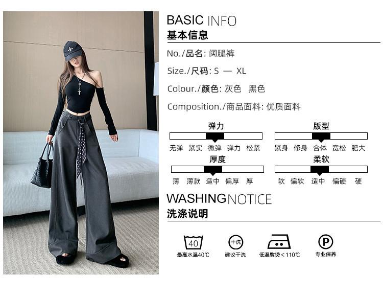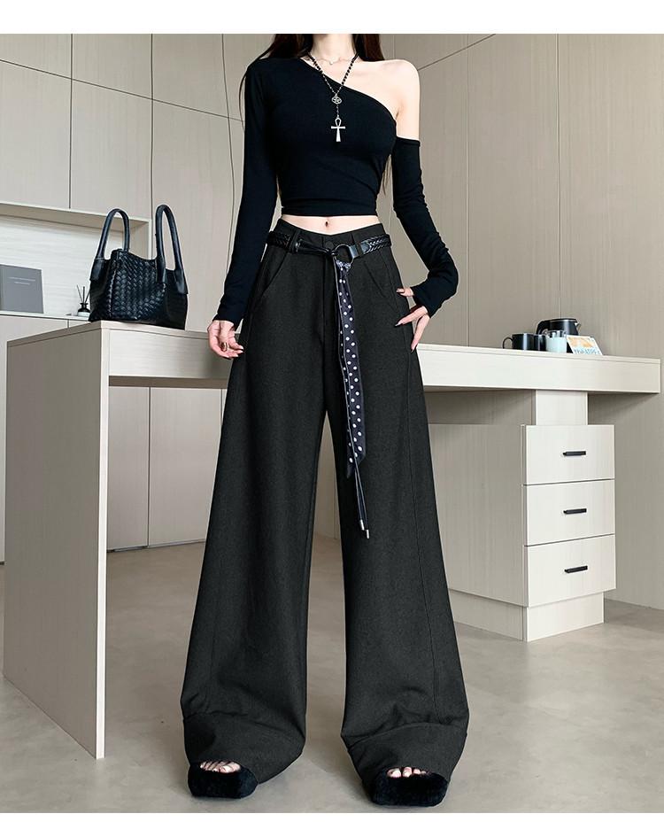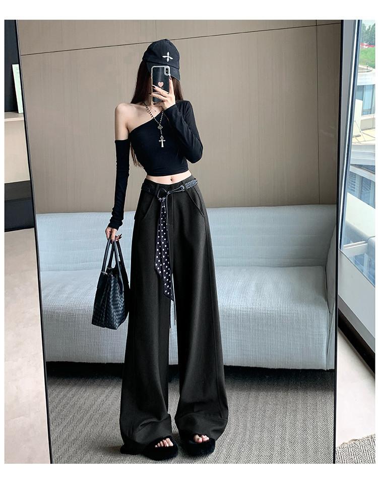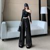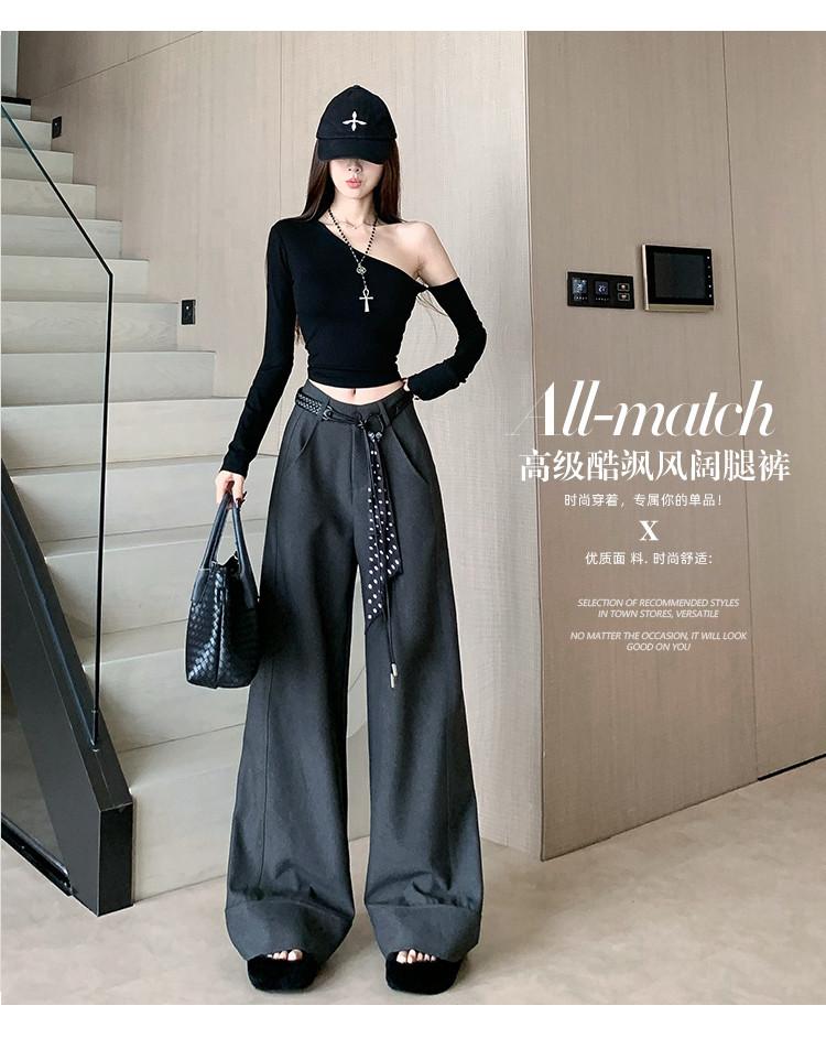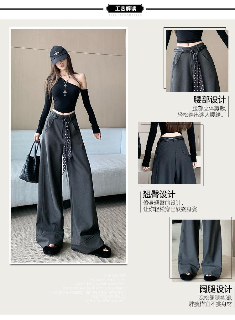 Pantalones de pierna ancha de alta gama transfronterizos 2025 otoño nueva moda pañuelo de seda cintura alta holgados adelgazantes casuales pantalones largos
