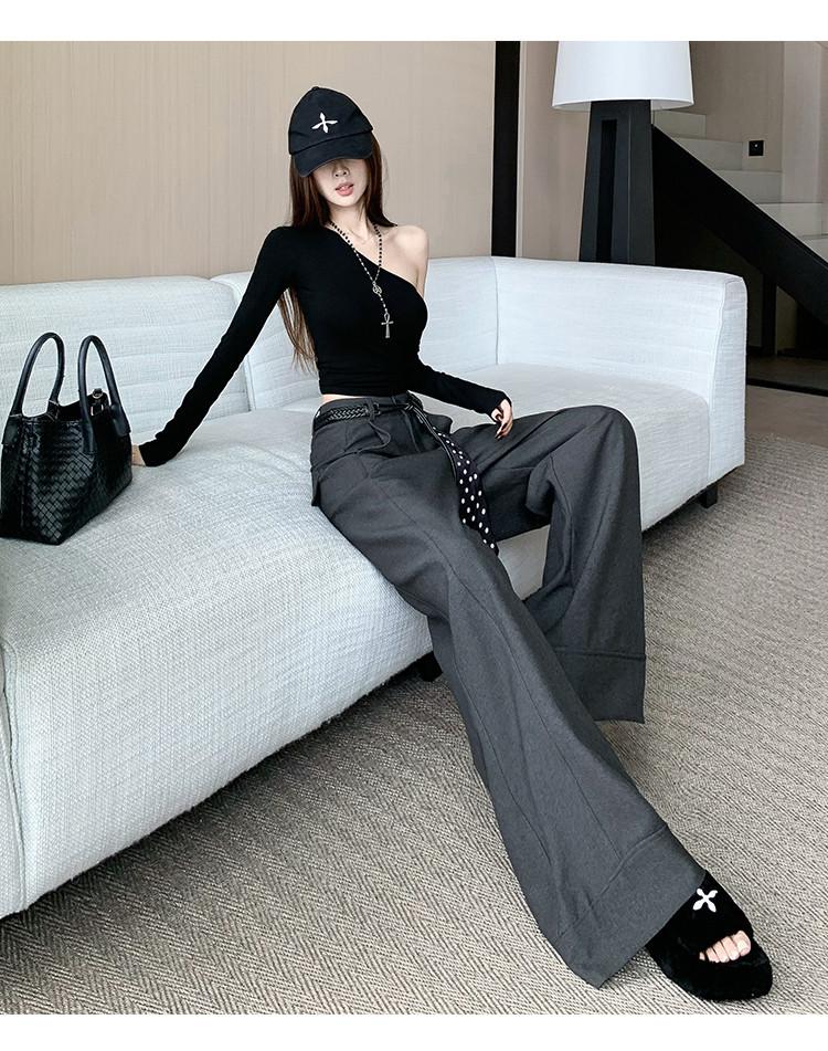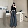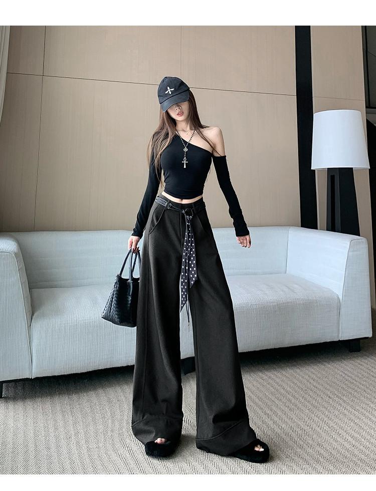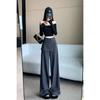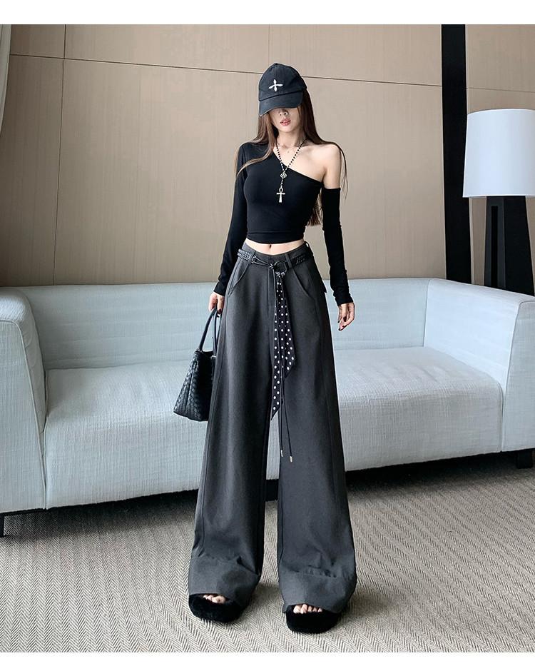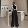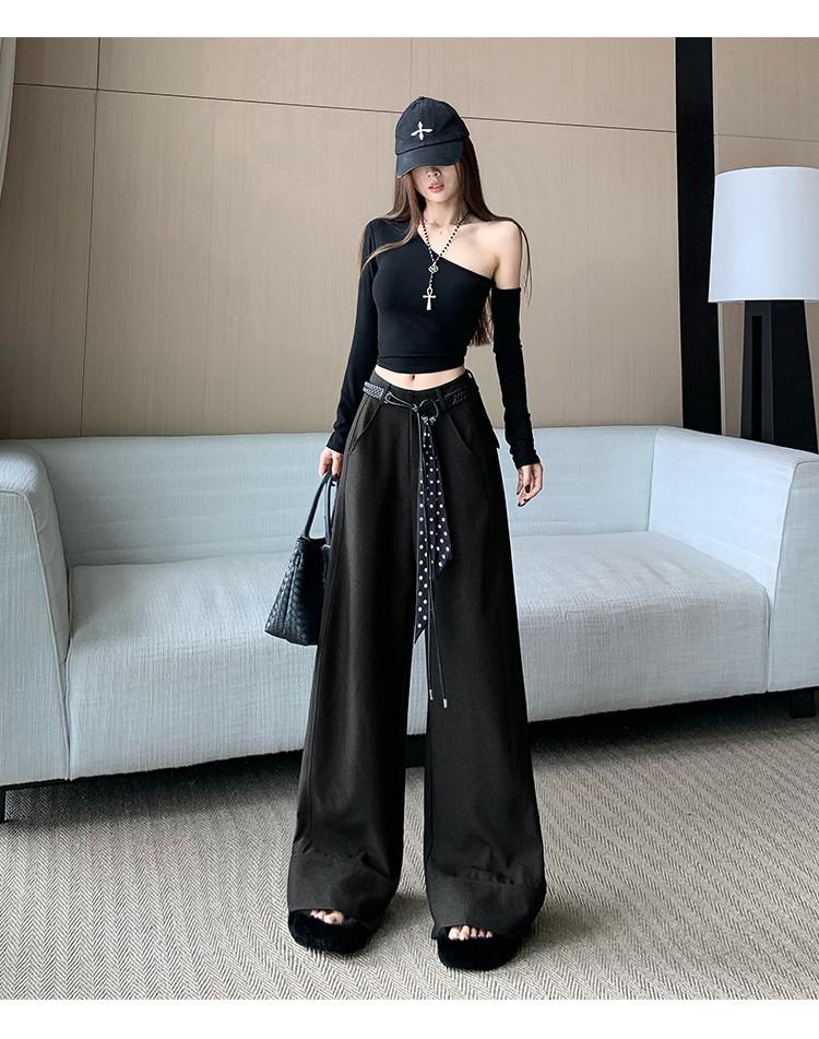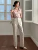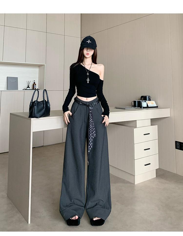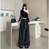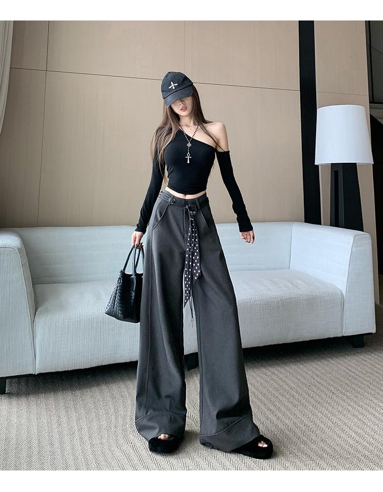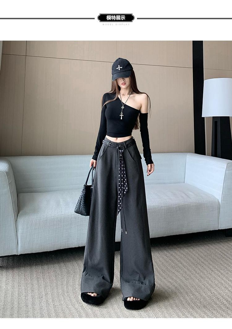 Pantalones de pierna ancha de alta gama transfronterizos 2025 otoño nueva moda pañuelo de seda cintura alta holgados adelgazantes casuales pantalones largos