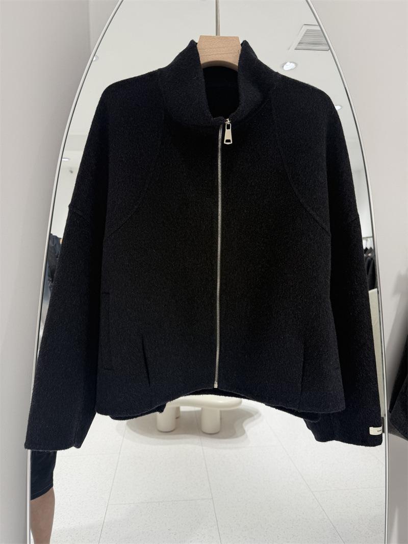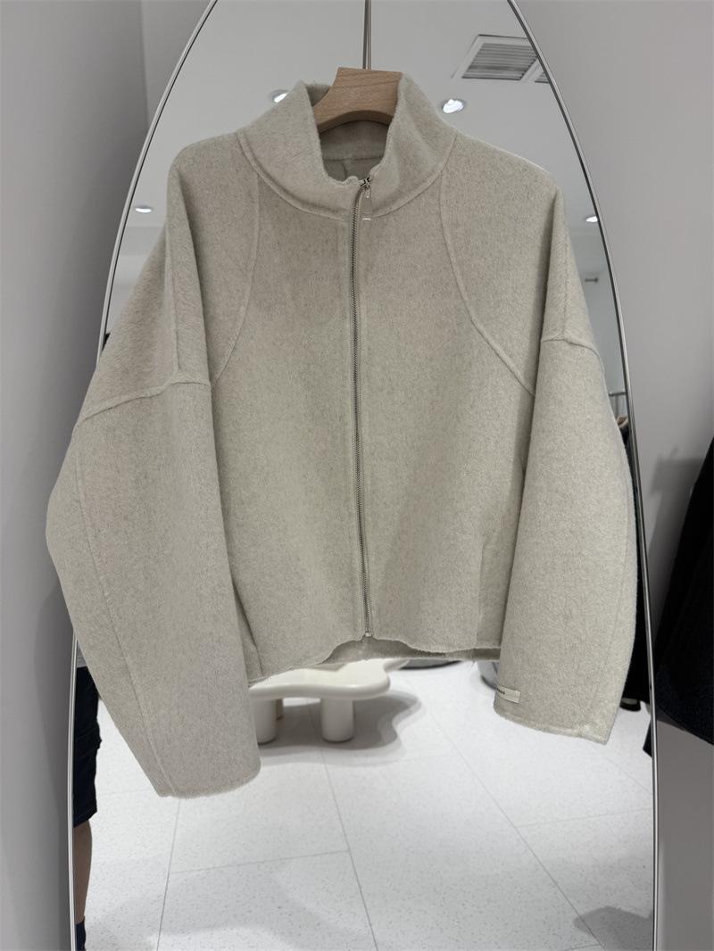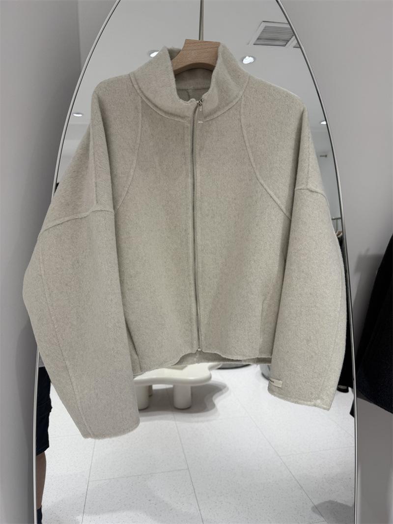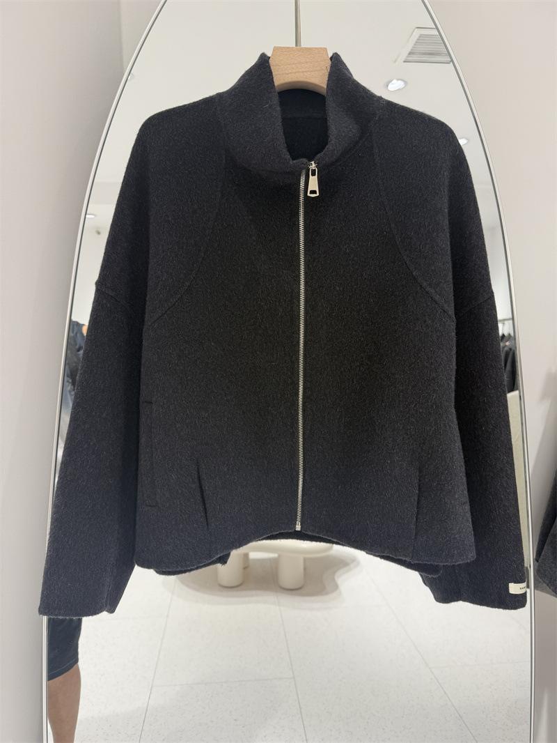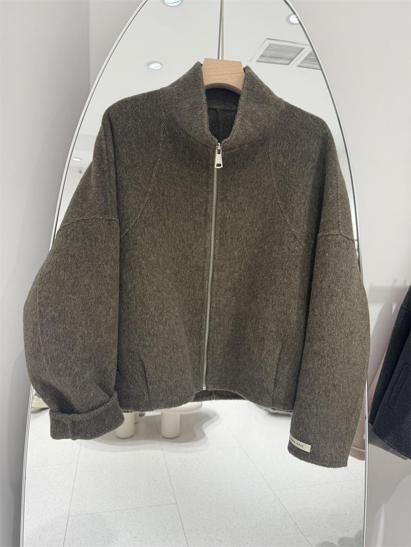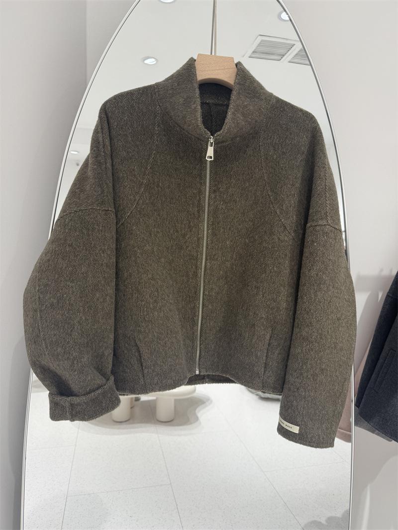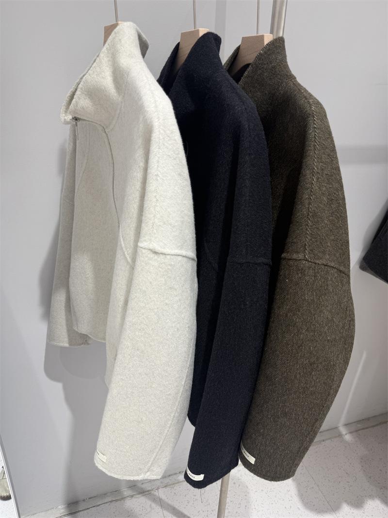 Venta al por mayor transfronteriza 2025 otoño nuevo suelto cuello alto manga larga abrigo de lana para mujer chaqueta cárdigan abrigo mujer