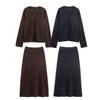 Ropa Nueva de Otoño 2025 para Mujer Estilo Europeo y Americano Moda Sencilla Casual Top de Punto y Conjunto de Media Falda