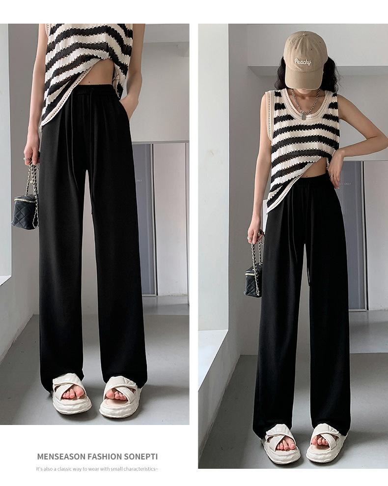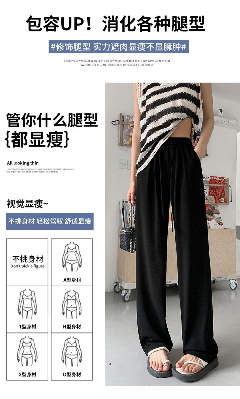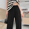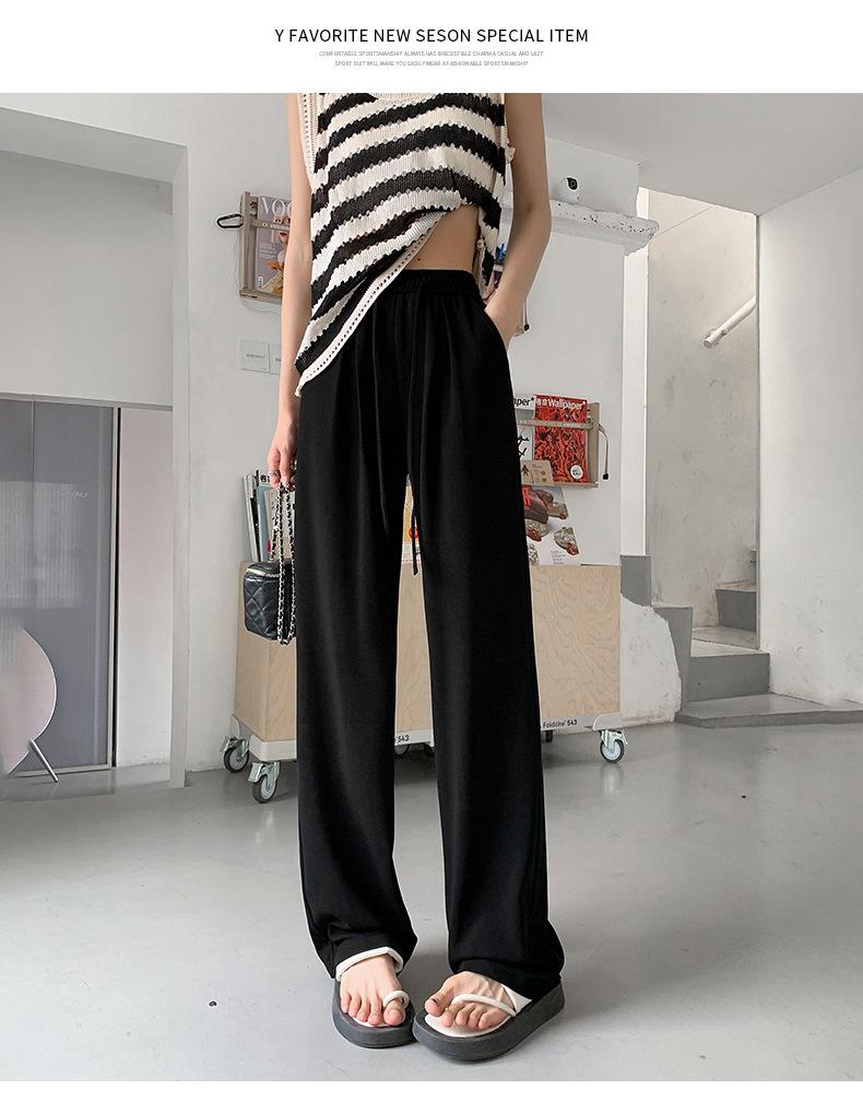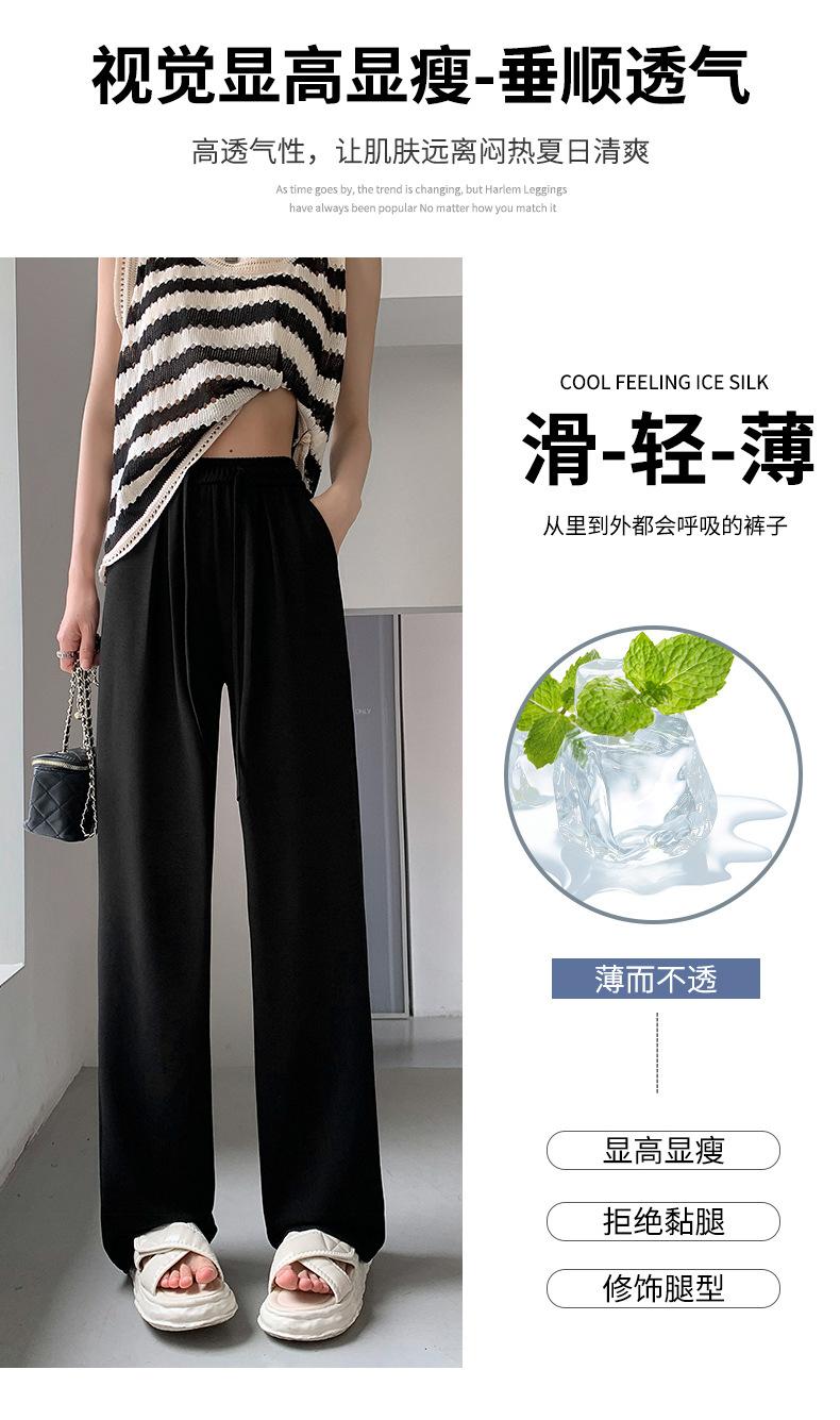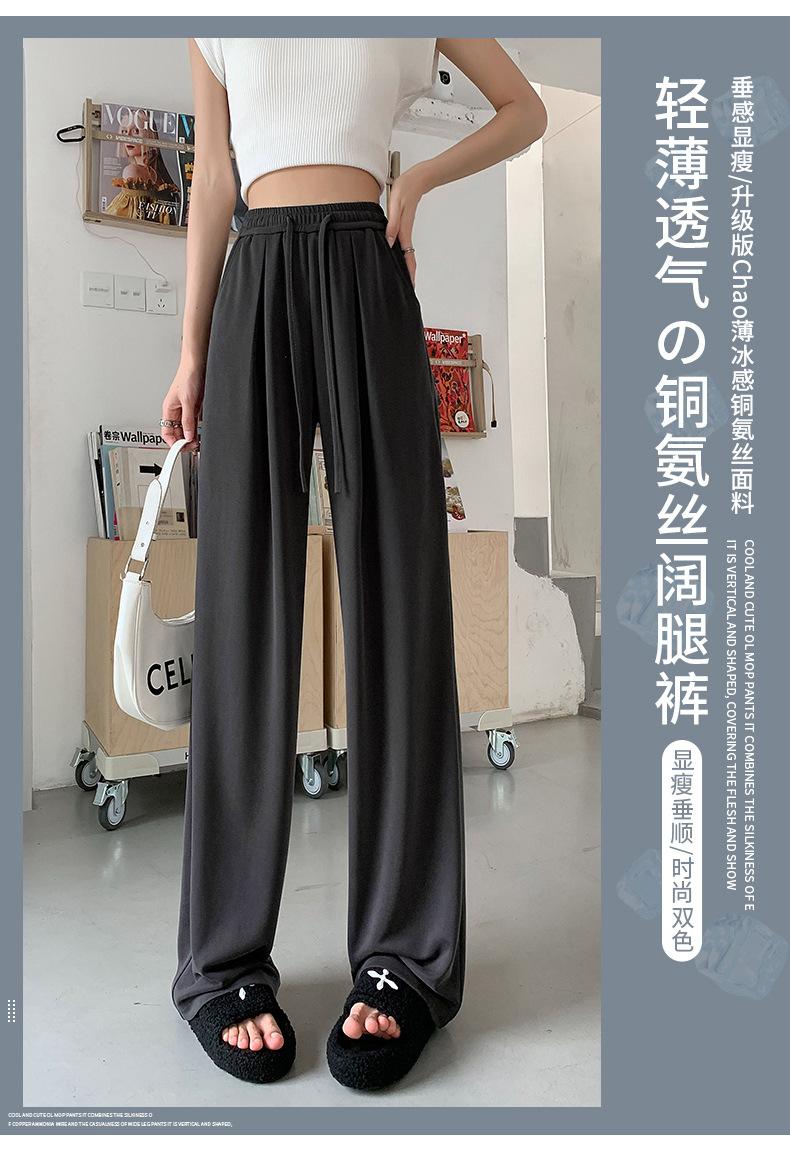 Pantalones de Cupro de Pierna Ancha para Mujer, Estilo Fino de Verano 2025 Nuevo Drapeado Casual Slim Negro Recto Seda Helada Pantalones Deportivos