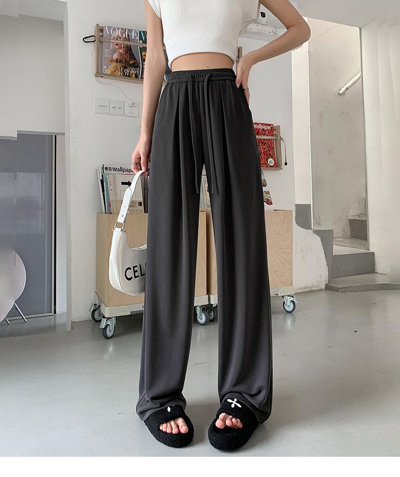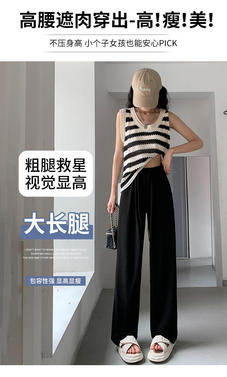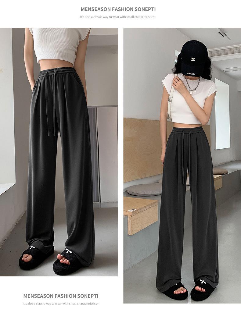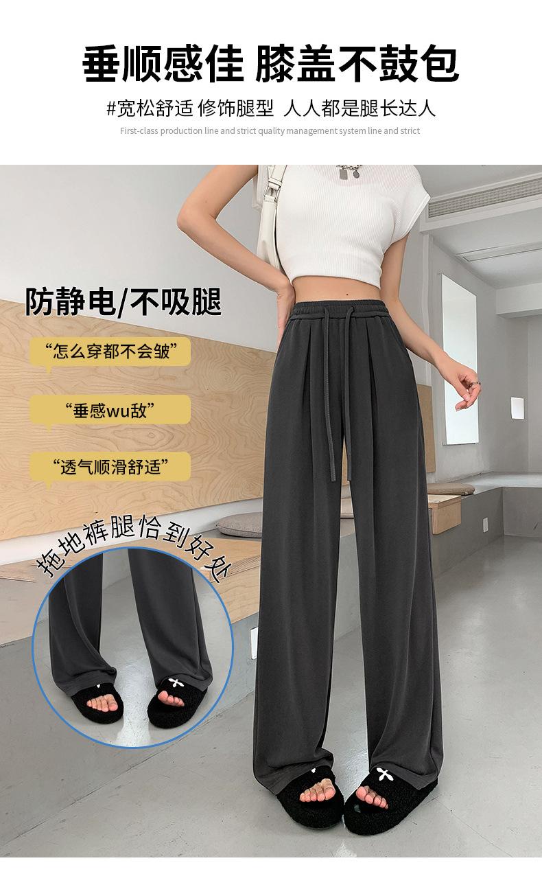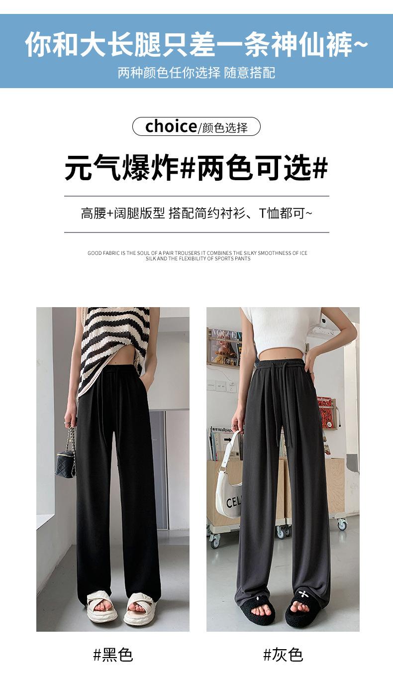 Pantalones de Cupro de Pierna Ancha para Mujer, Estilo Fino de Verano 2025 Nuevo Drapeado Casual Slim Negro Recto Seda Helada Pantalones Deportivos