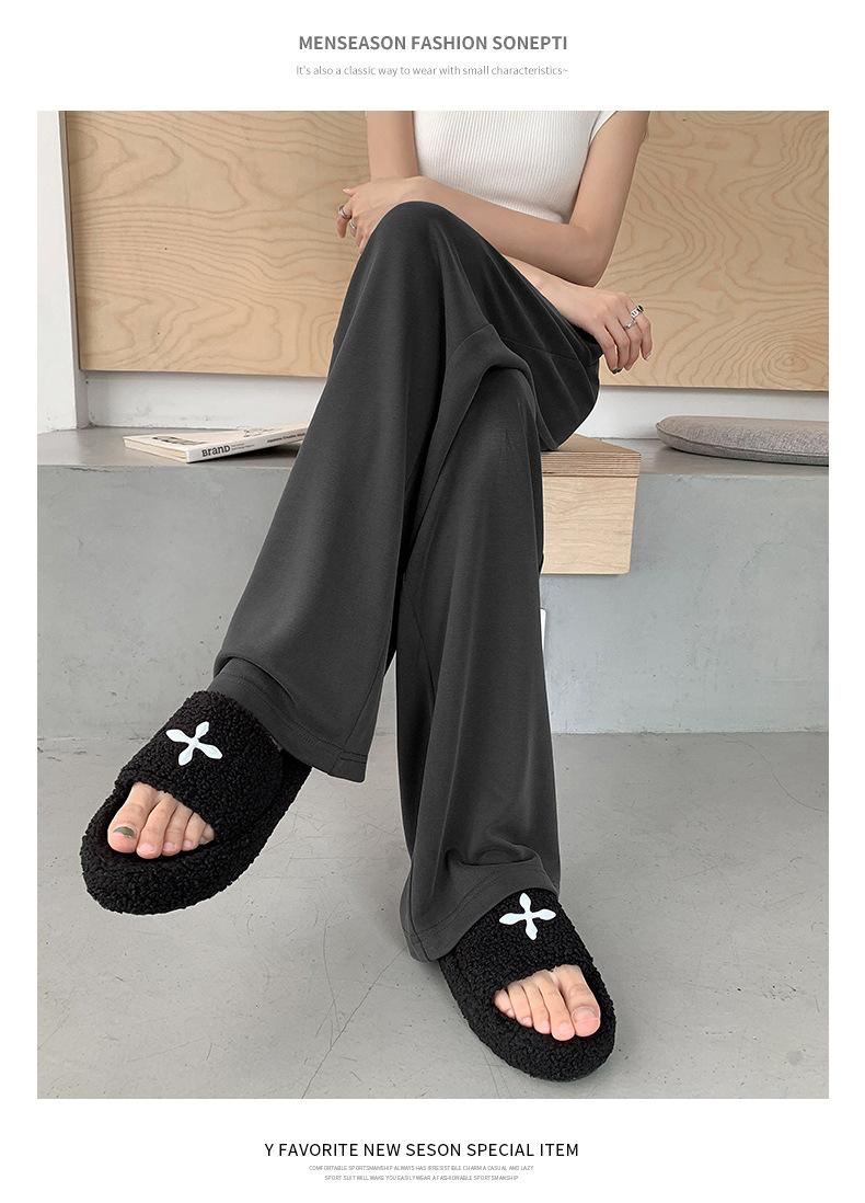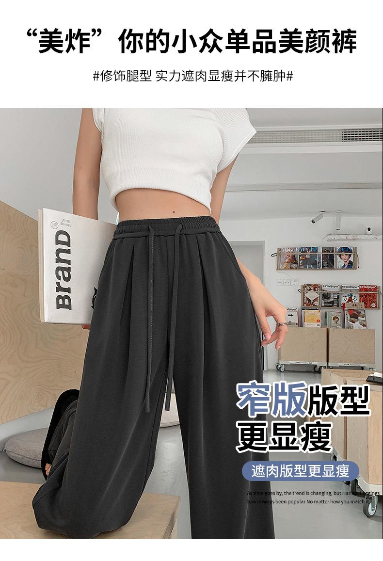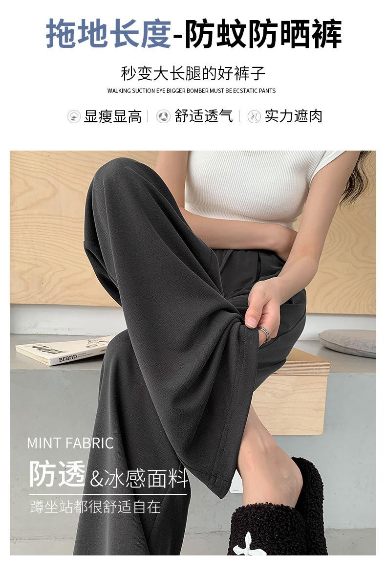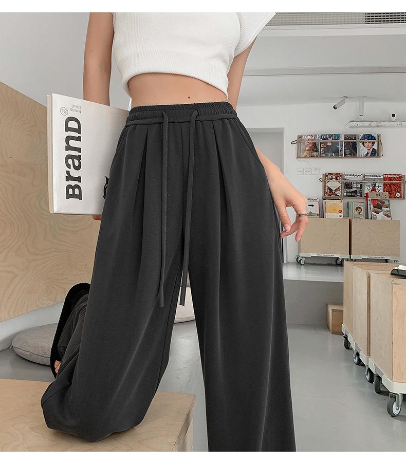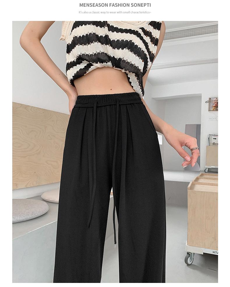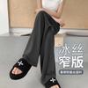 Pantalones de Cupro de Pierna Ancha para Mujer, Estilo Fino de Verano 2025 Nuevo Drapeado Casual Slim Negro Recto Seda Helada Pantalones Deportivos