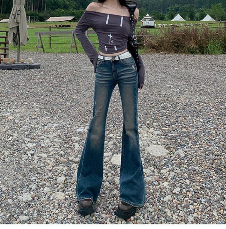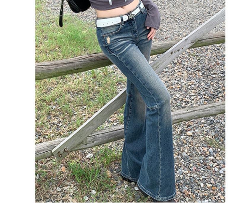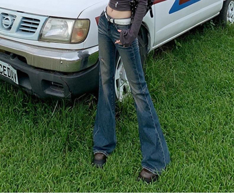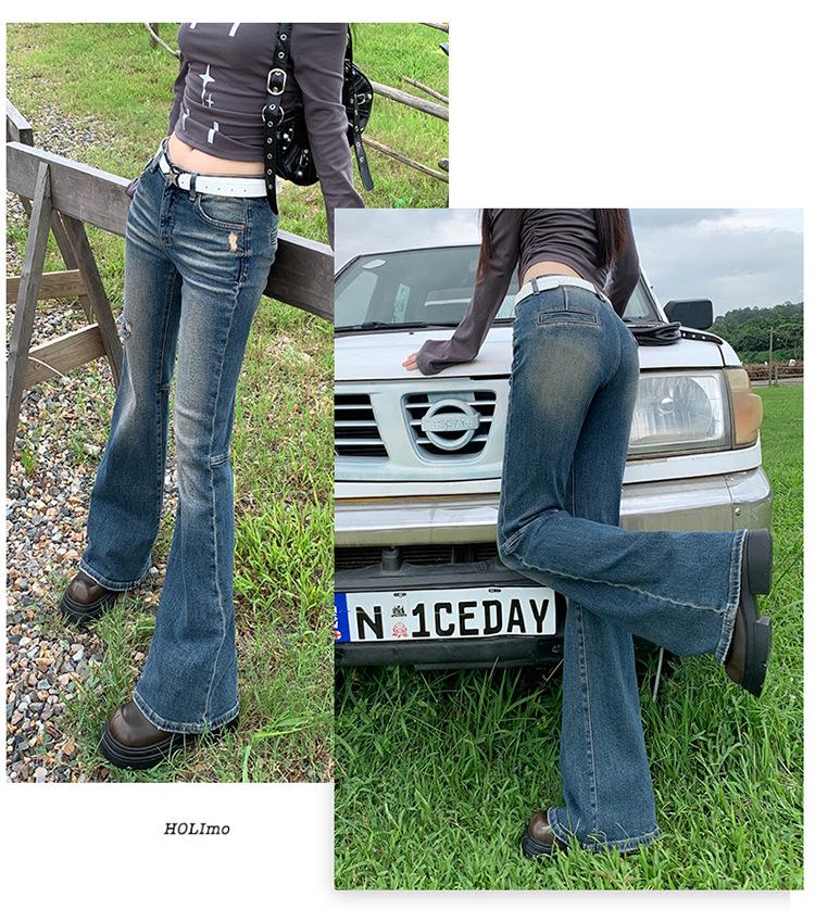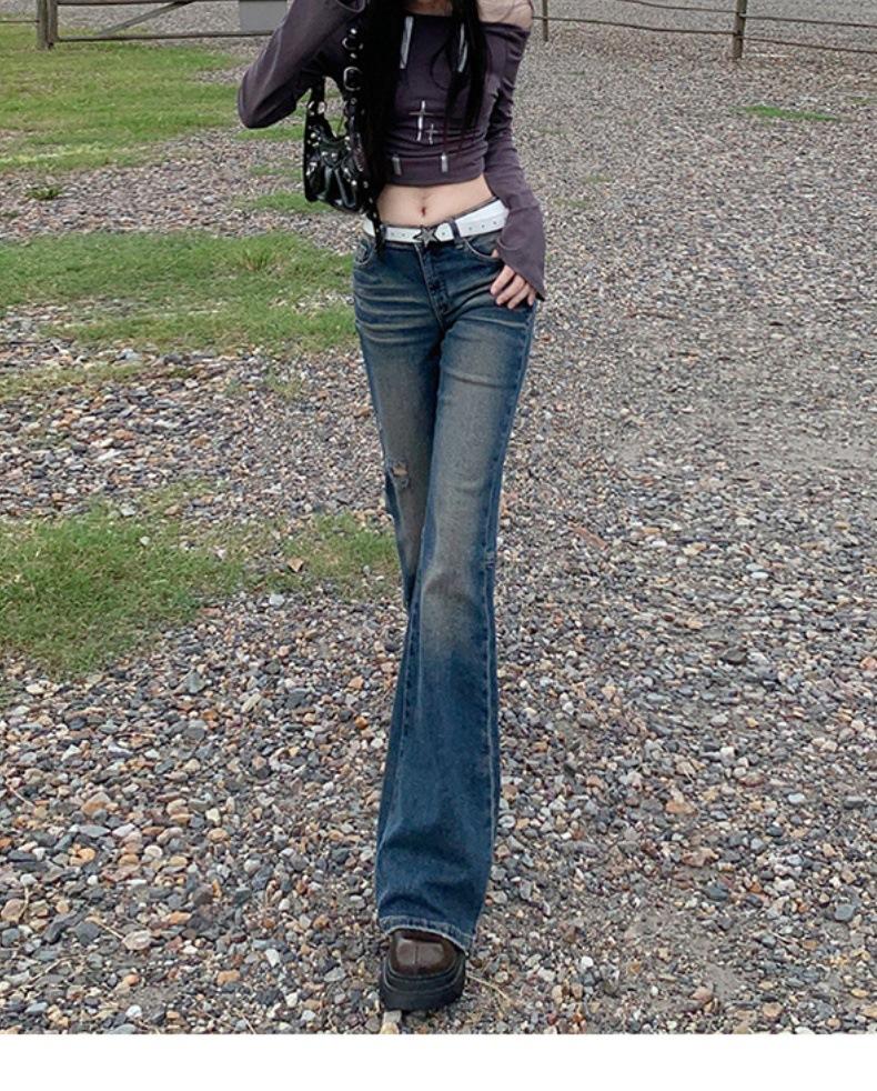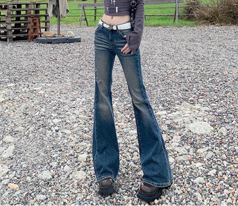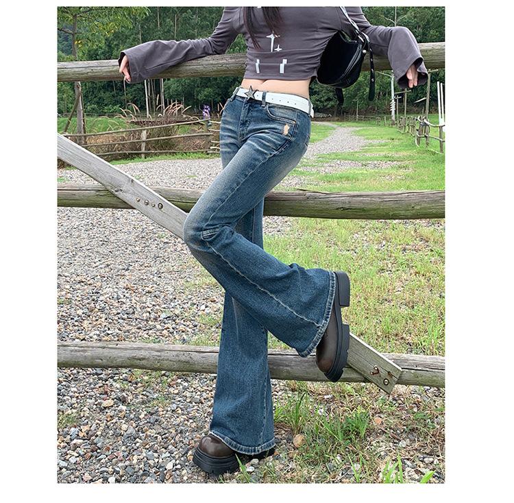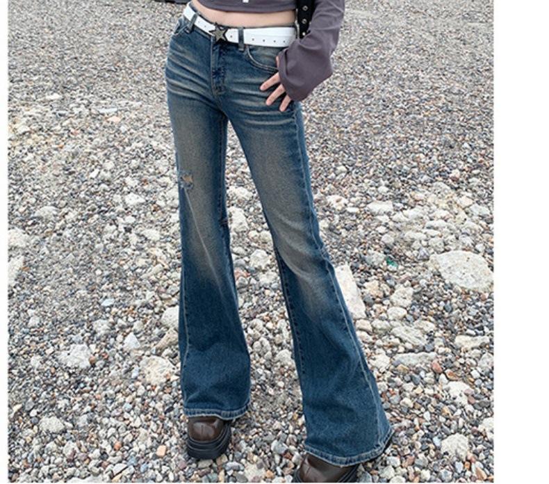 Jeans de Mujer Americanos Elásticos de Tiro Bajo 2025 Primavera y Otoño Nuevo Diseño Vintage Roto Lavado Adelgazantes Pantalones Largos Modernos