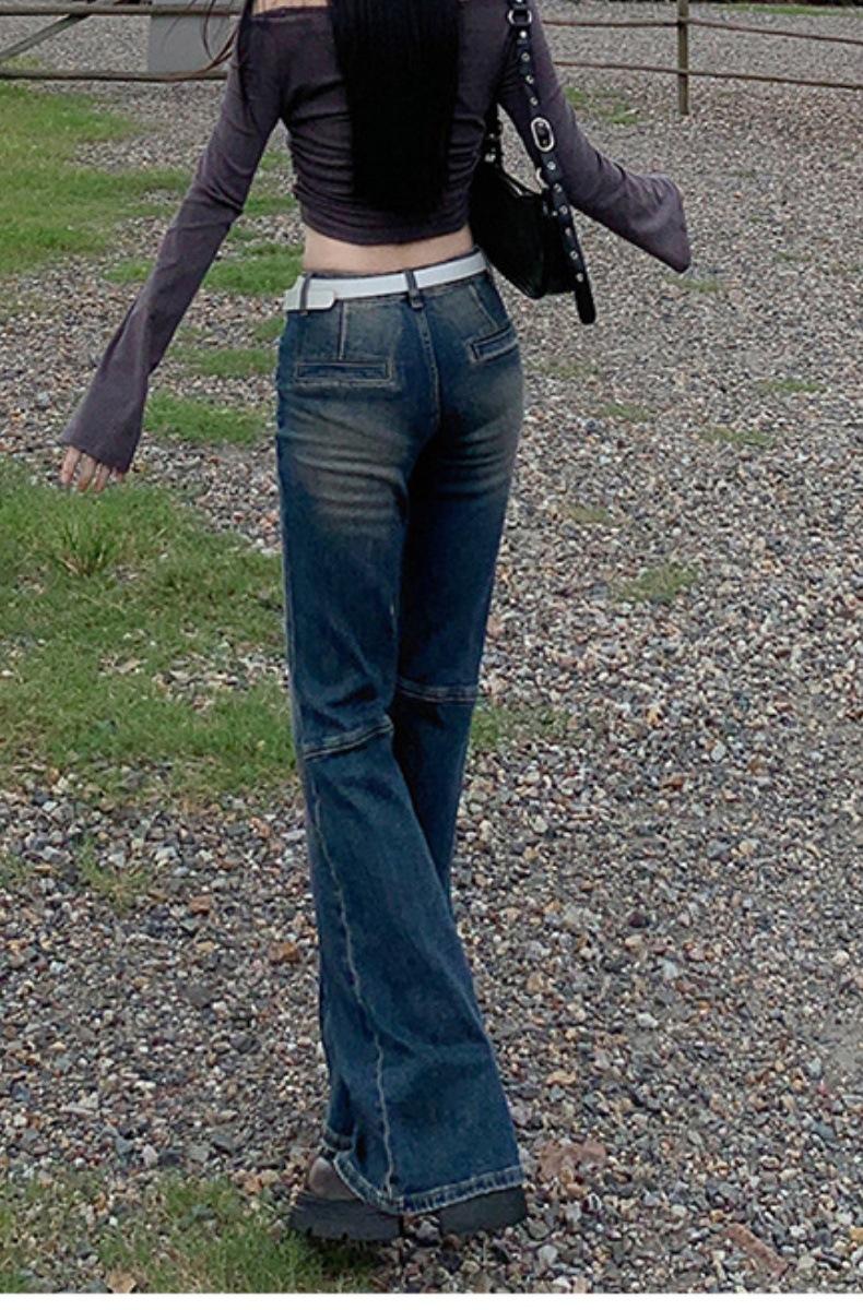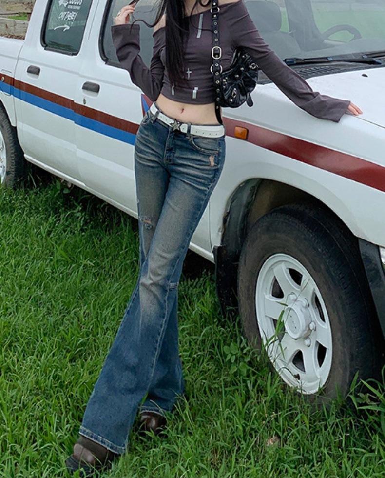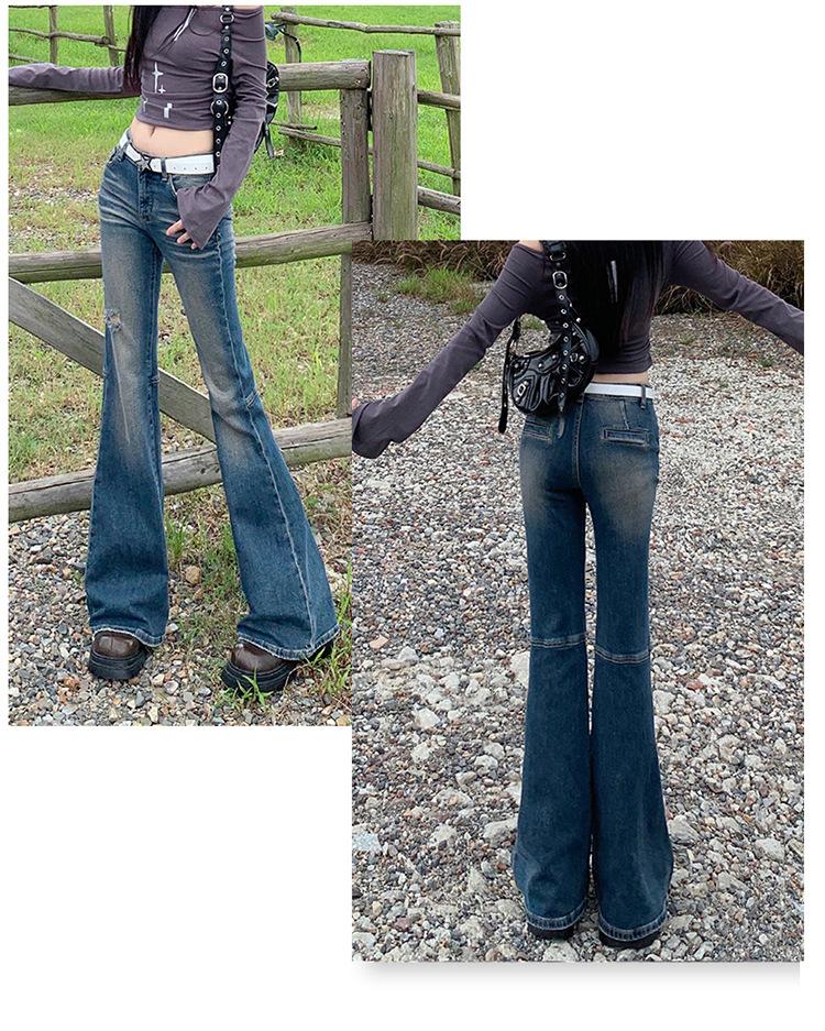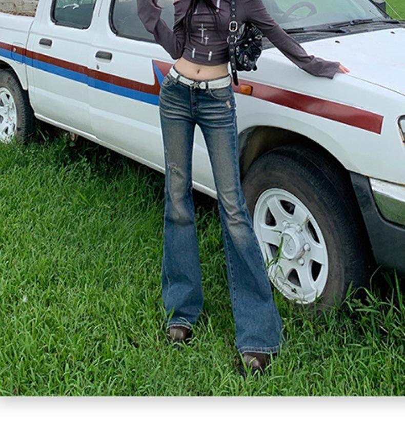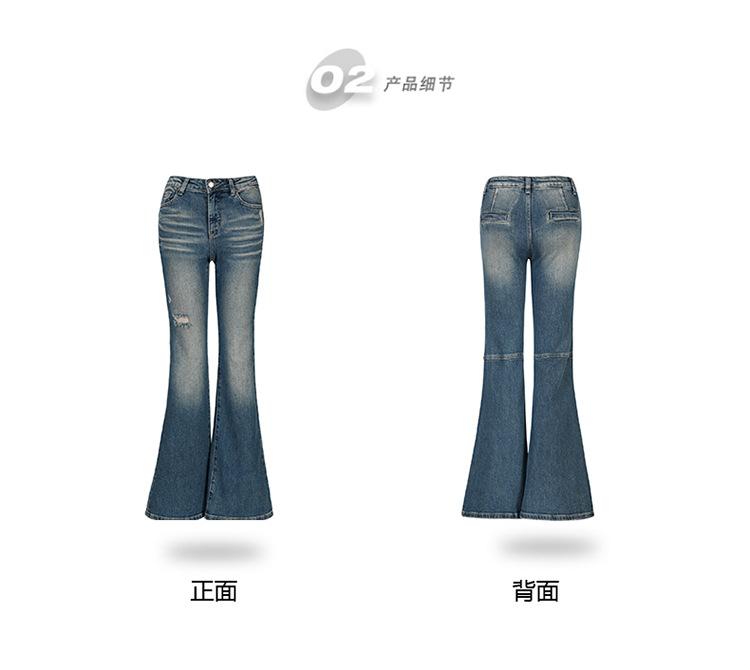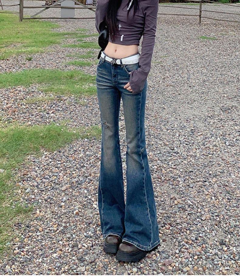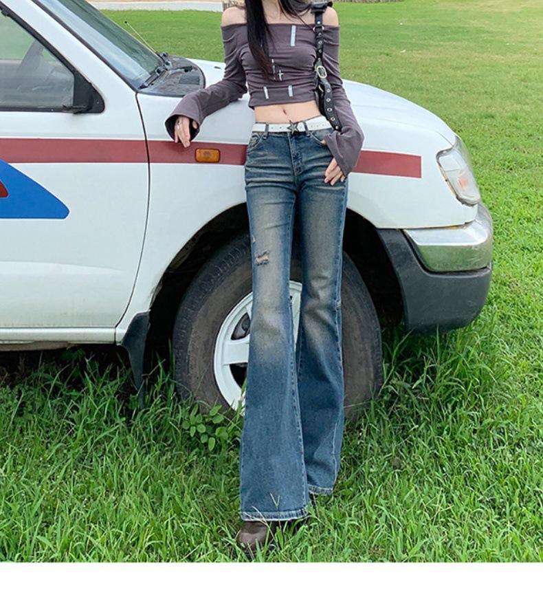 Jeans de Mujer Americanos Elásticos de Tiro Bajo 2025 Primavera y Otoño Nuevo Diseño Vintage Roto Lavado Adelgazantes Pantalones Largos Modernos
