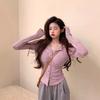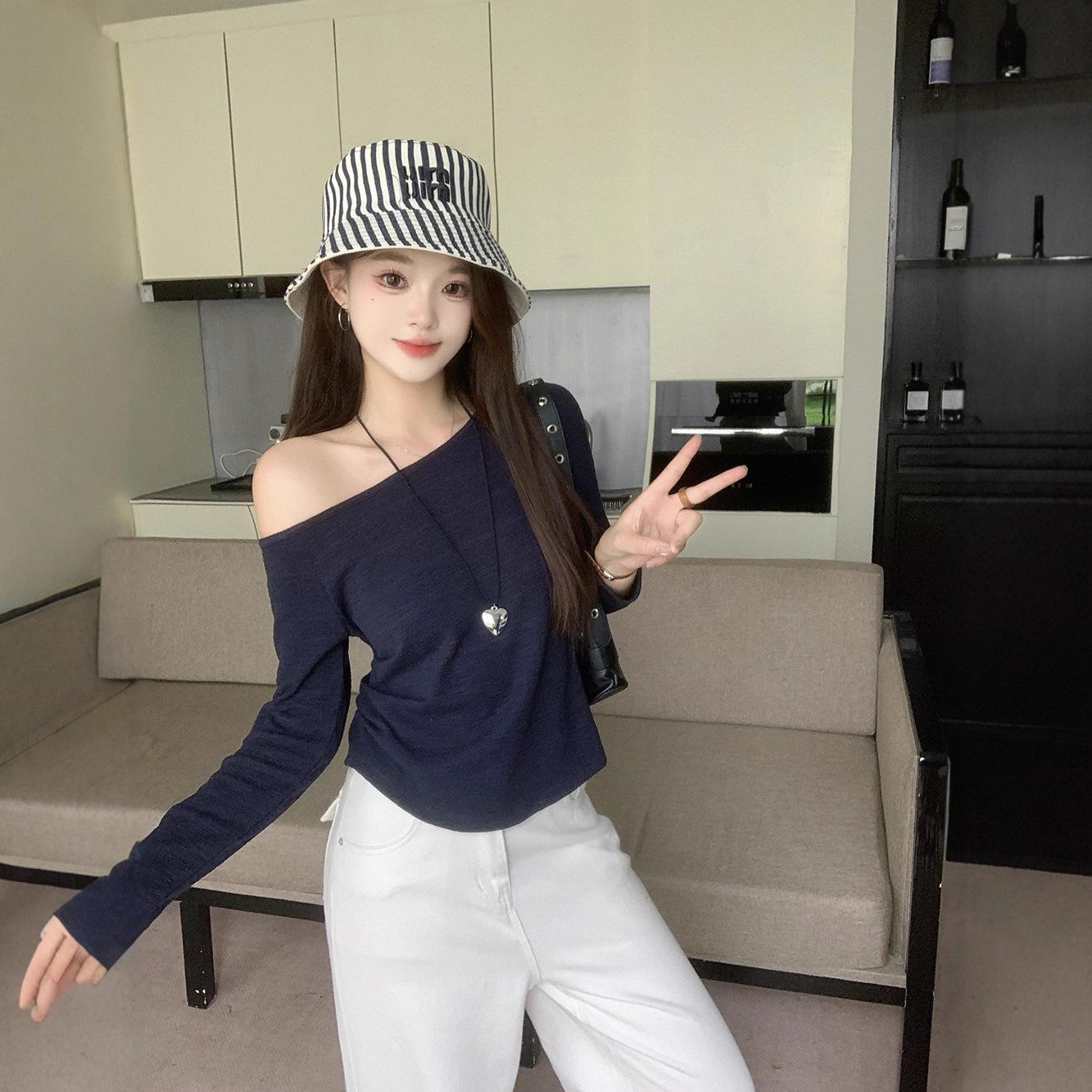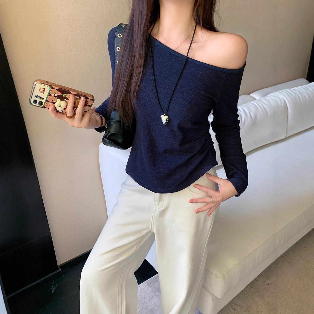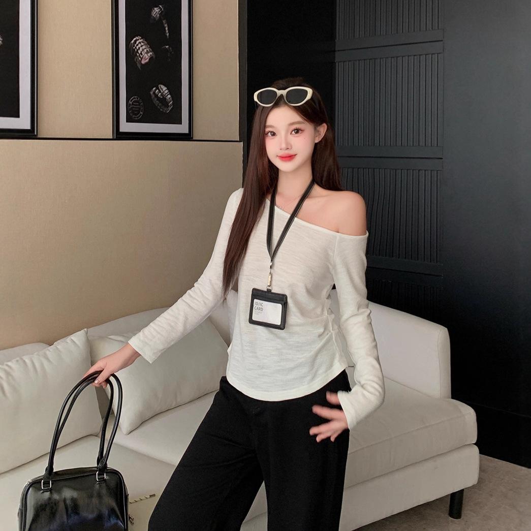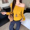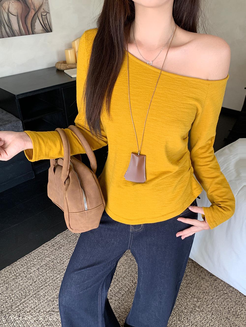 Playera Amarilla de Manga Larga con Hombros Descubiertos y Corte Entallado para Mujer, Diseño de Principios de Otoño con Sentido del Estilo, Top Básico Adelgazante