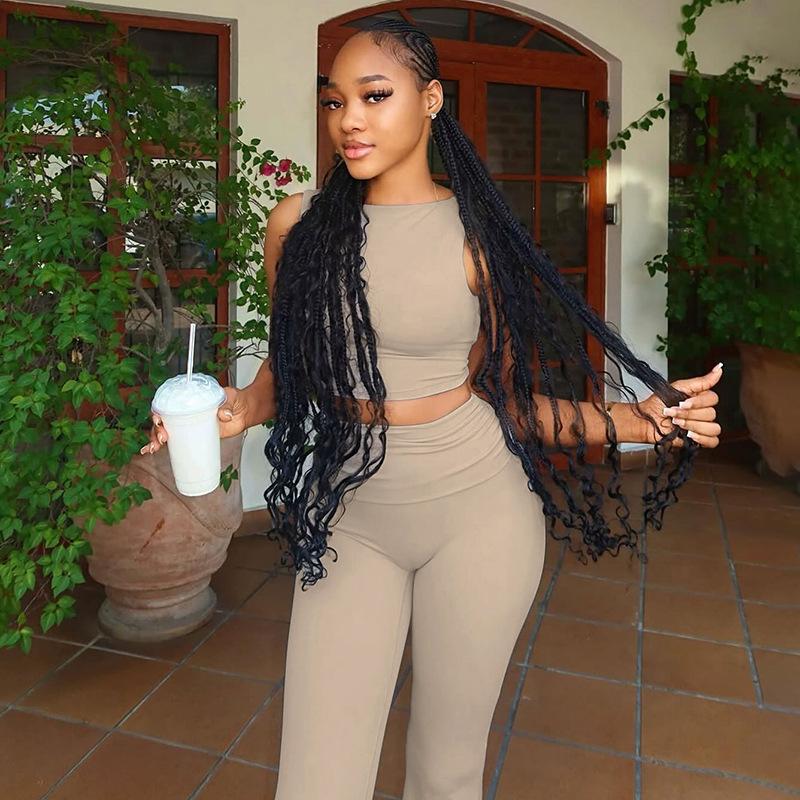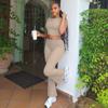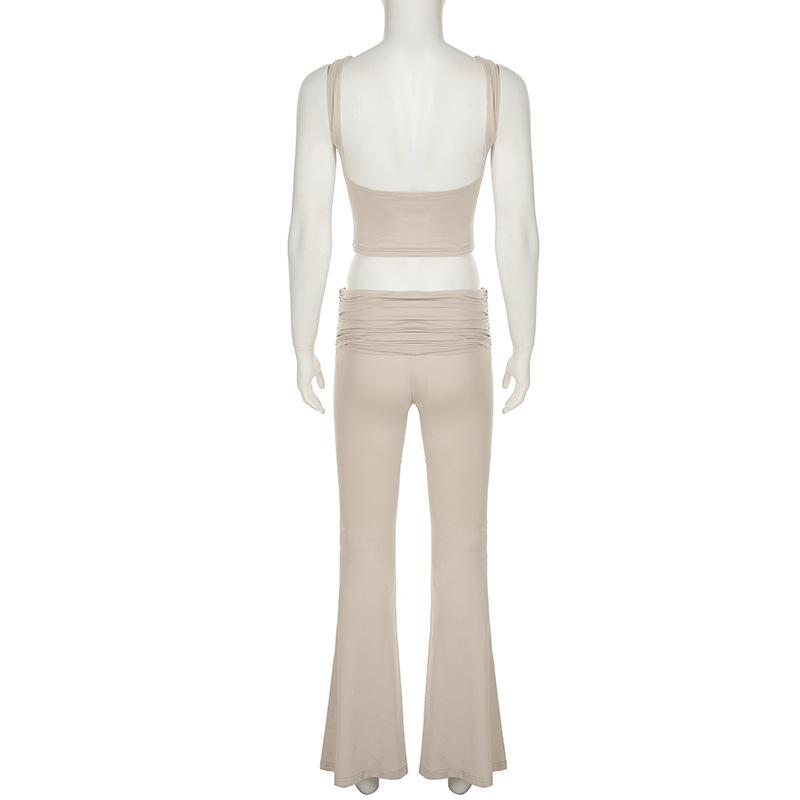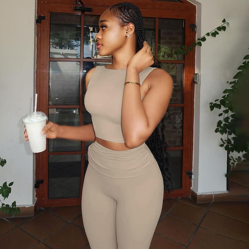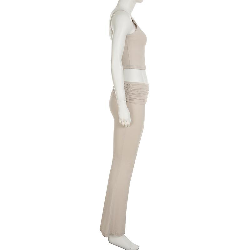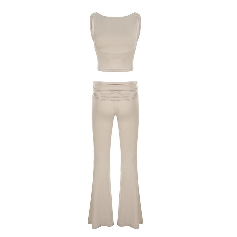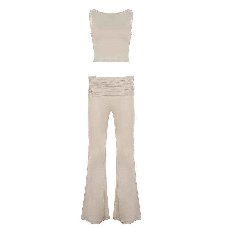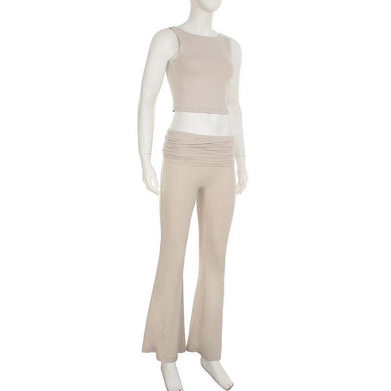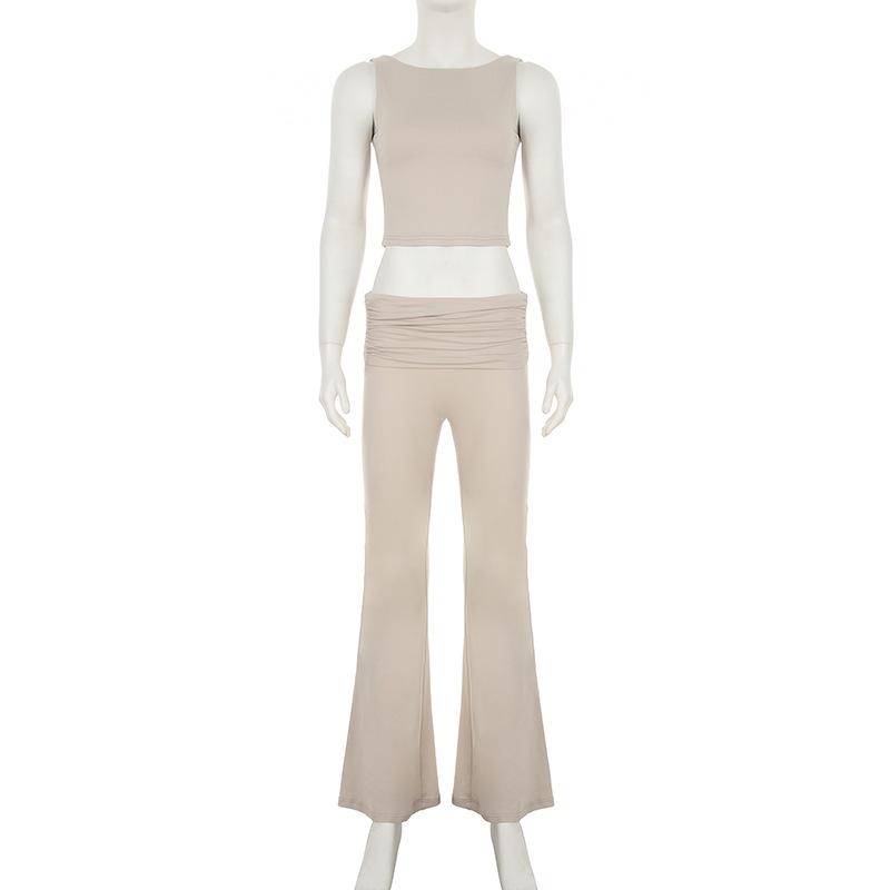 Conjunto Casual de Moda Urbana de Amazon Traje de Yoga Ajustado Deportivo sin Mangas Chaleco Caderas Envolventes Pantalones Micro Acampanados Conjunto de Dos Piezas