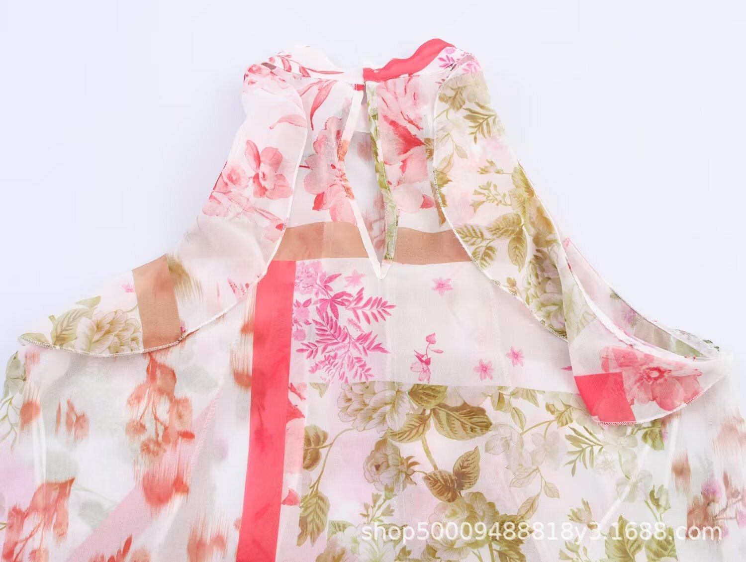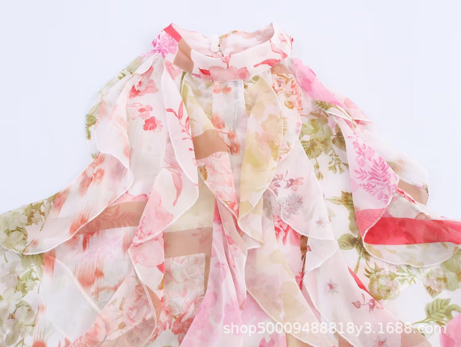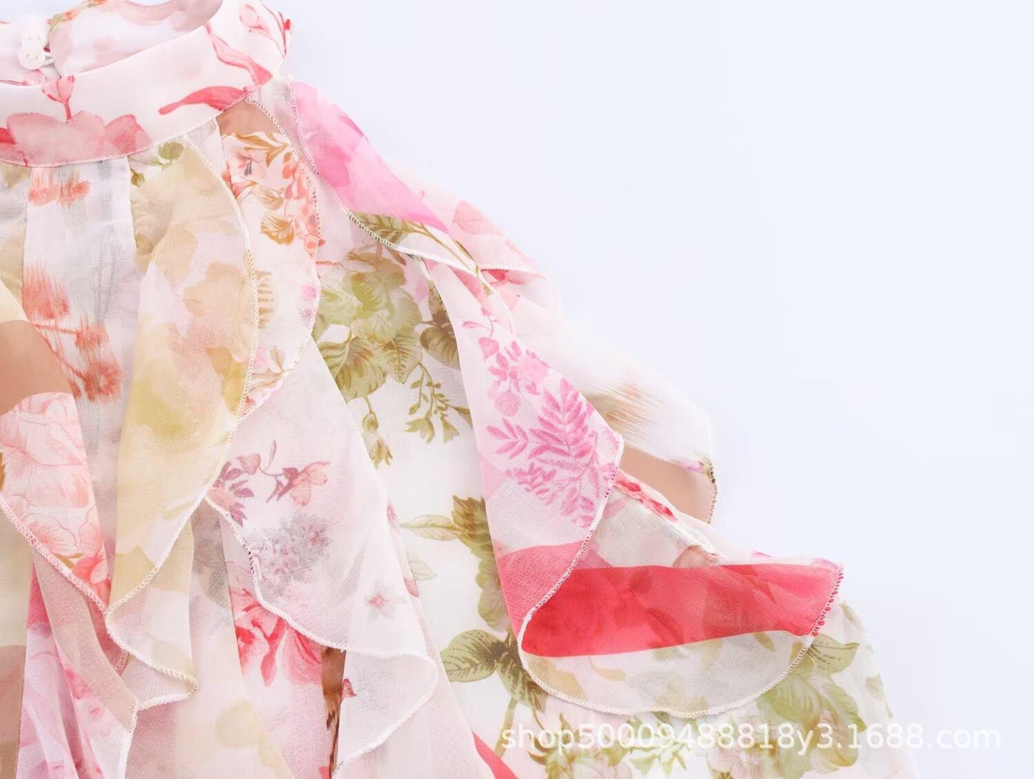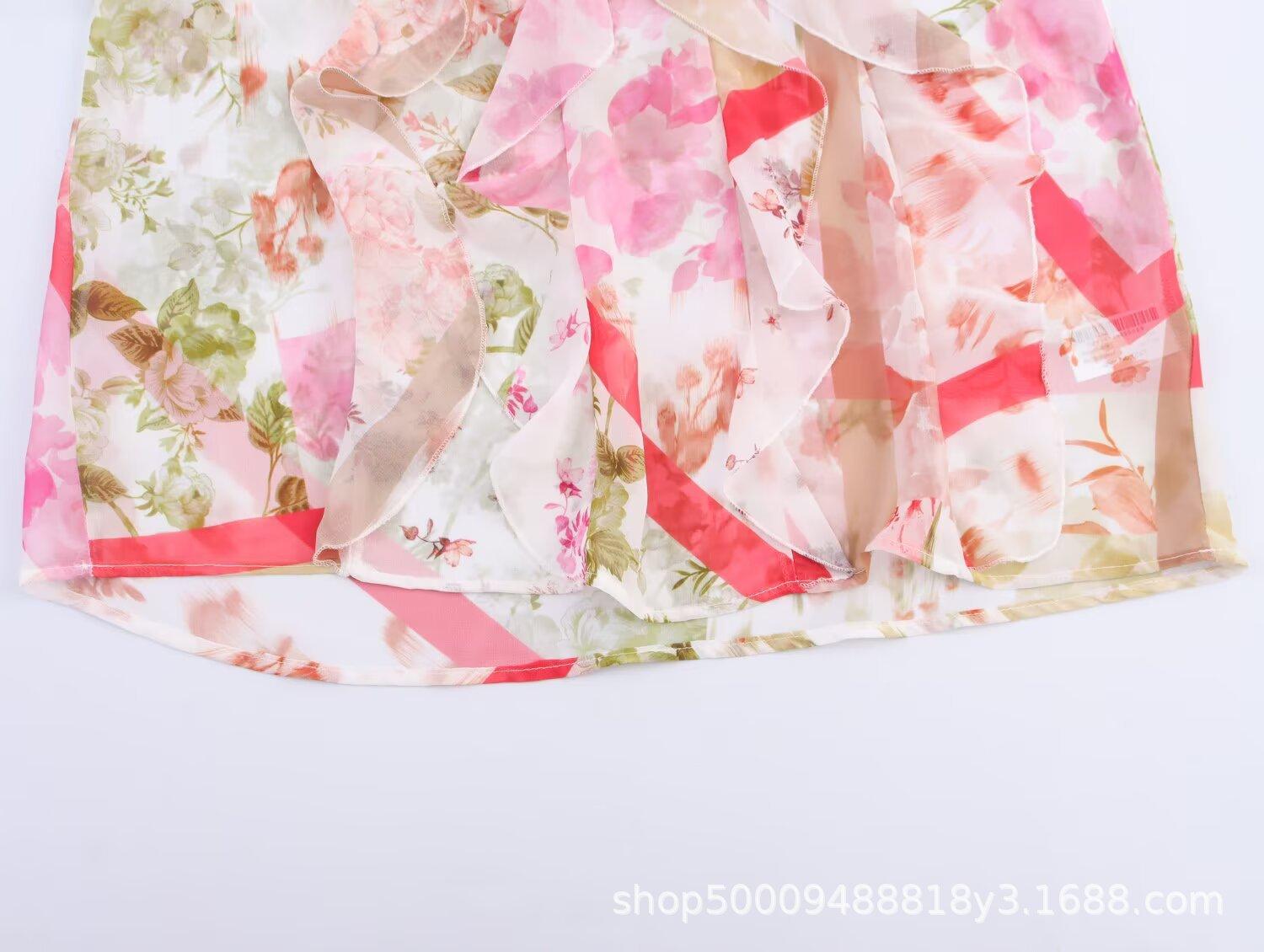 Ropa de Mujer Transfronteriza de Comercio Exterior 2025 Verano Nuevo Europeo y Americano Estampado Floral Decoración en Capas Top 2298125 330