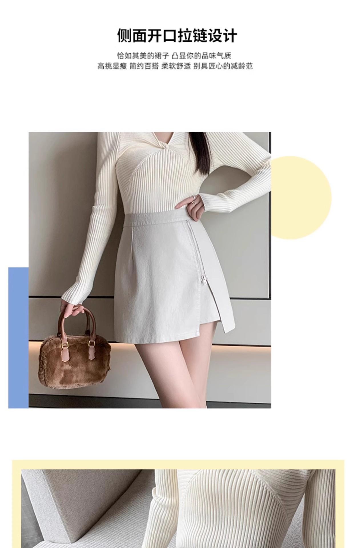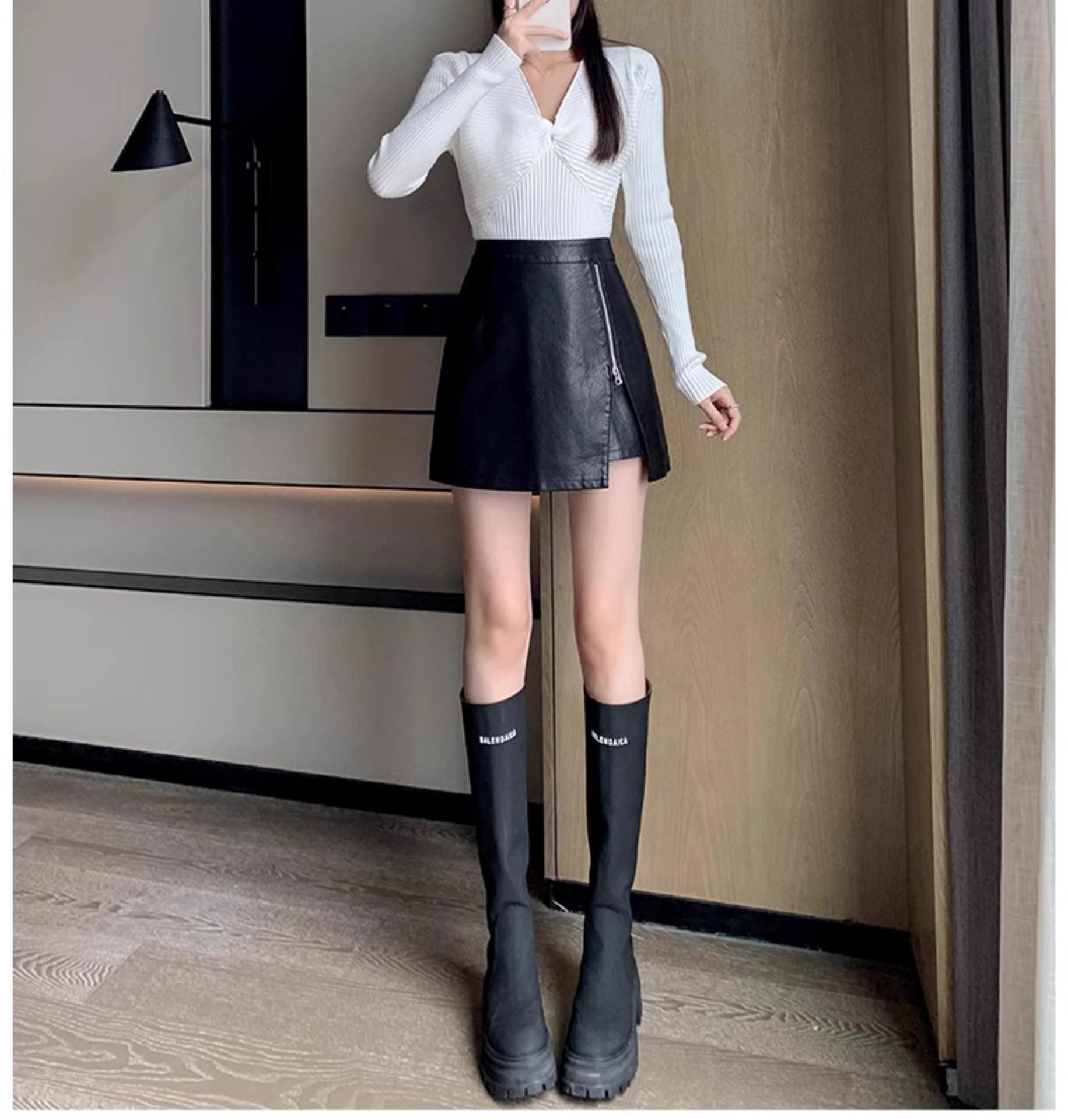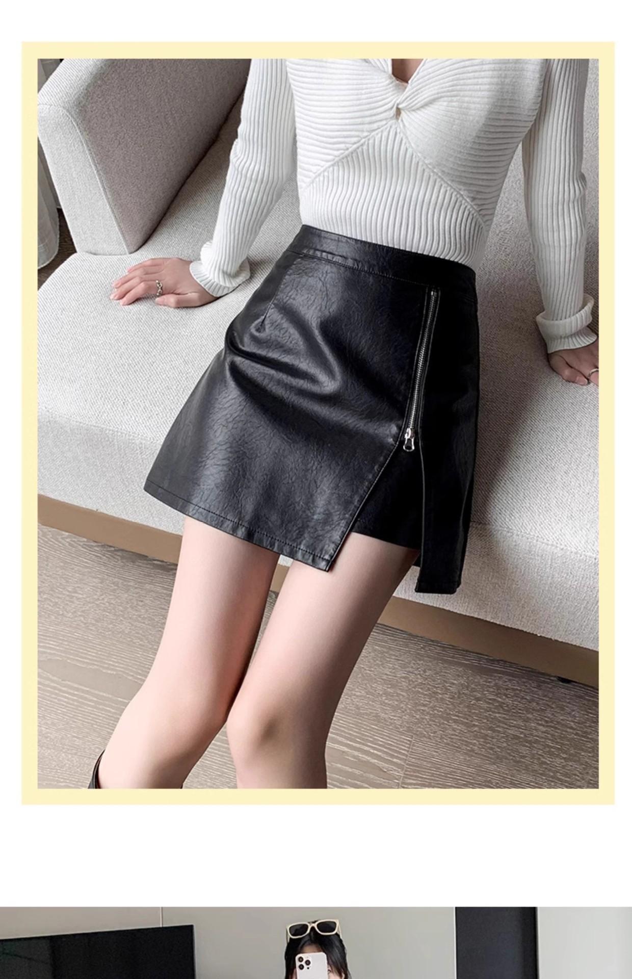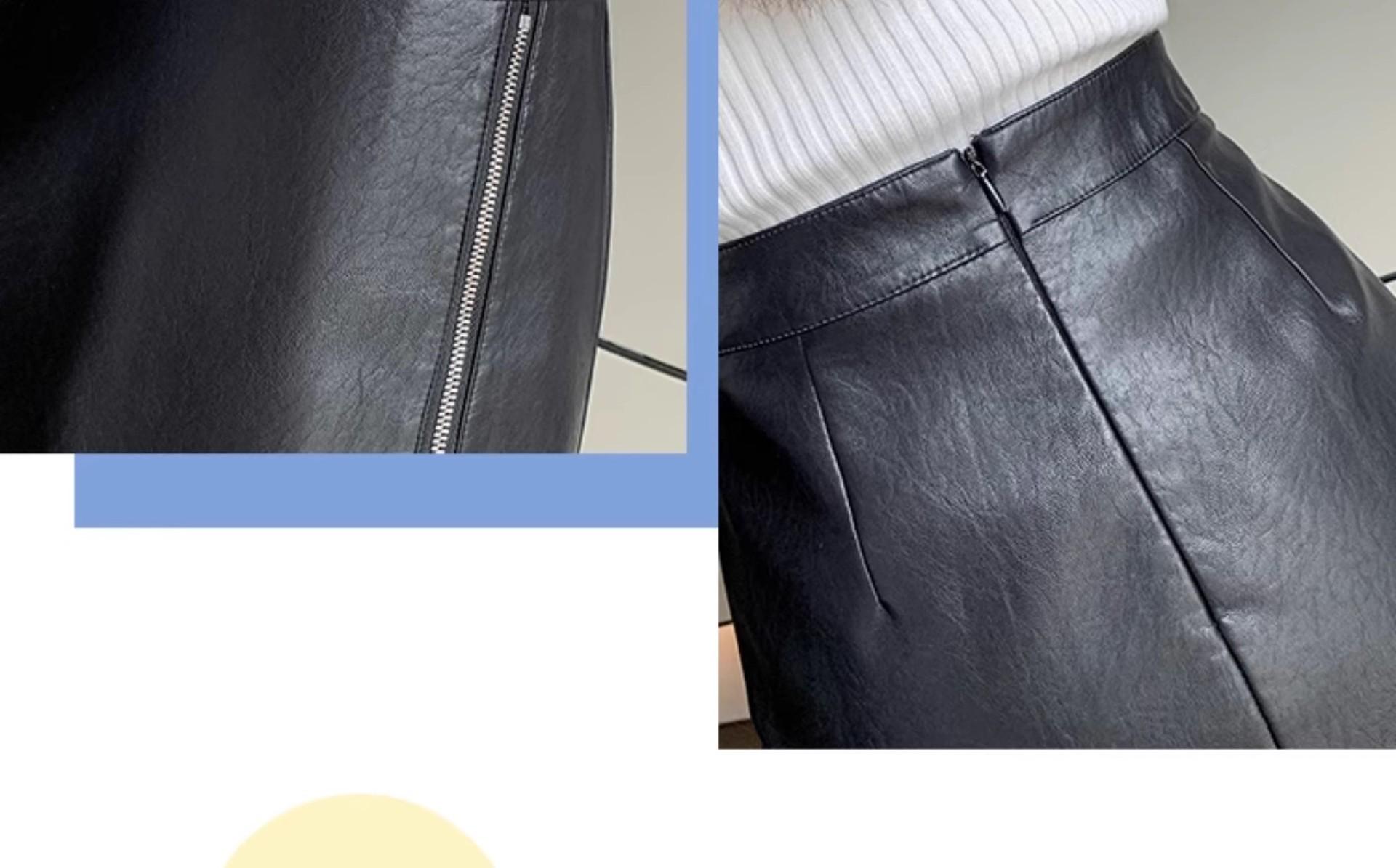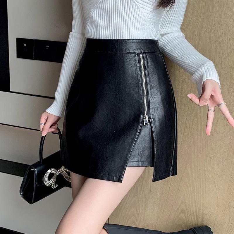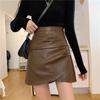 Falda Midi para Mujer Falda Pequeña de Cuero 2025 Otoño/Invierno Nueva Cintura Alta Adelgazante Abertura Irregular Línea A Ajustada Falda Corta