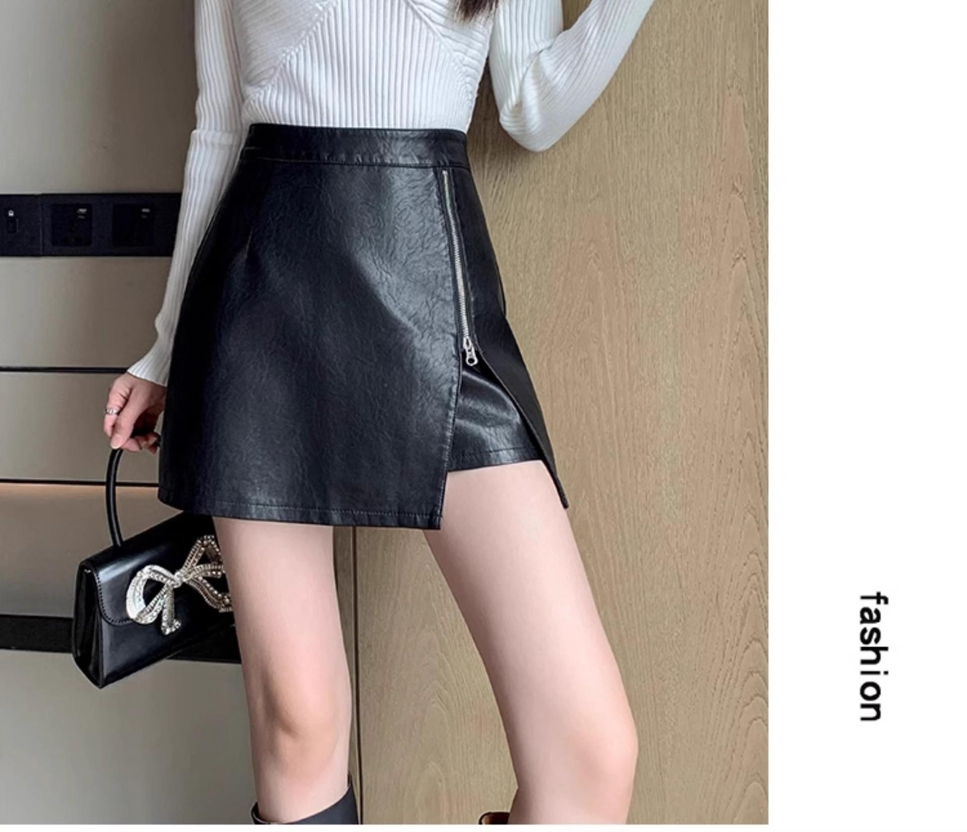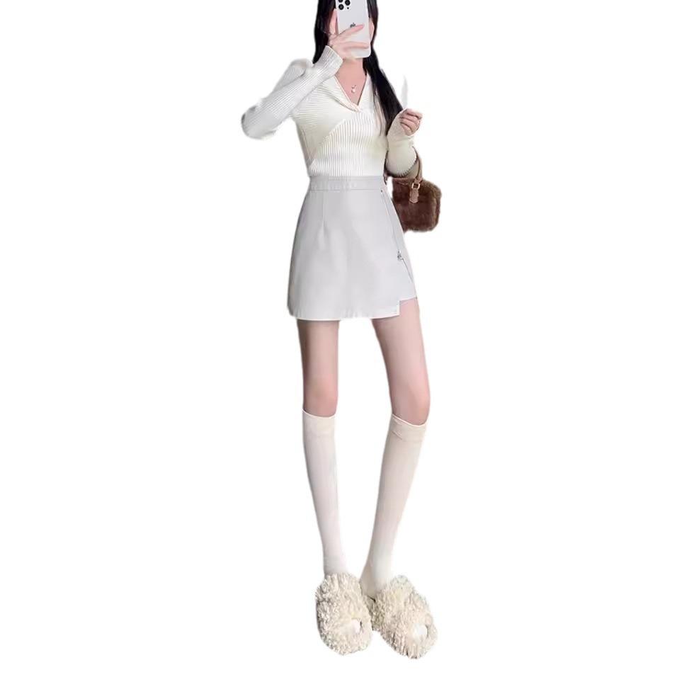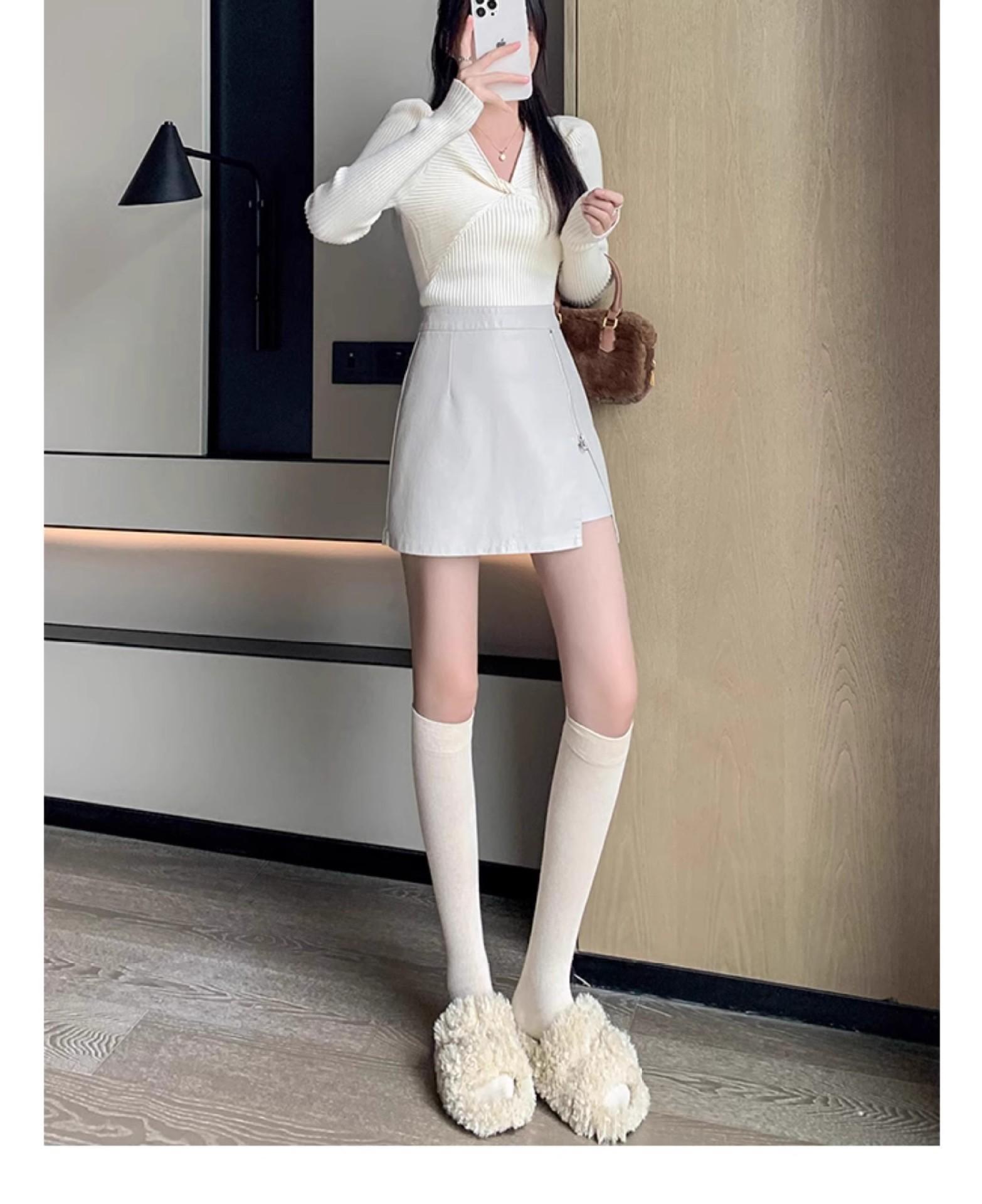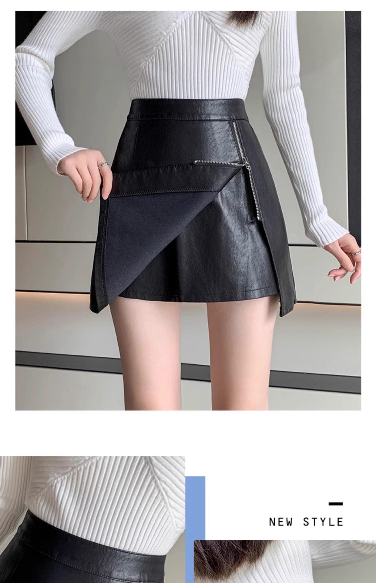 Falda Midi para Mujer Falda Pequeña de Cuero 2025 Otoño/Invierno Nueva Cintura Alta Adelgazante Abertura Irregular Línea A Ajustada Falda Corta