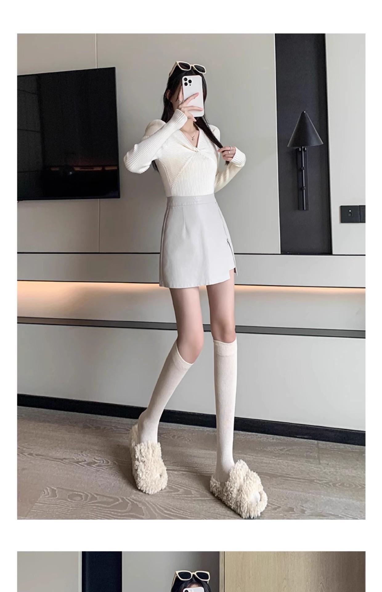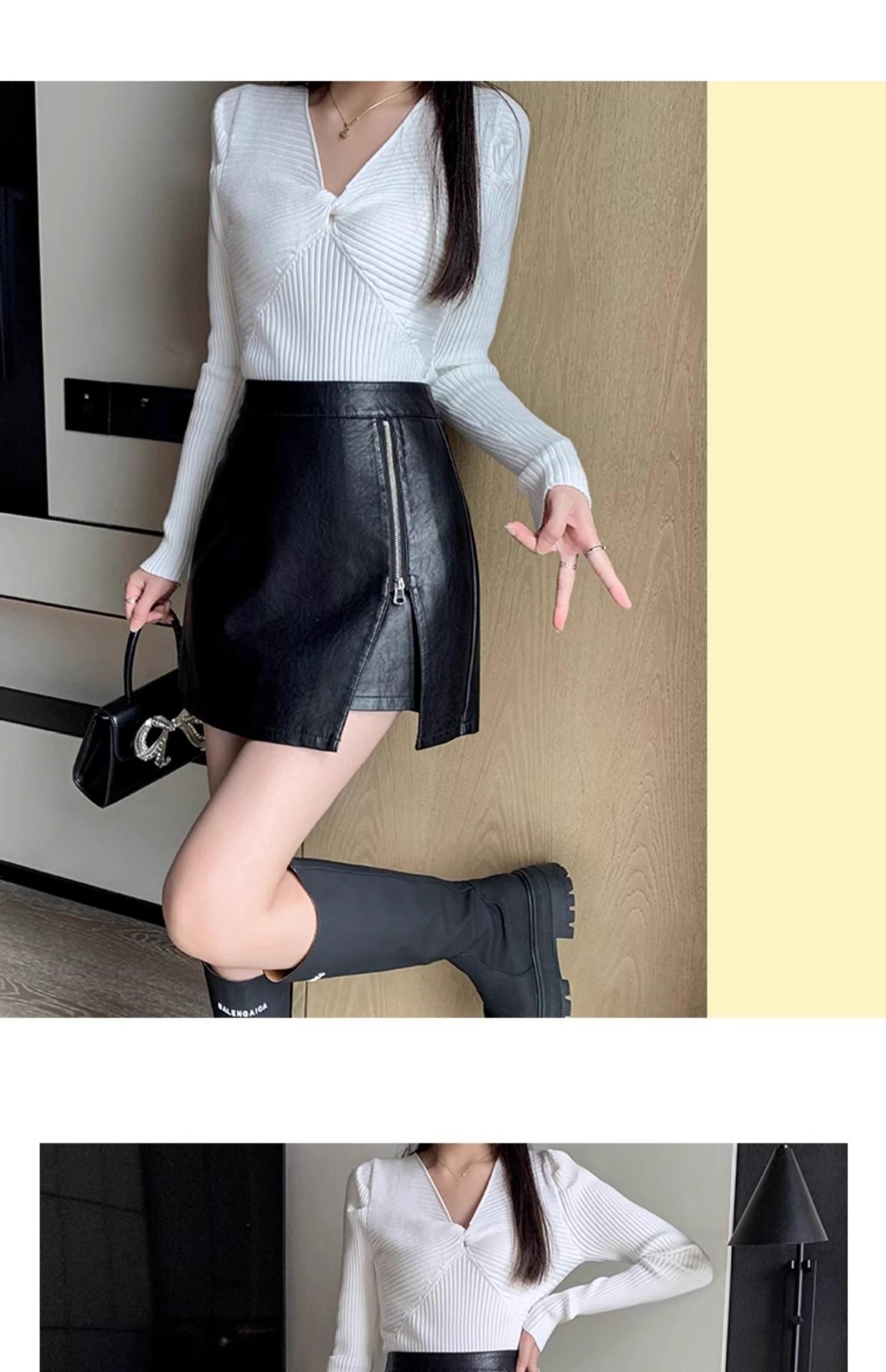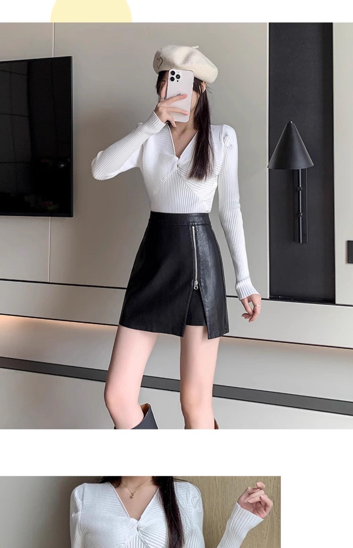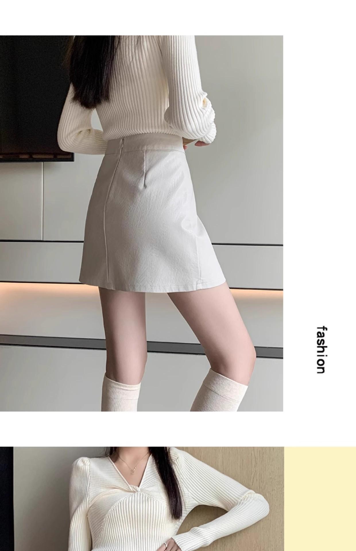 Falda Midi para Mujer Falda Pequeña de Cuero 2025 Otoño/Invierno Nueva Cintura Alta Adelgazante Abertura Irregular Línea A Ajustada Falda Corta