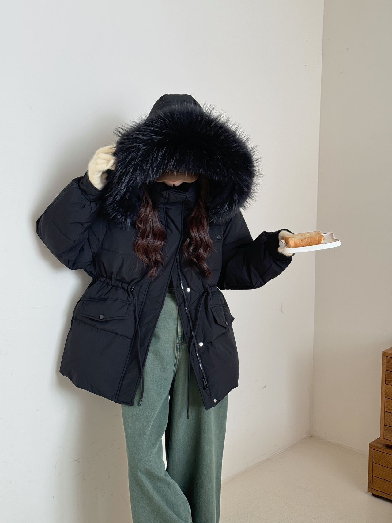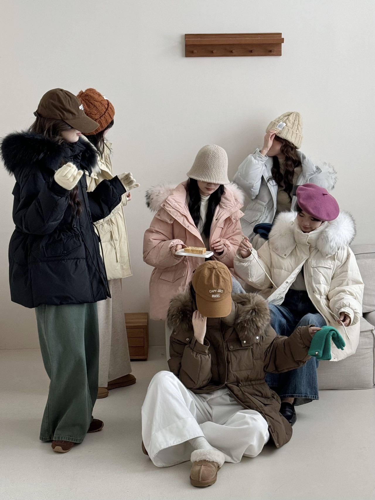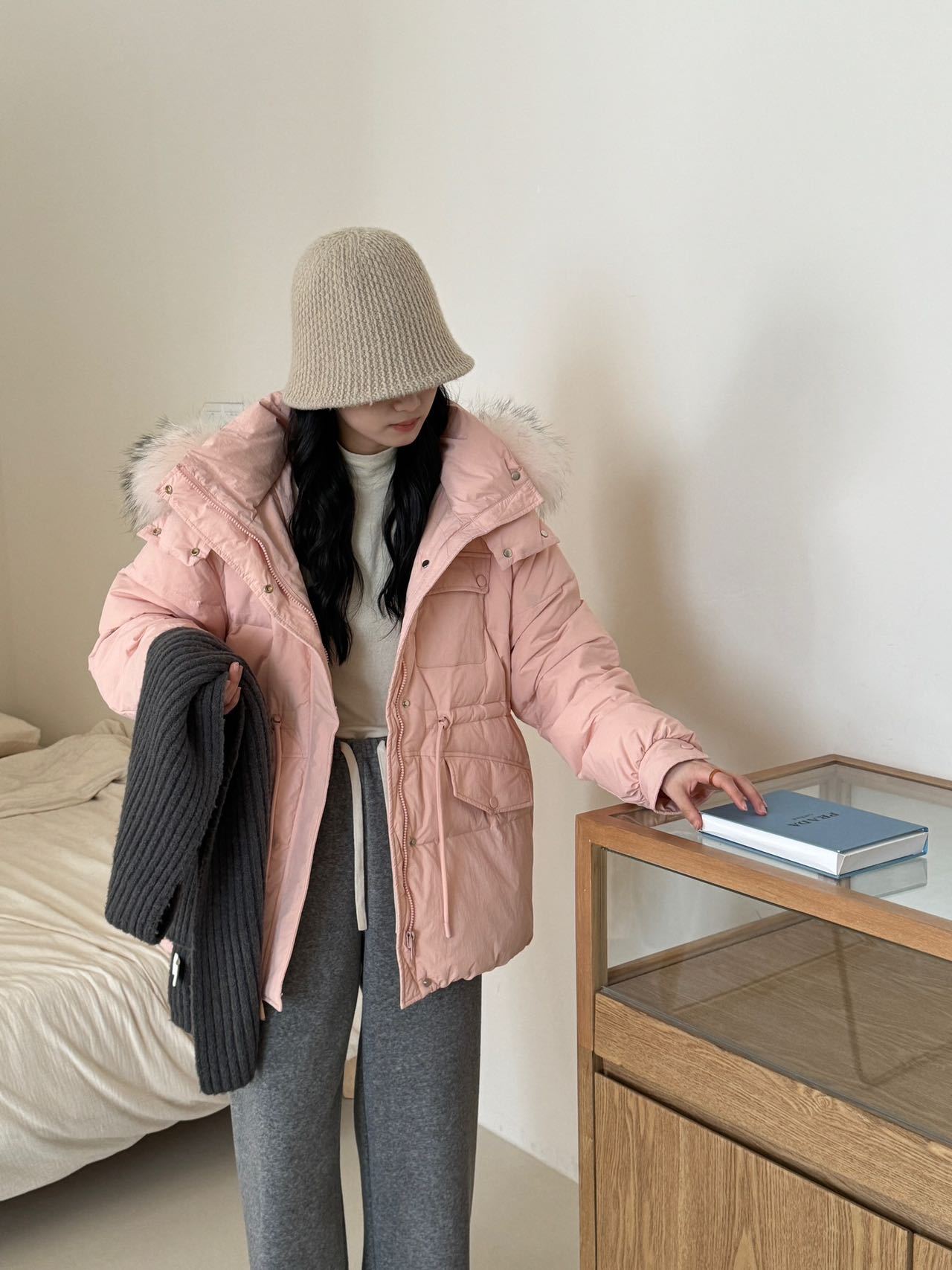Coffee Color-Raccoon Fur Collar【Coffee】, Blue-Raccoon Fur Collar【Blue】, Pink-Raccoon Fur Collar【Pink】, Milky W...
