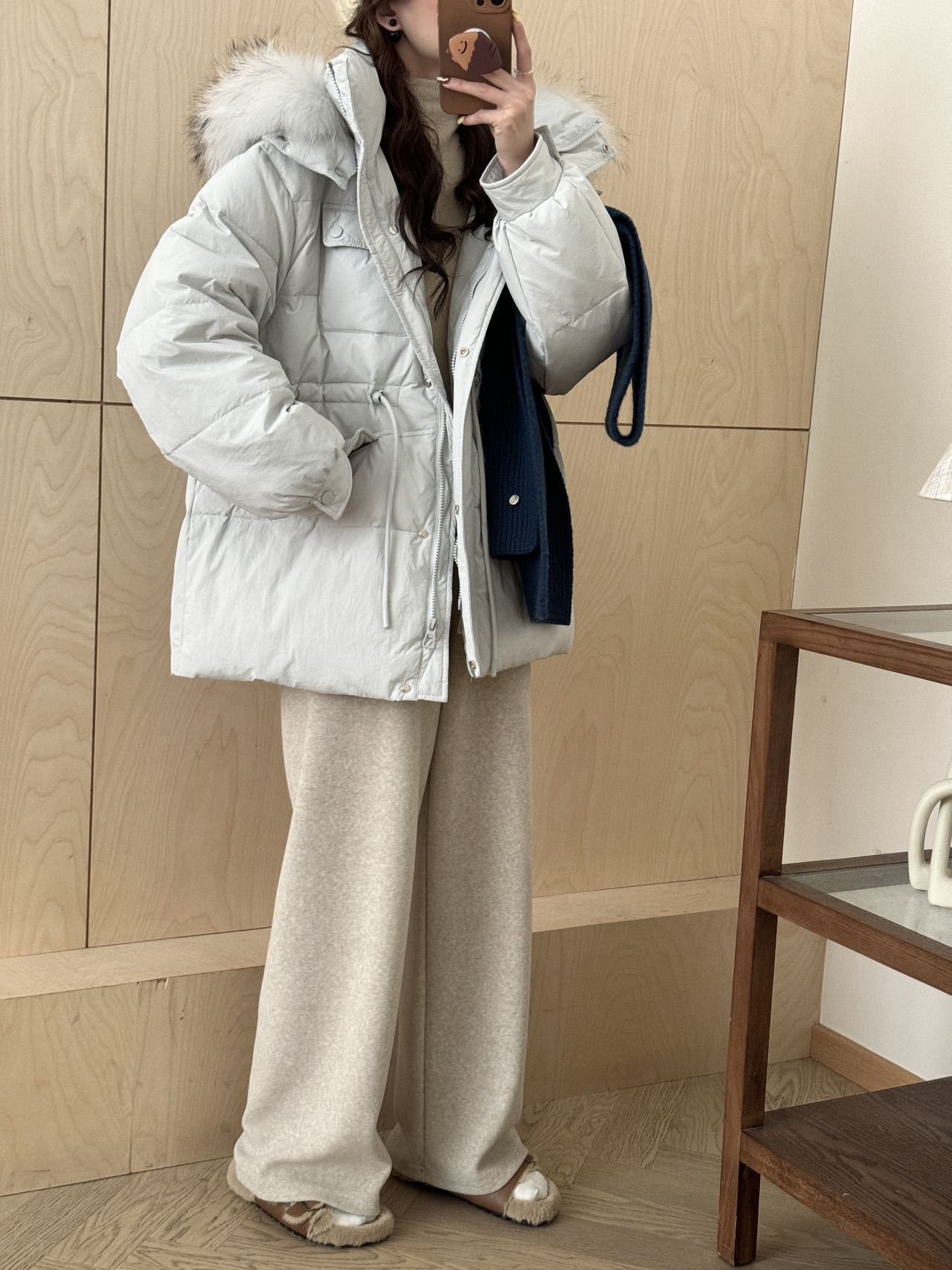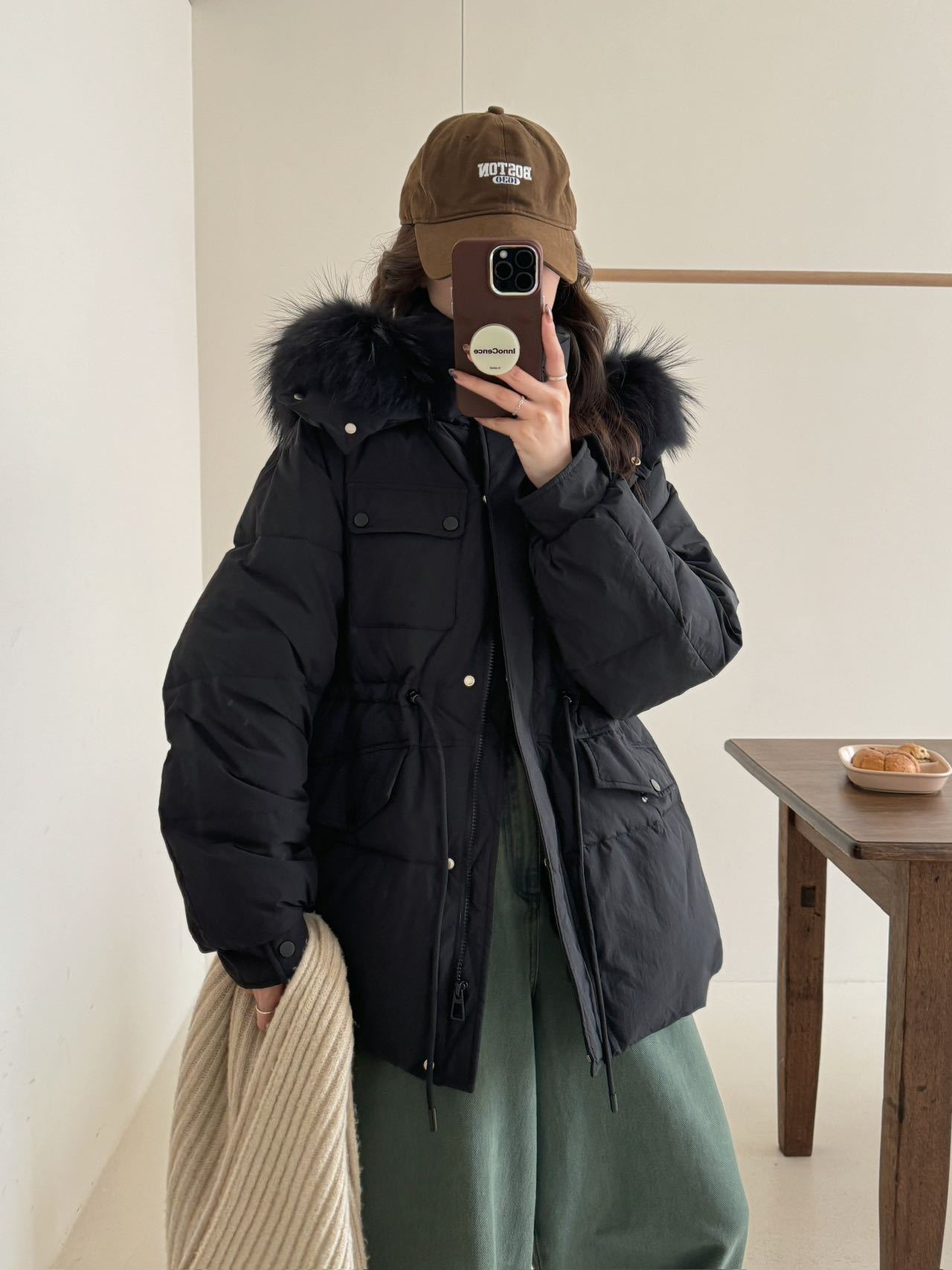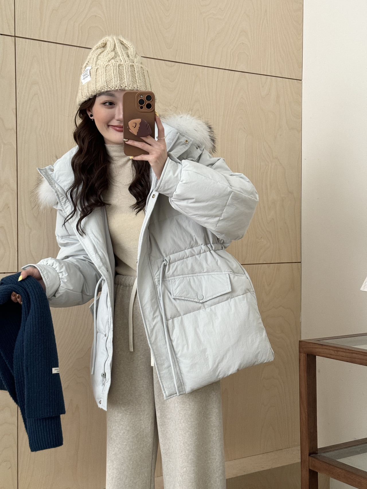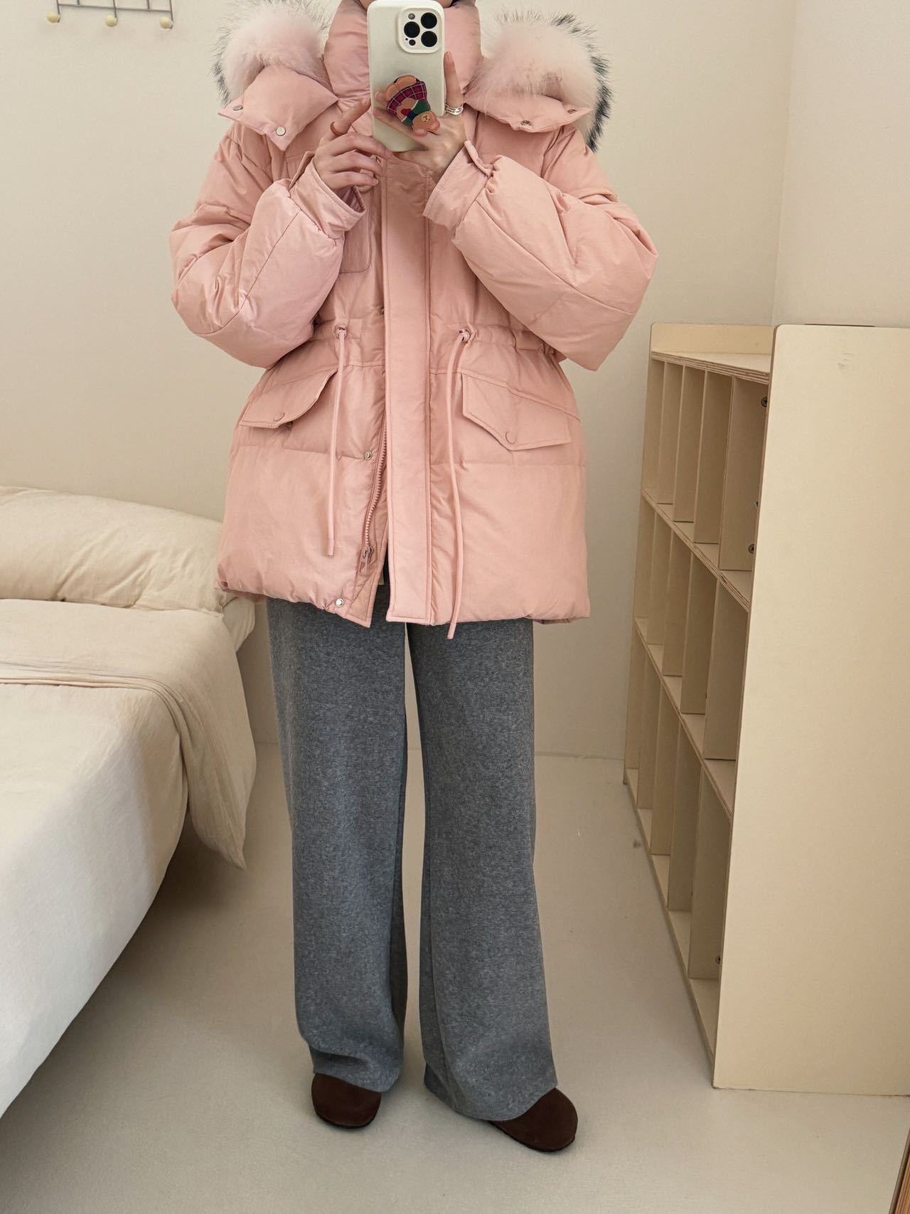Coffee Color-Raccoon Fur Collar【Coffee】, Blue-Raccoon Fur Collar【Blue】, Pink-Raccoon Fur Collar【Pink】, Milky W...