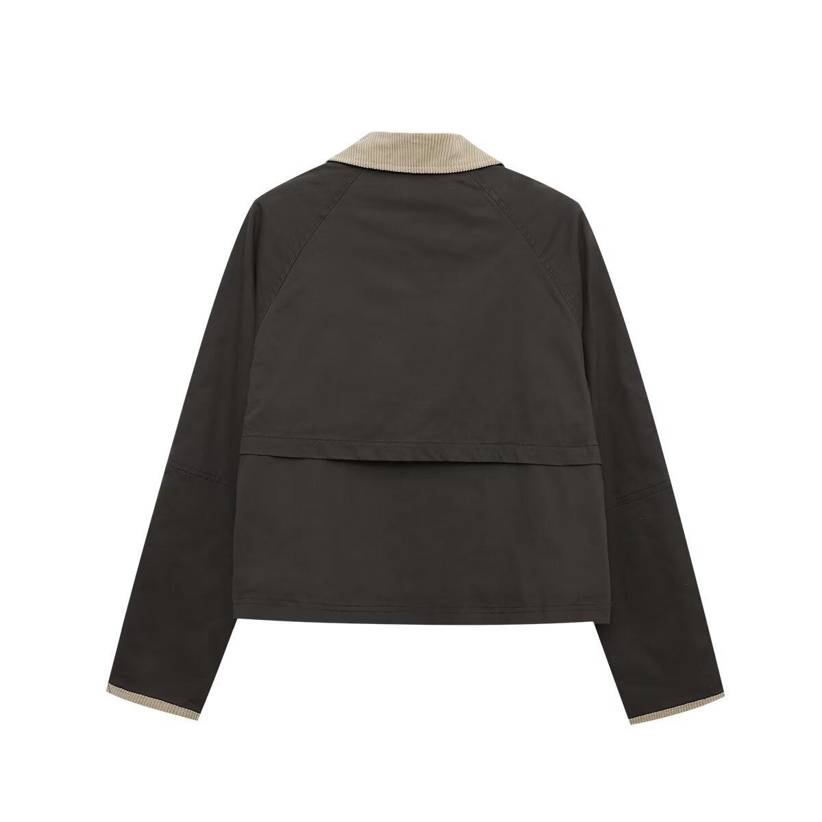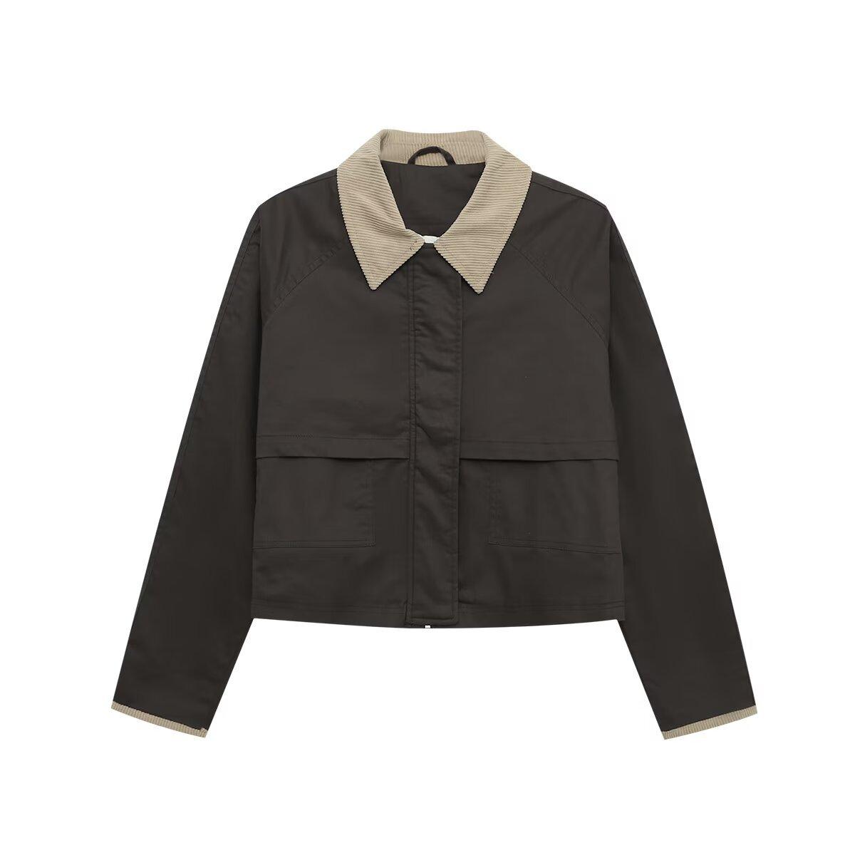 Z Estilo Europeo y Americano Transfronterizo 2025 Nuevo Venta al por Mayor Moda Temperamento Chaqueta de Cuero de Manga Larga con Cuello Color Block para Mujer 4341890