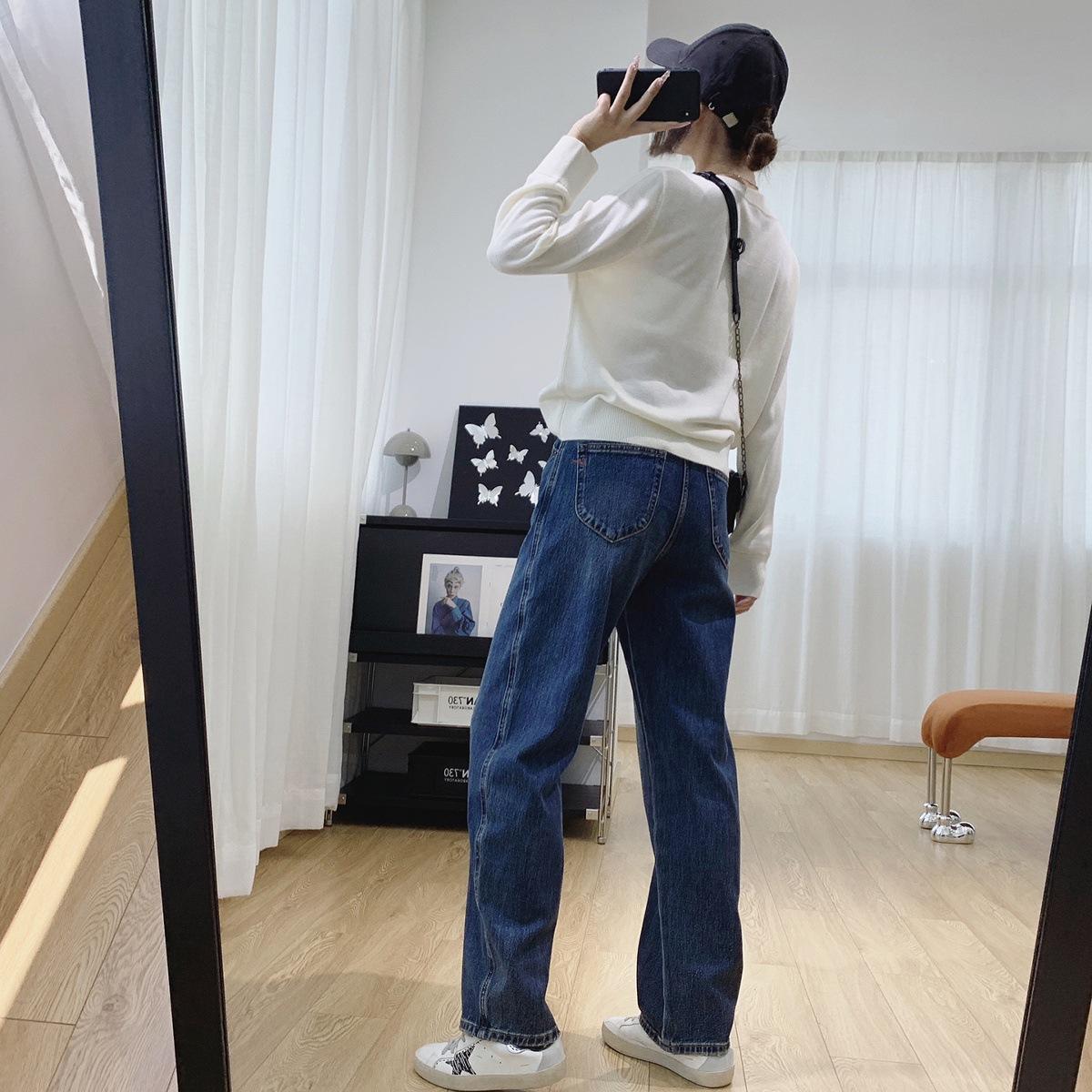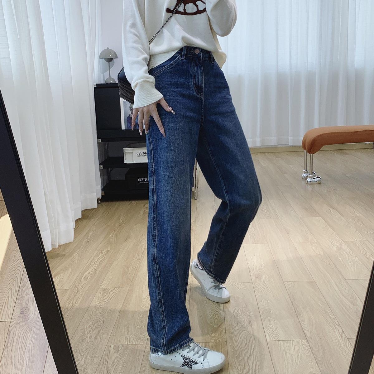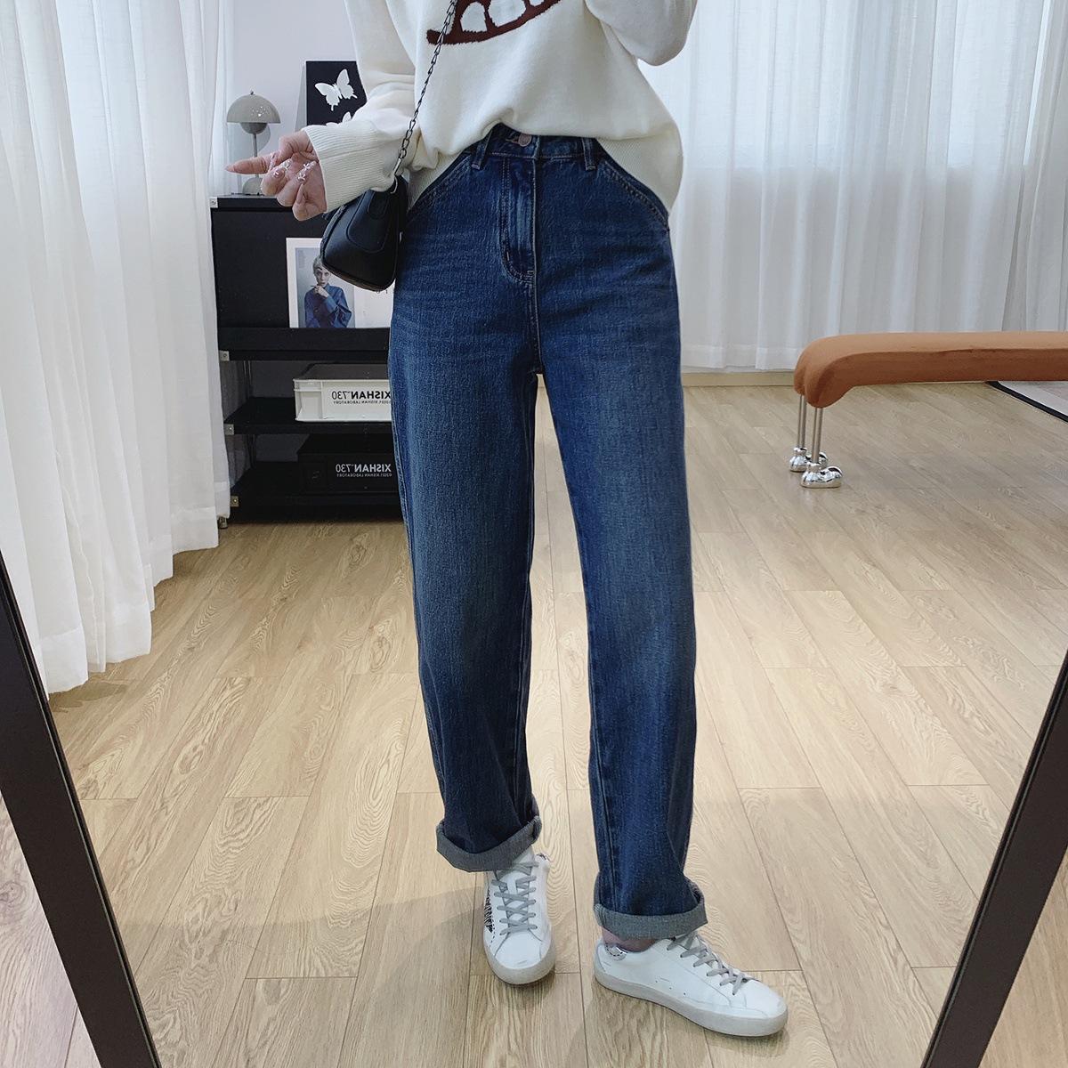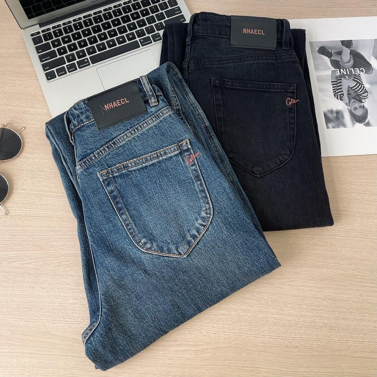 Jeans Skinny Adelgazantes de Cintura Alta con Pierna Curvada para Mujer Otoño 2025 Nuevo Estilo Pantalones Pantalones Banana Guadaña Otoño Primavera Pantalones de Pierna Ancha