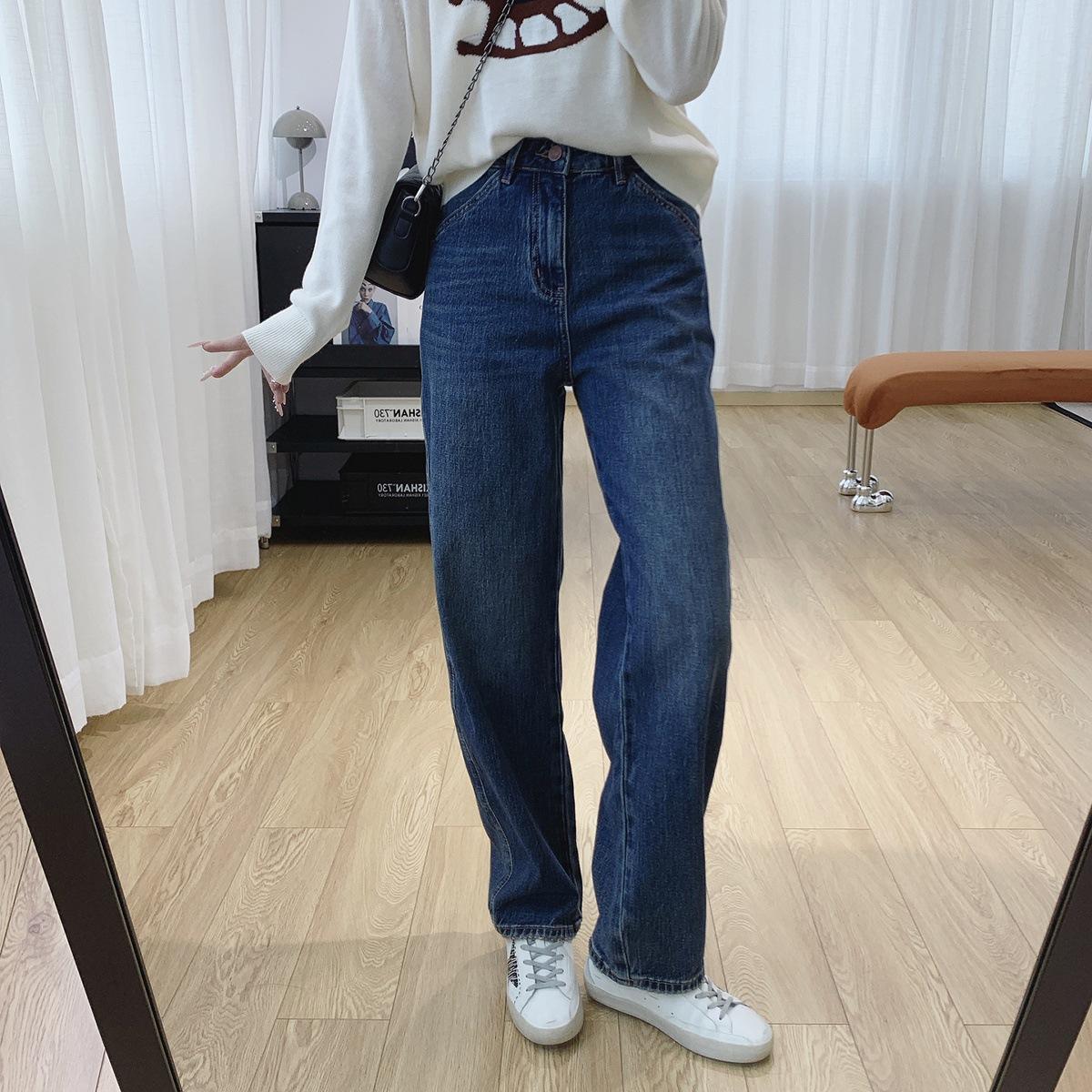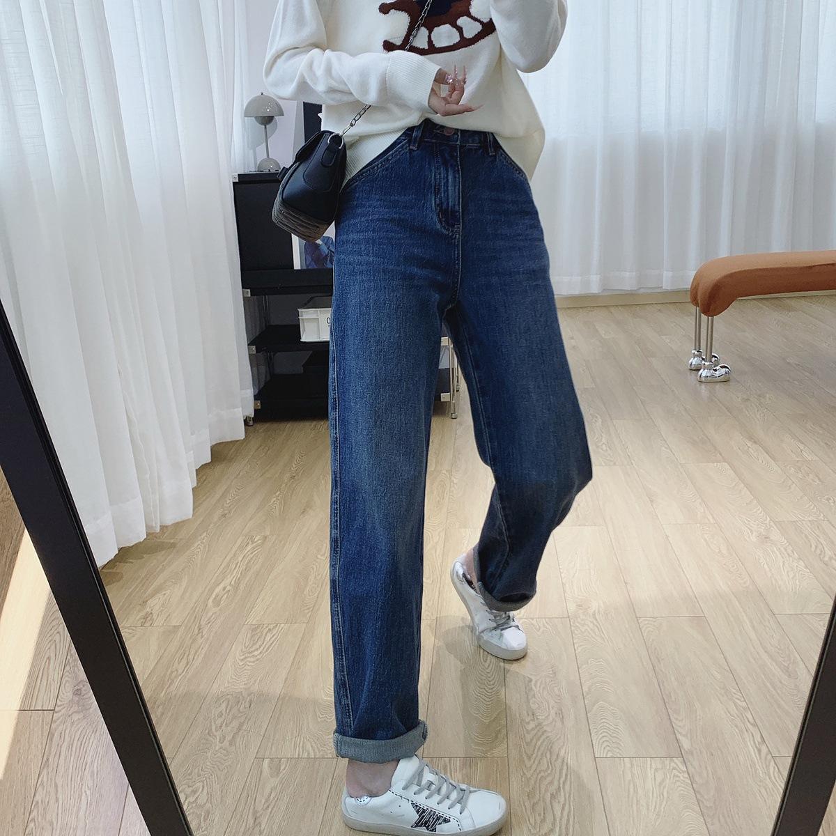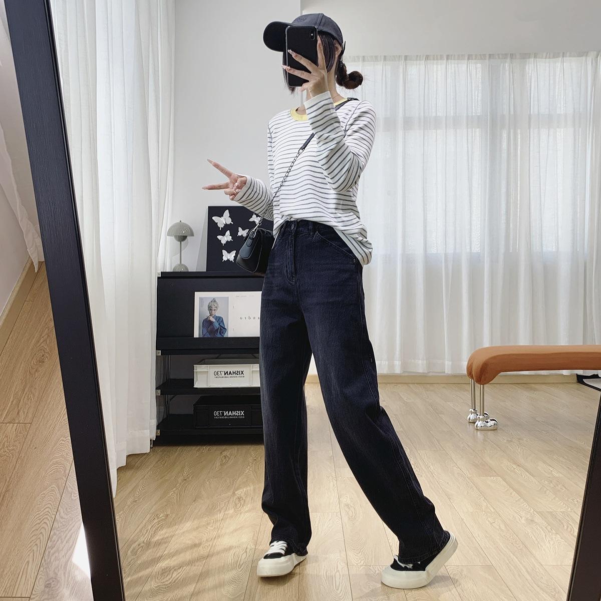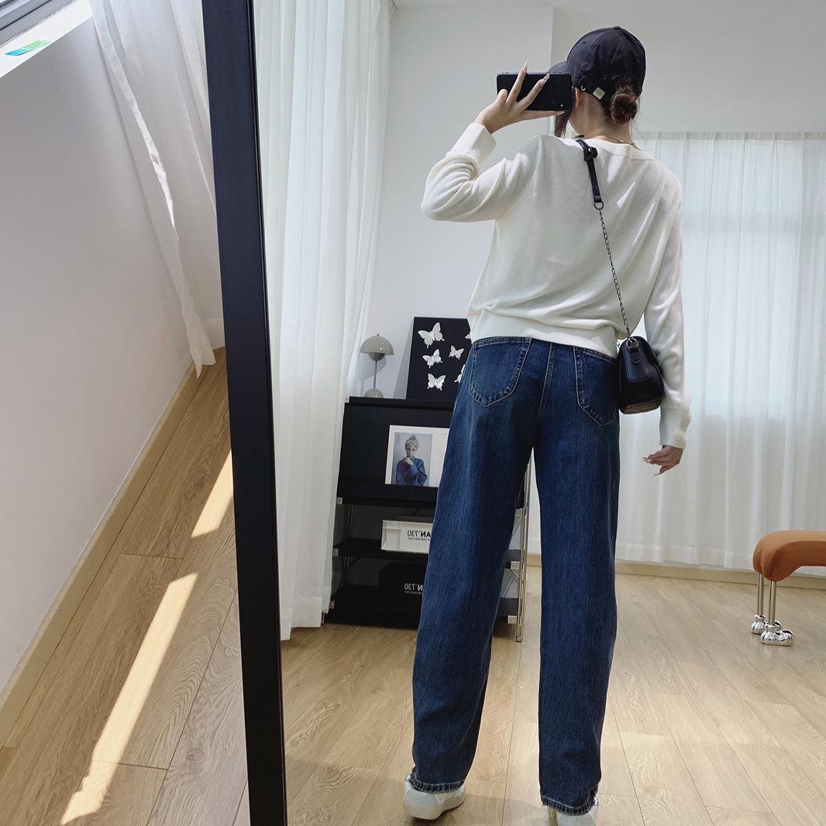 Jeans Skinny Adelgazantes de Cintura Alta con Pierna Curvada para Mujer Otoño 2025 Nuevo Estilo Pantalones Pantalones Banana Guadaña Otoño Primavera Pantalones de Pierna Ancha
