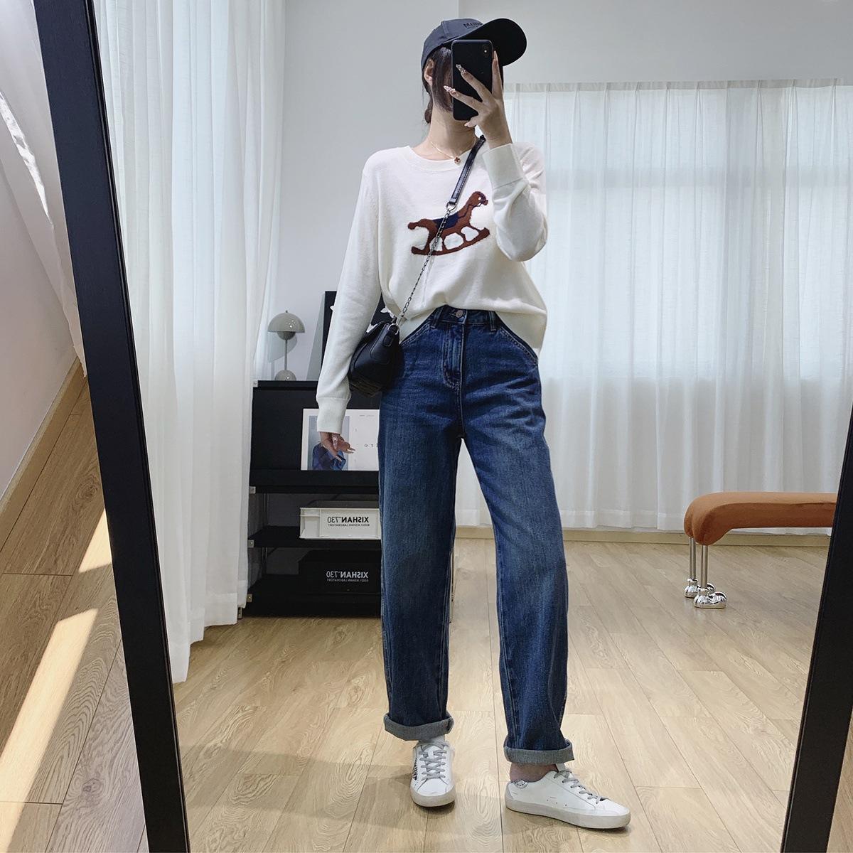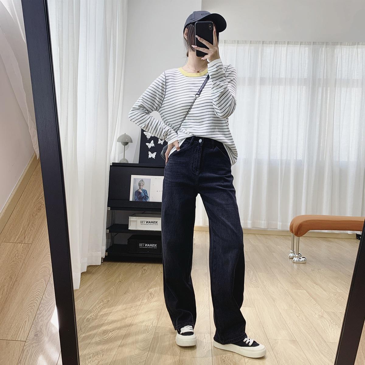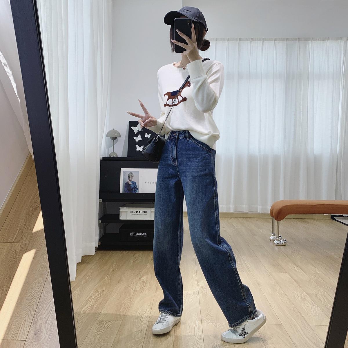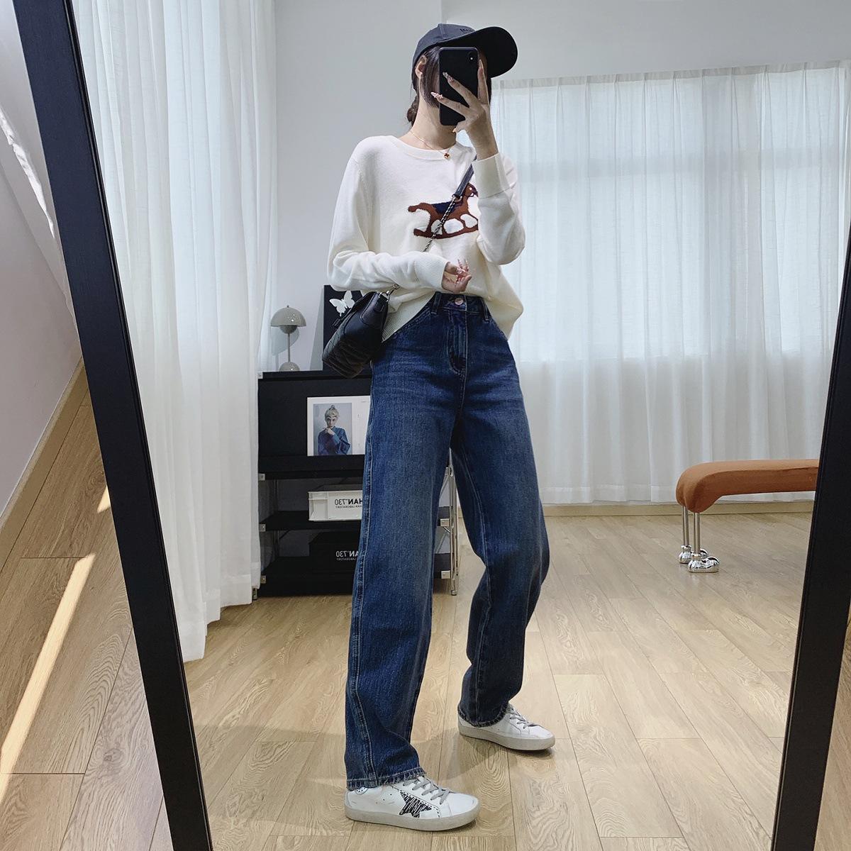 Jeans Skinny Adelgazantes de Cintura Alta con Pierna Curvada para Mujer Otoño 2025 Nuevo Estilo Pantalones Pantalones Banana Guadaña Otoño Primavera Pantalones de Pierna Ancha