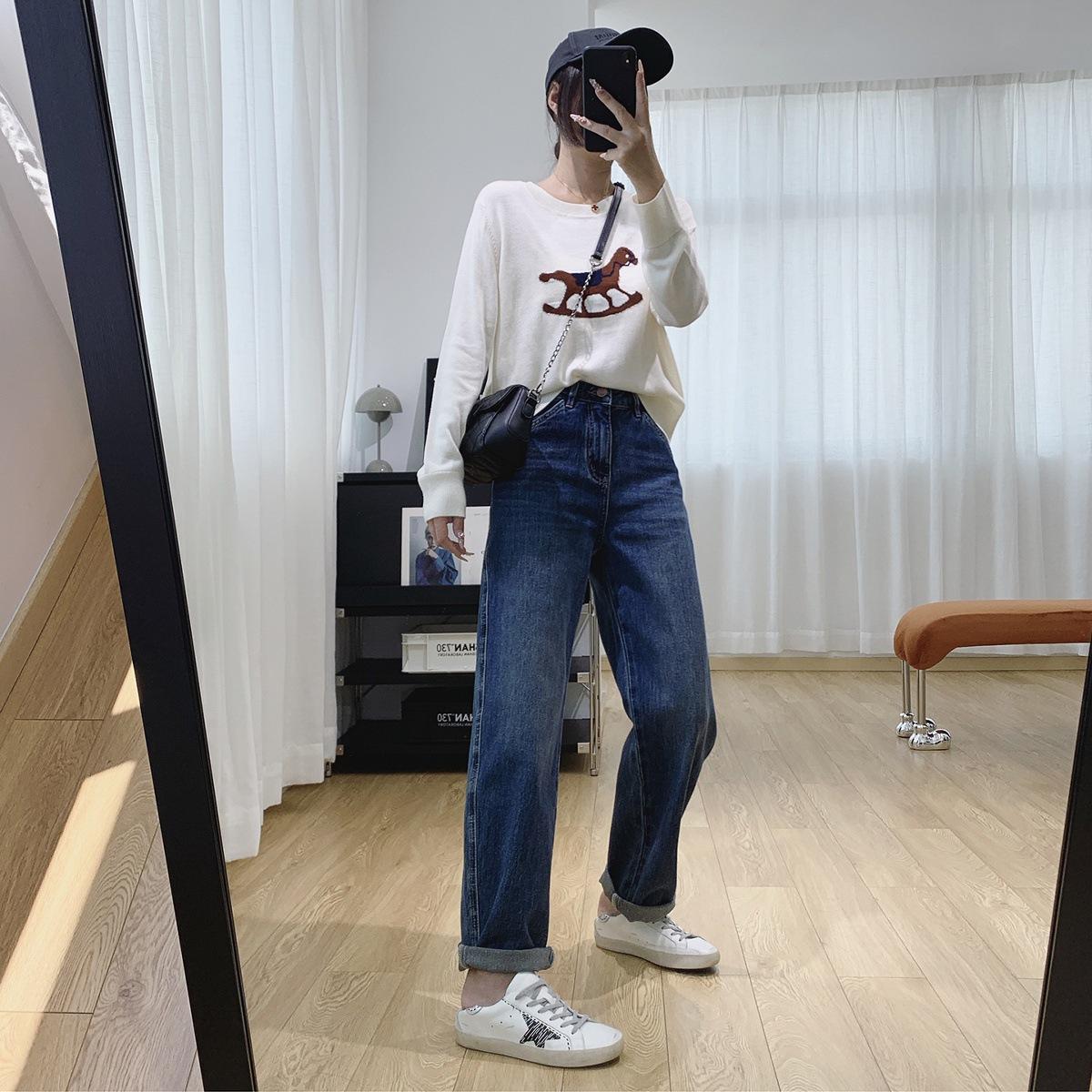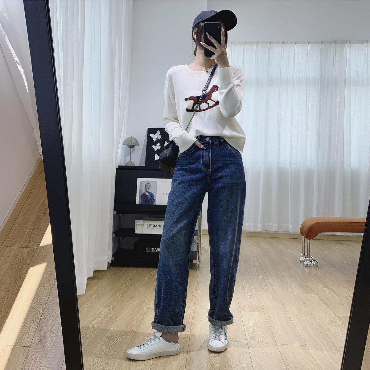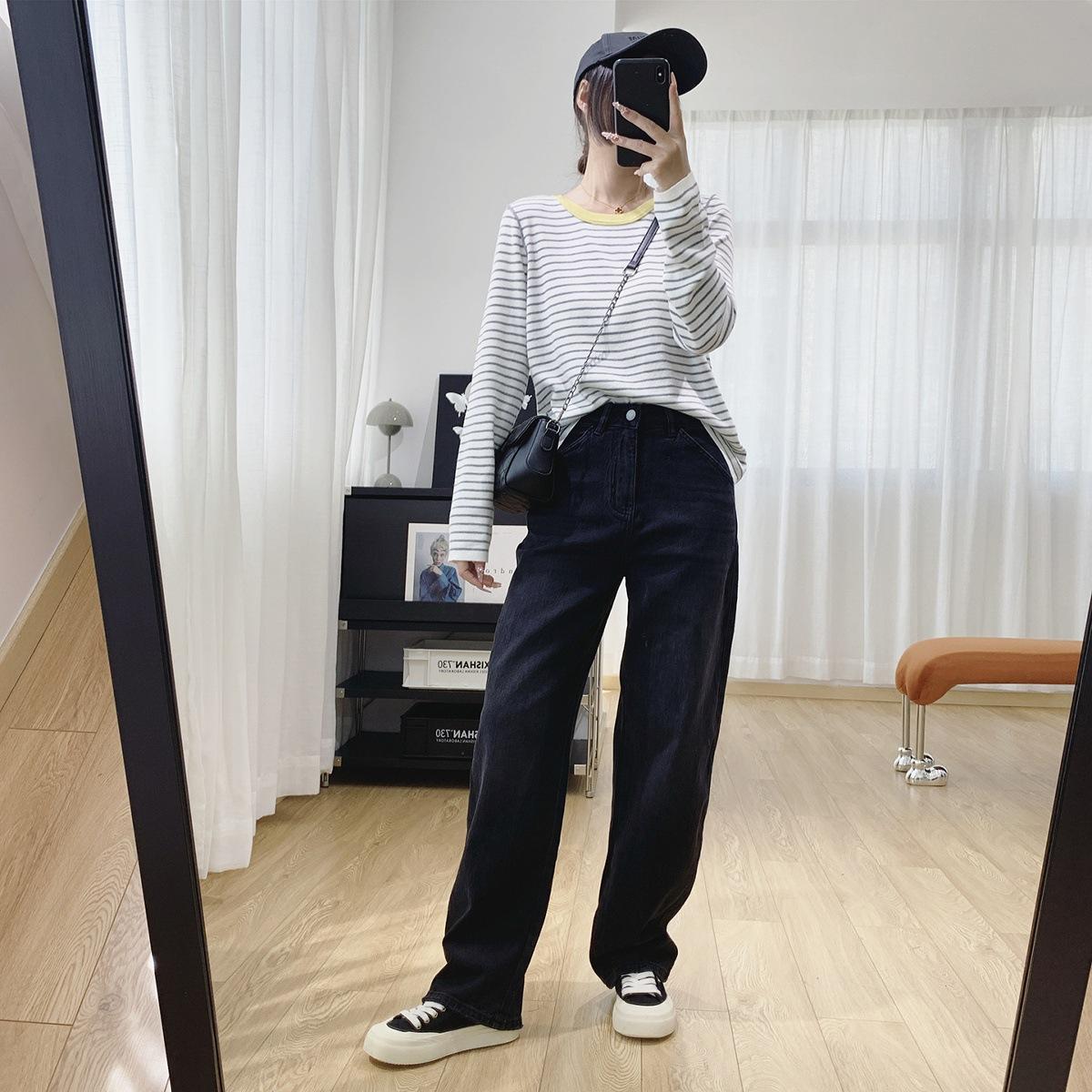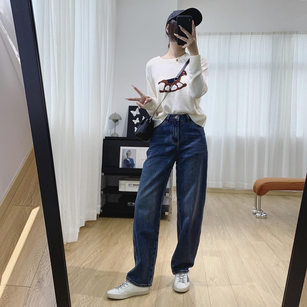 Jeans Skinny Adelgazantes de Cintura Alta con Pierna Curvada para Mujer Otoño 2025 Nuevo Estilo Pantalones Pantalones Banana Guadaña Otoño Primavera Pantalones de Pierna Ancha