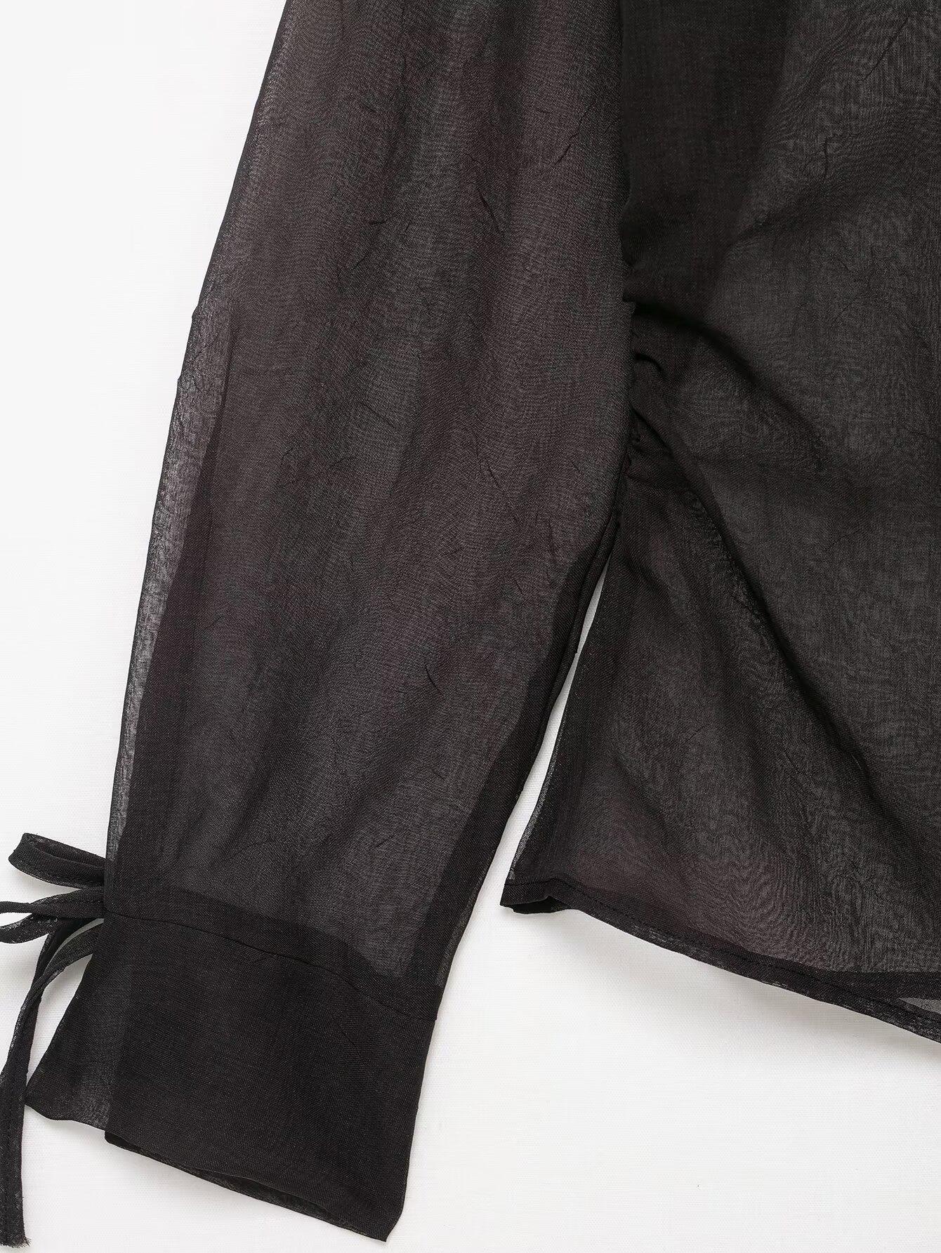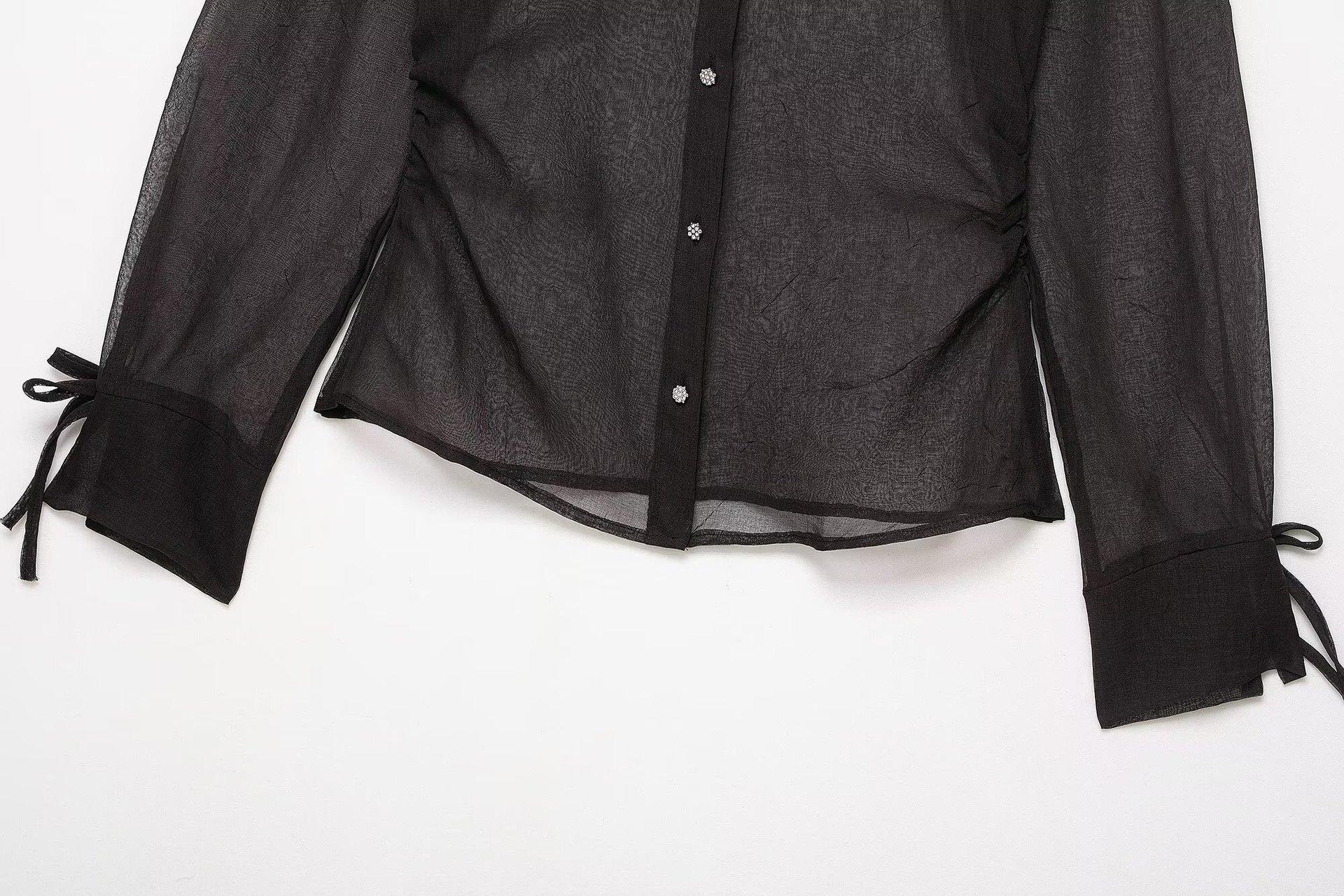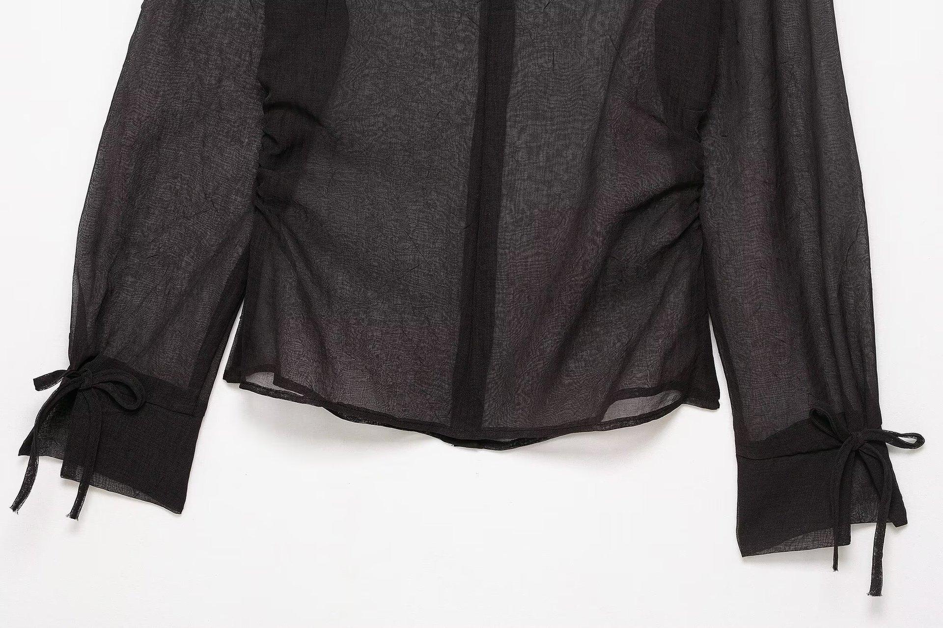 Otoño 2025 Ropa Nueva para Mujer Estilo Europeo y Americano Moda Decoración de Lazo Camisa Semitransparente 8615737