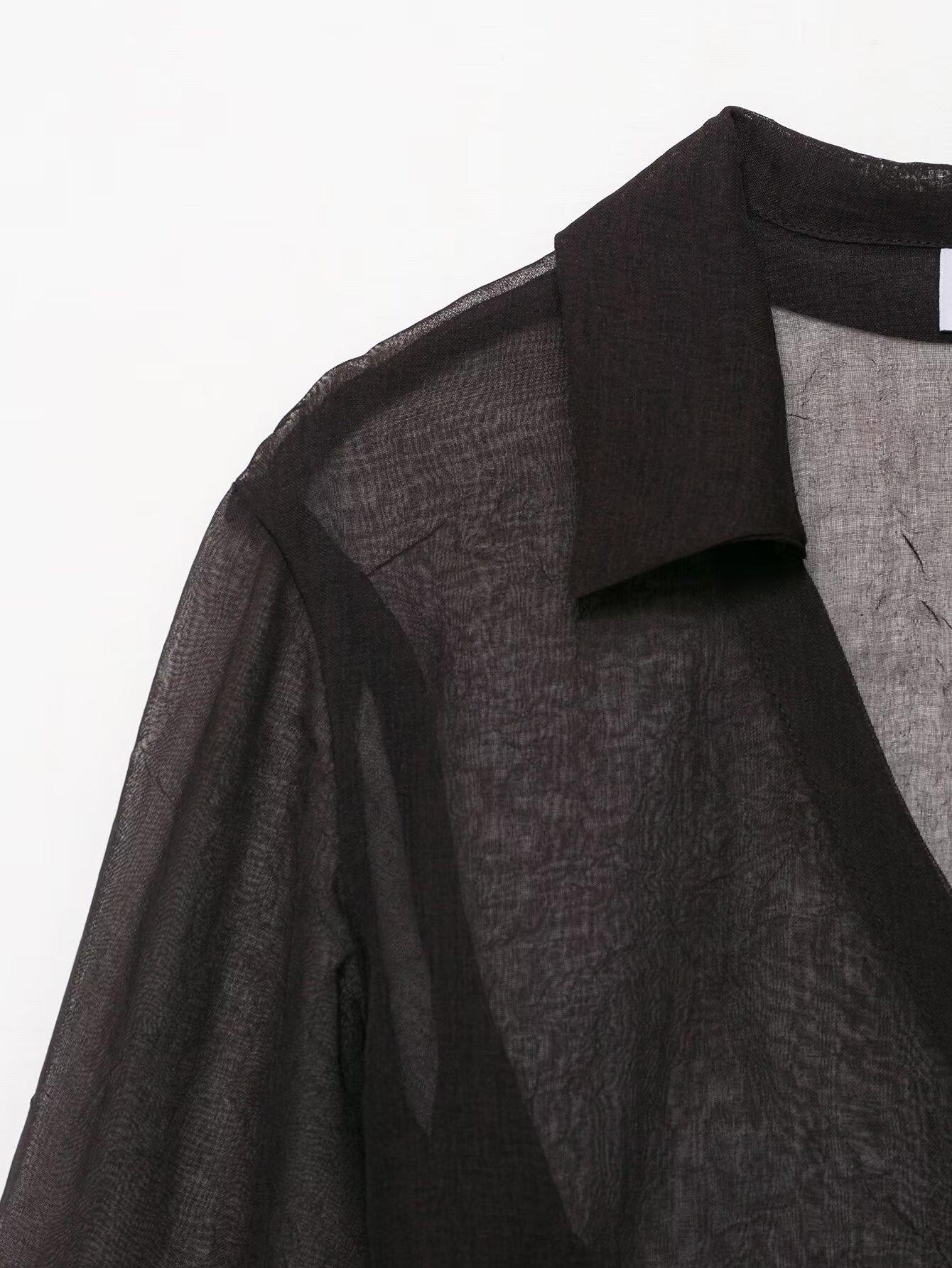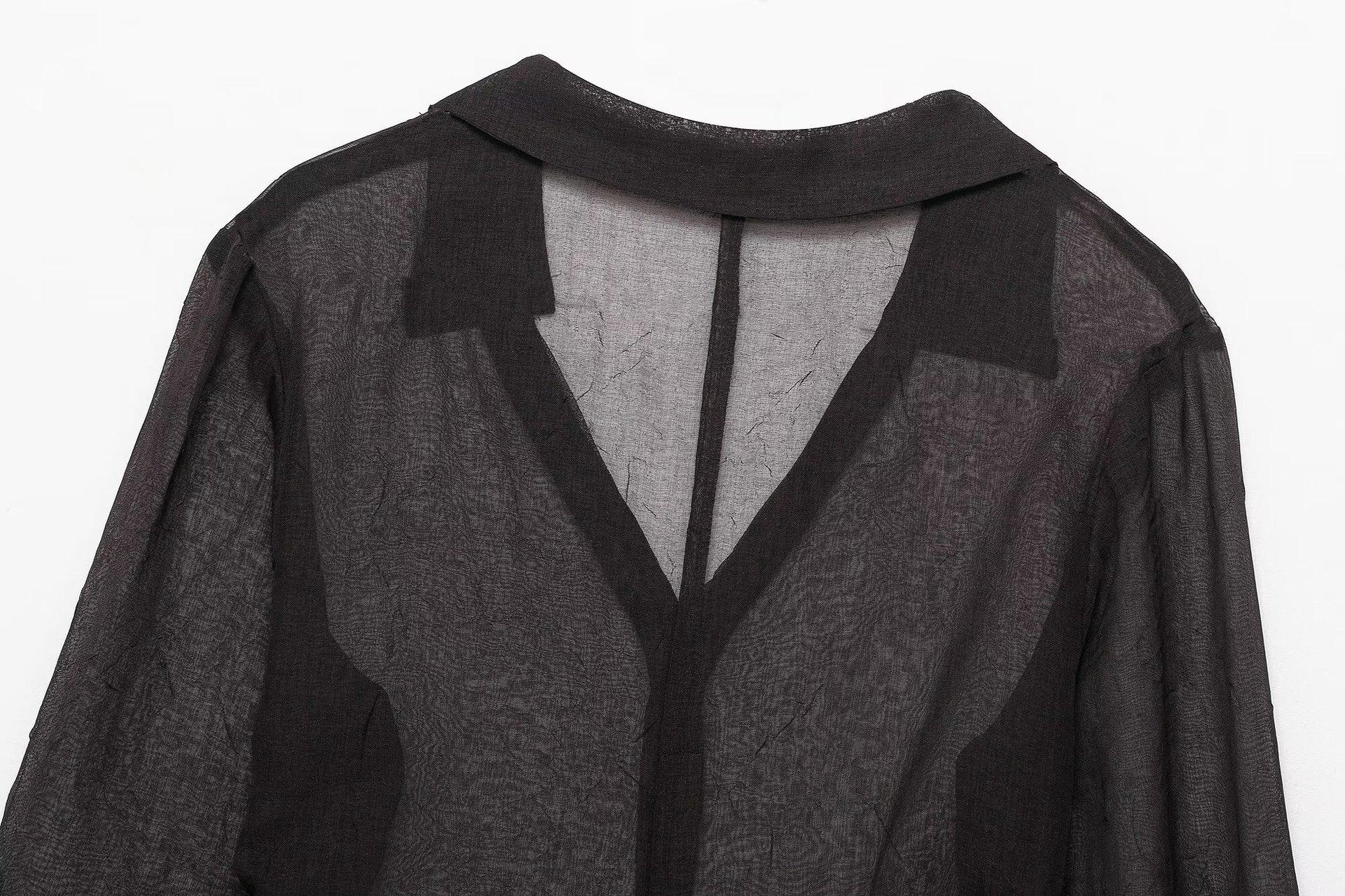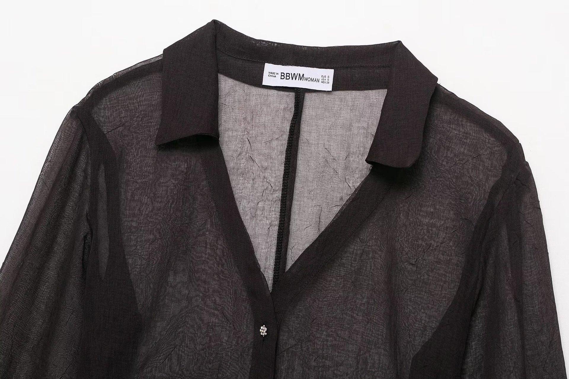 Otoño 2025 Ropa Nueva para Mujer Estilo Europeo y Americano Moda Decoración de Lazo Camisa Semitransparente 8615737