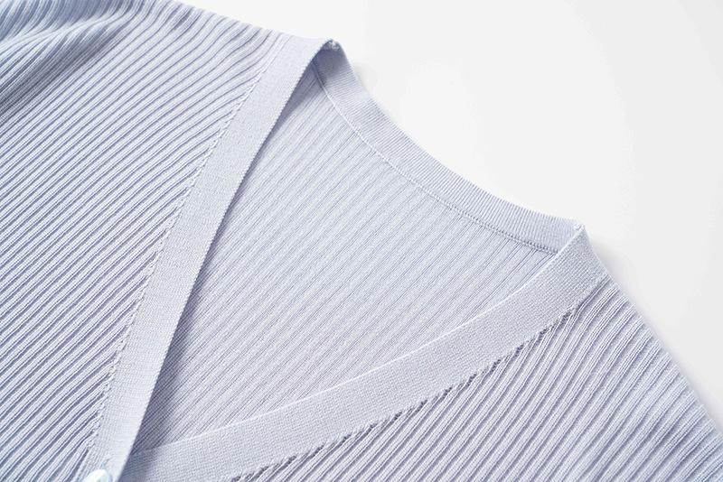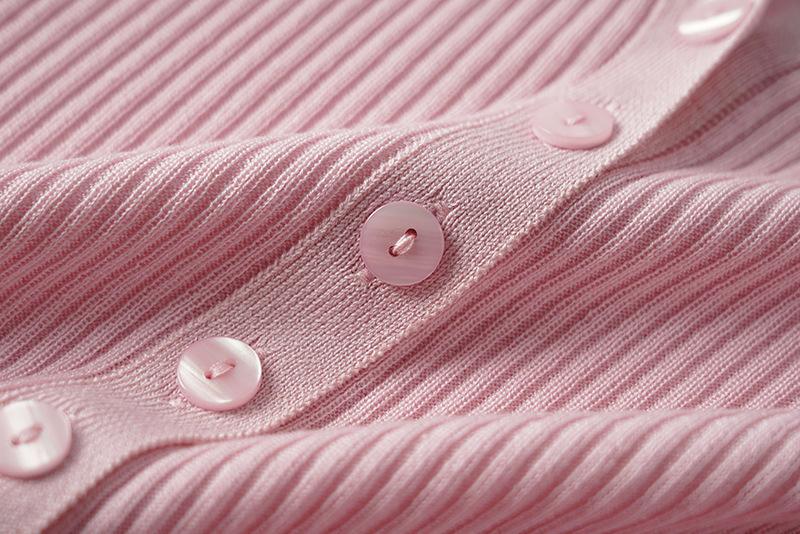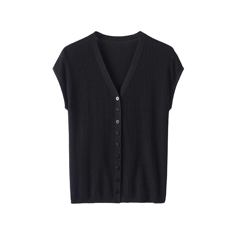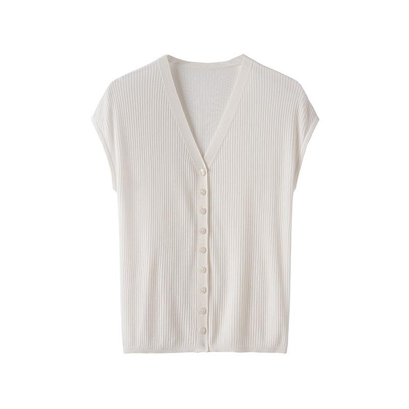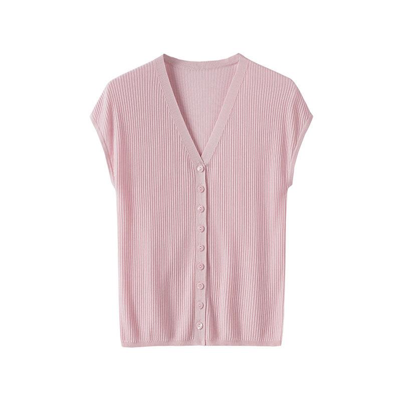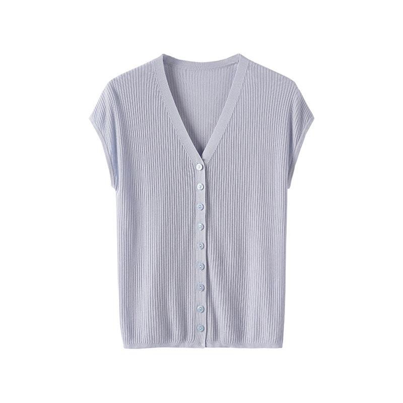 ¡¡Combinación de hilo de alta gama verdaderamente lujosa!! Cárdigan de punto acanalado de manga corta abullonada