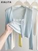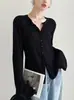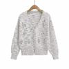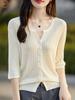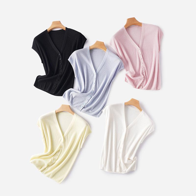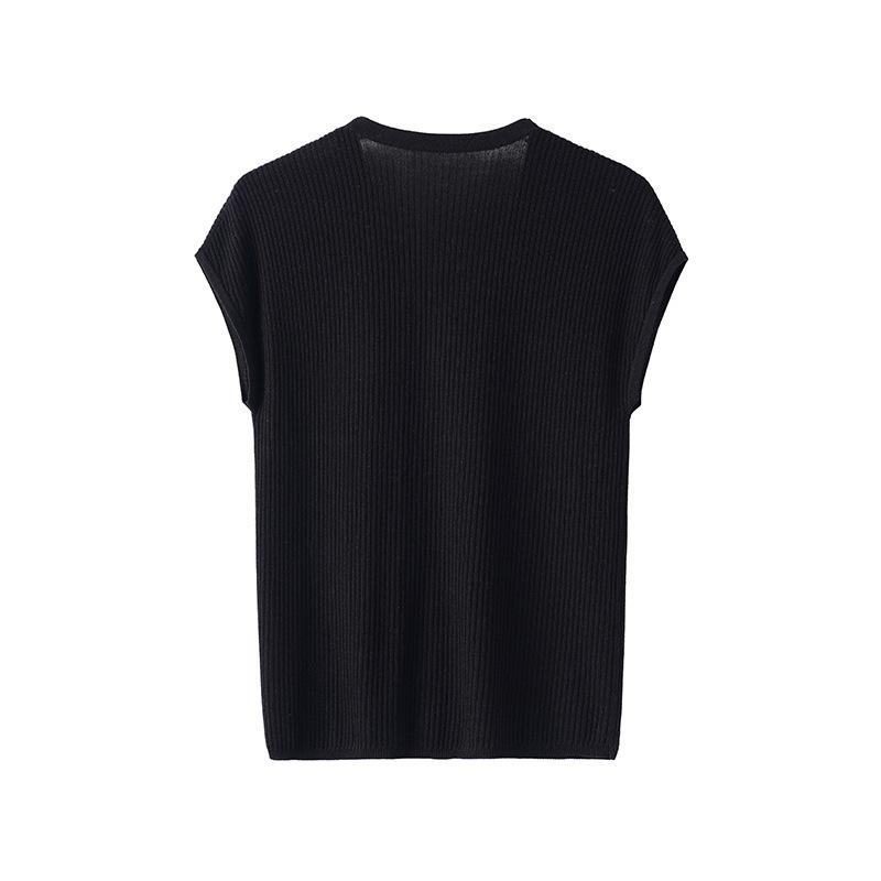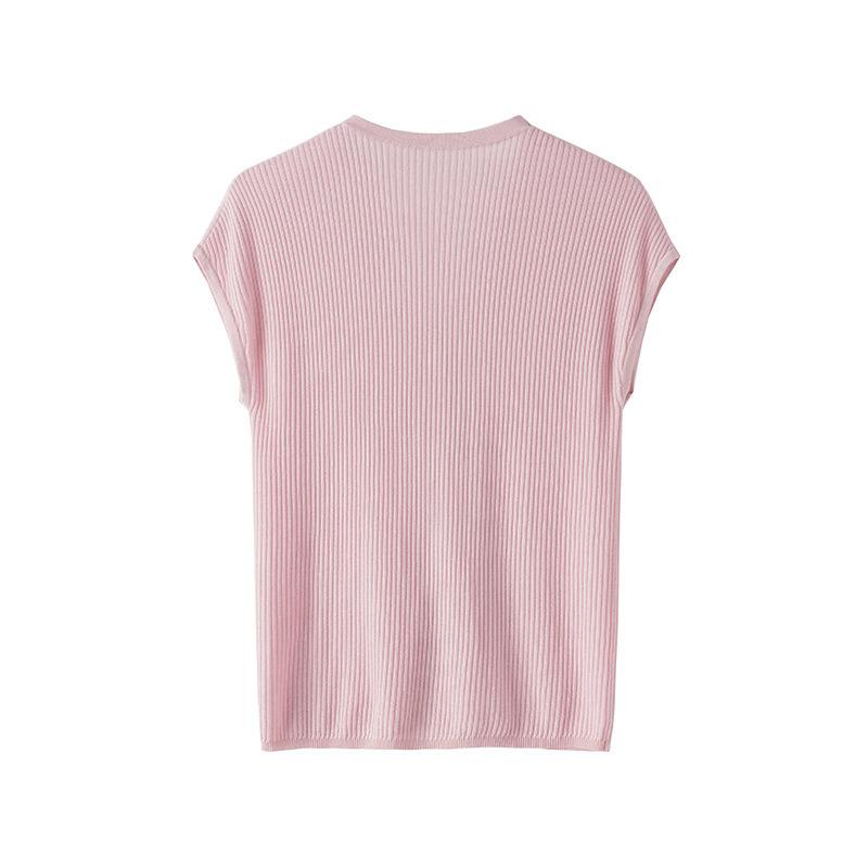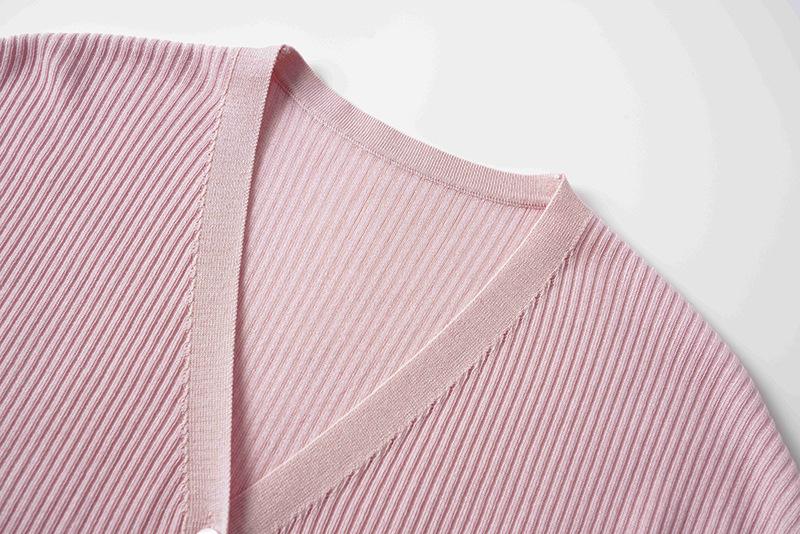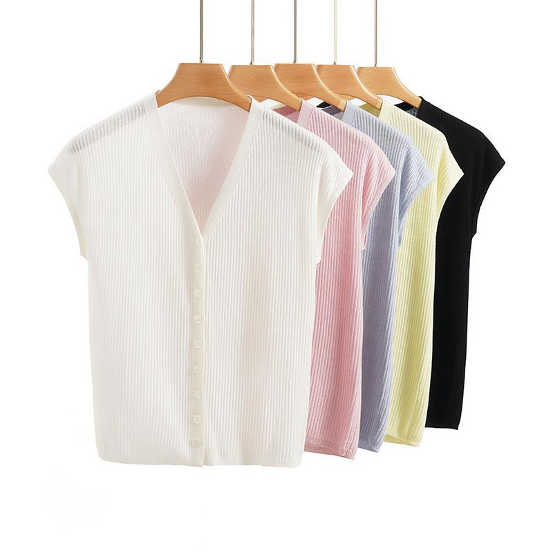 ¡¡Combinación de hilo de alta gama verdaderamente lujosa!! Cárdigan de punto acanalado de manga corta abullonada