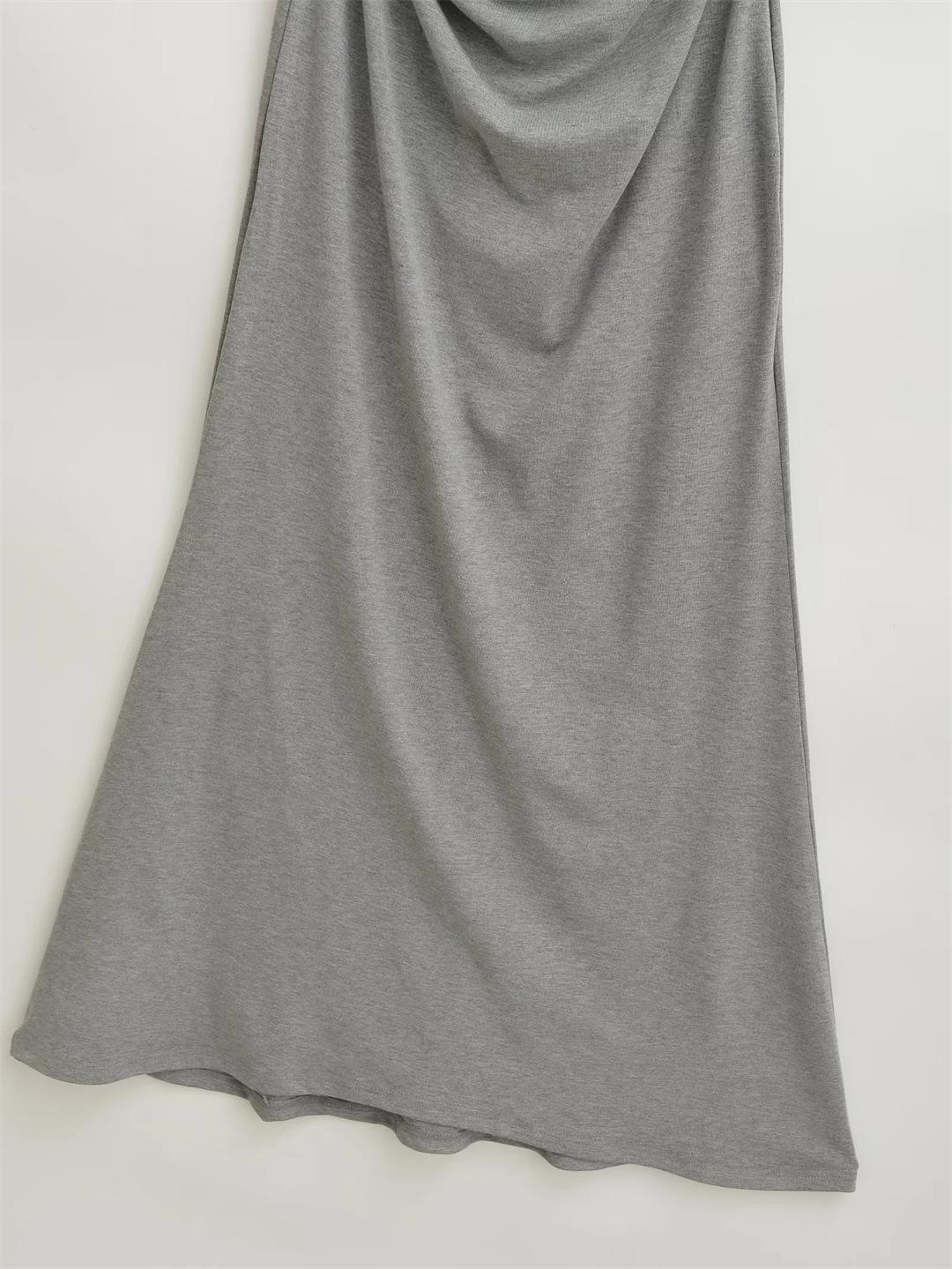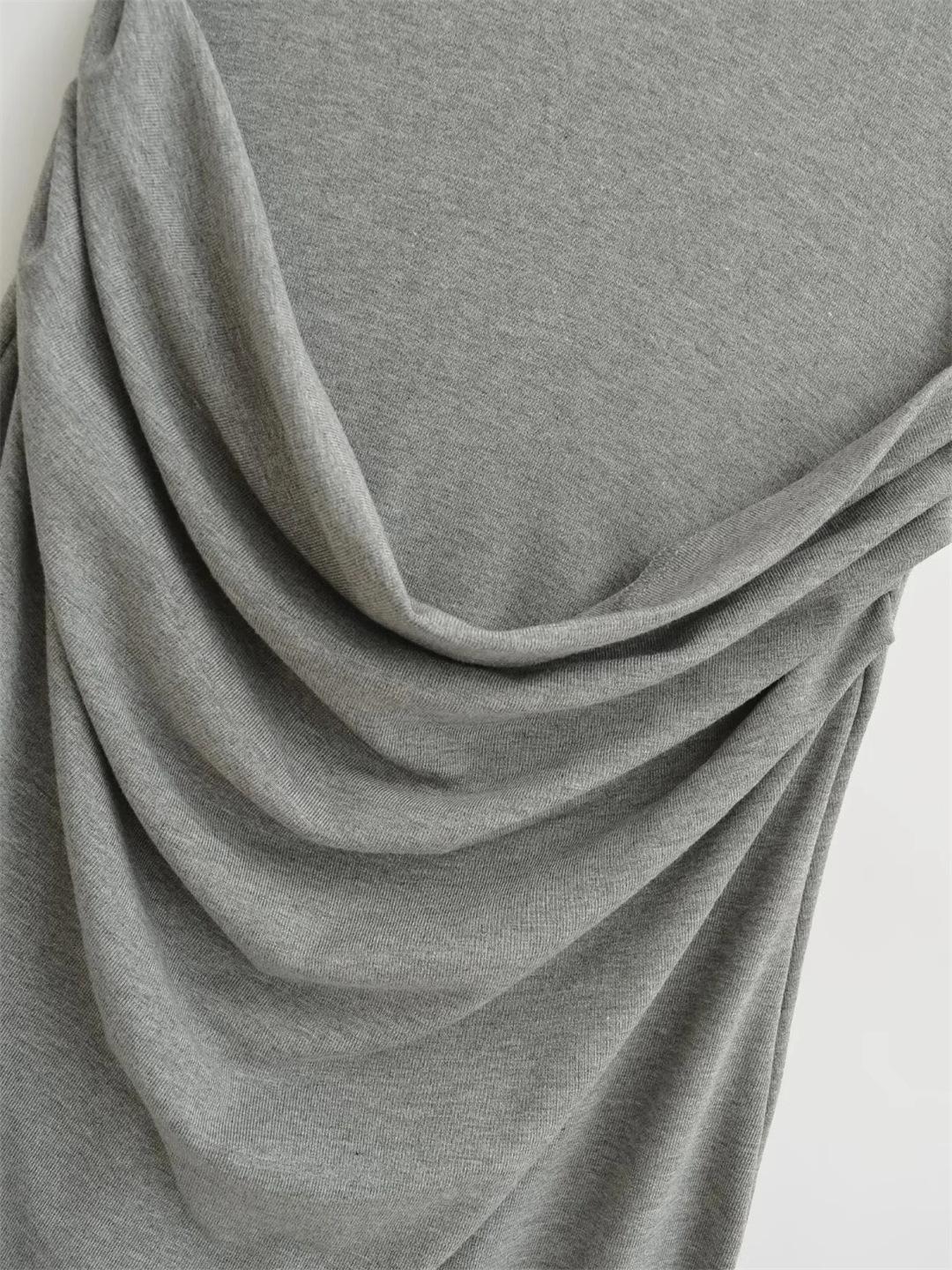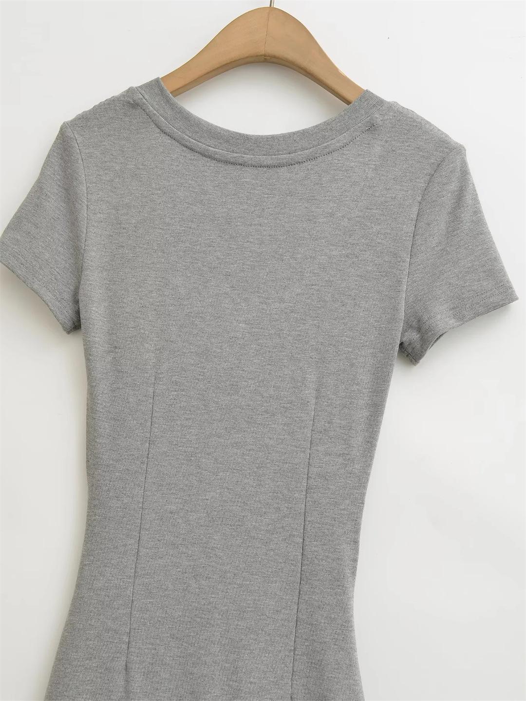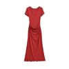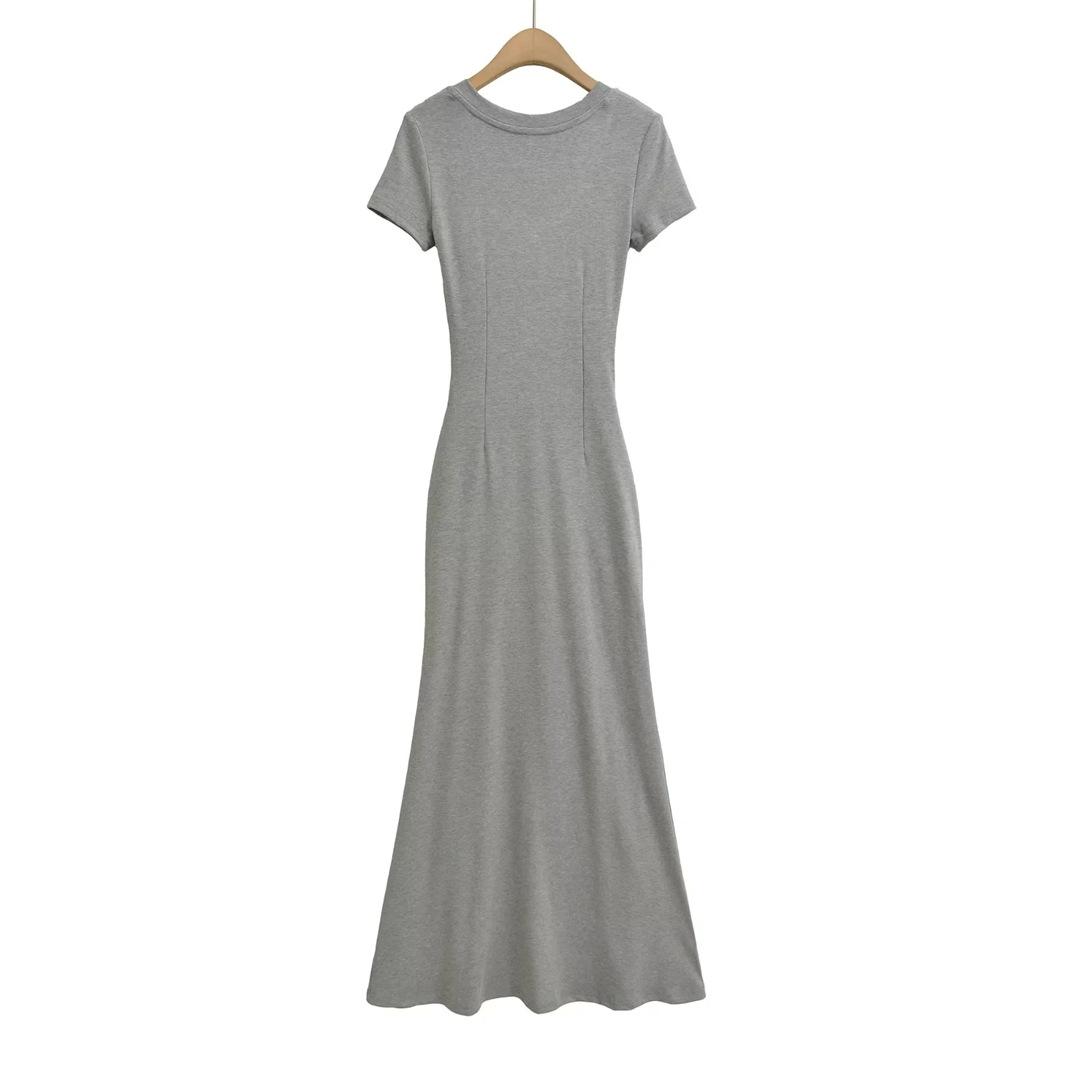 Vestido largo ajustado sexy elástico de color sólido estilo europeo y americano para mujer, cuello en V, cintura plisada ceñida, manga corta