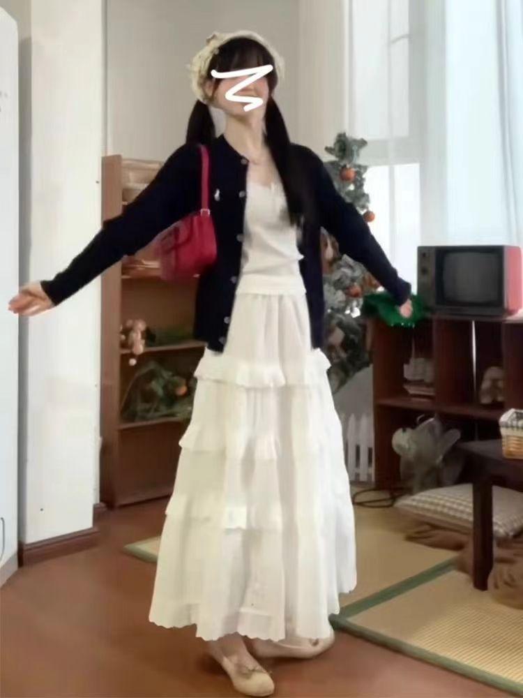 Sleeveless Tank Top【Single Piece】, Black cardigan [single piece], Skirt【One piece】