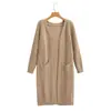 Cárdigan de punto transfronterizo para mujer 2025 otoño e invierno nueva moda estilo holgado perezoso suéter de longitud media