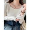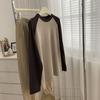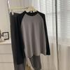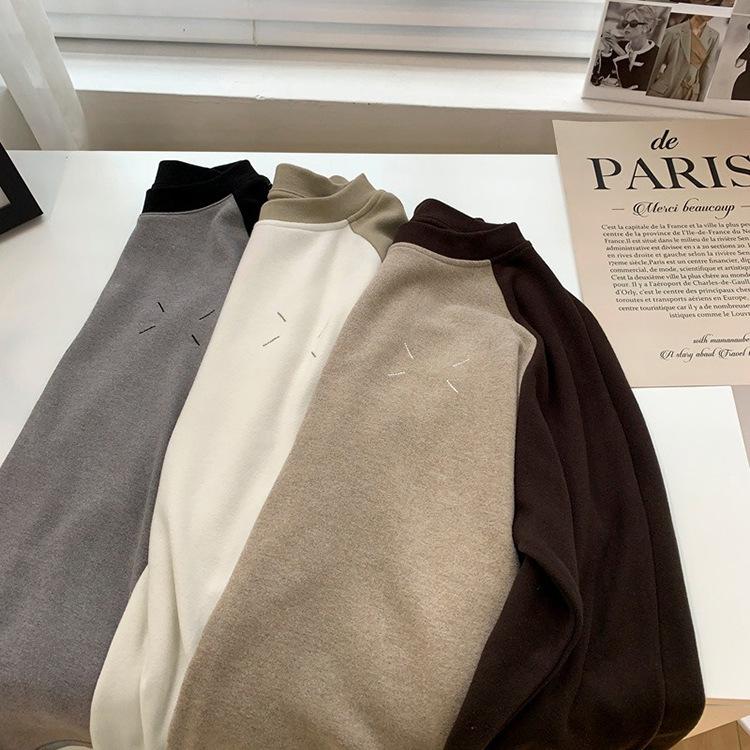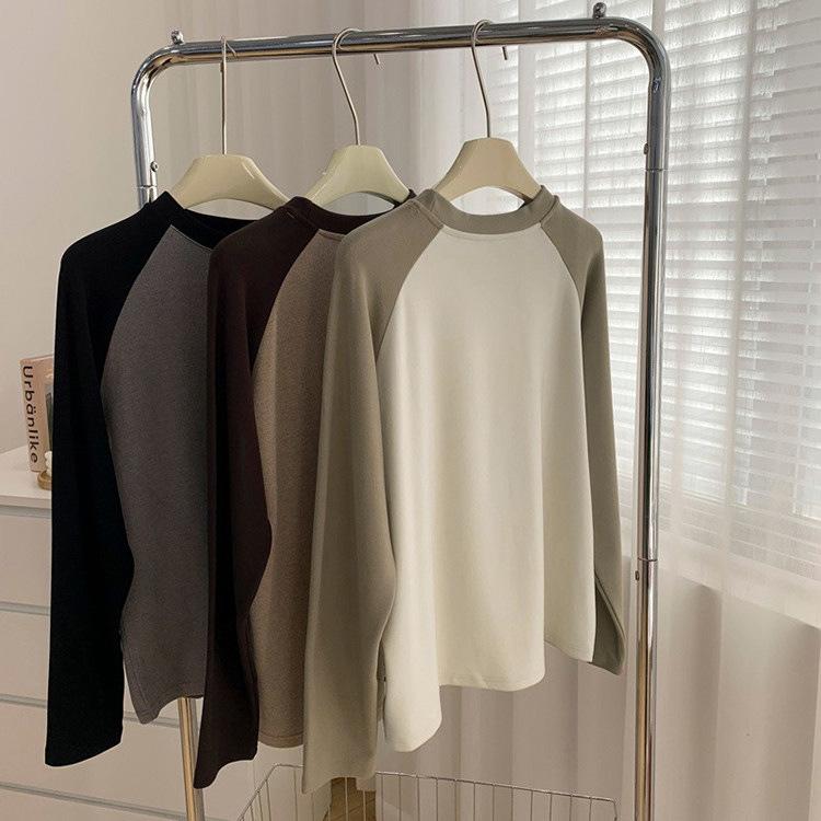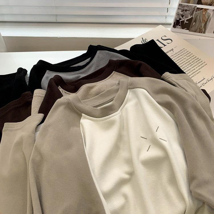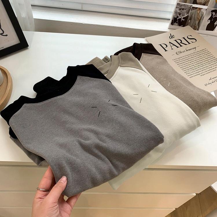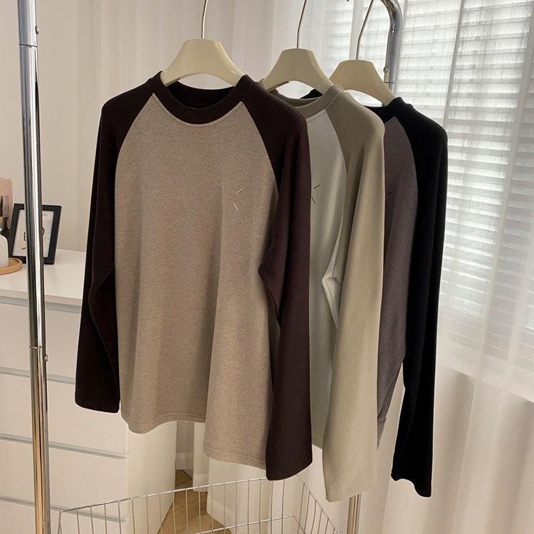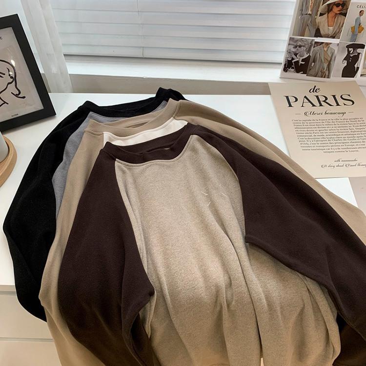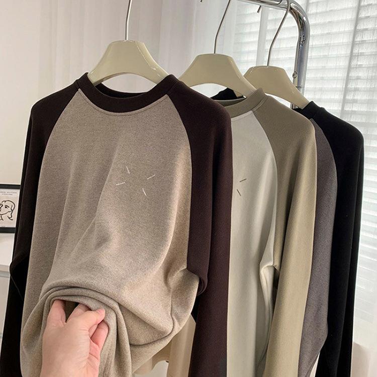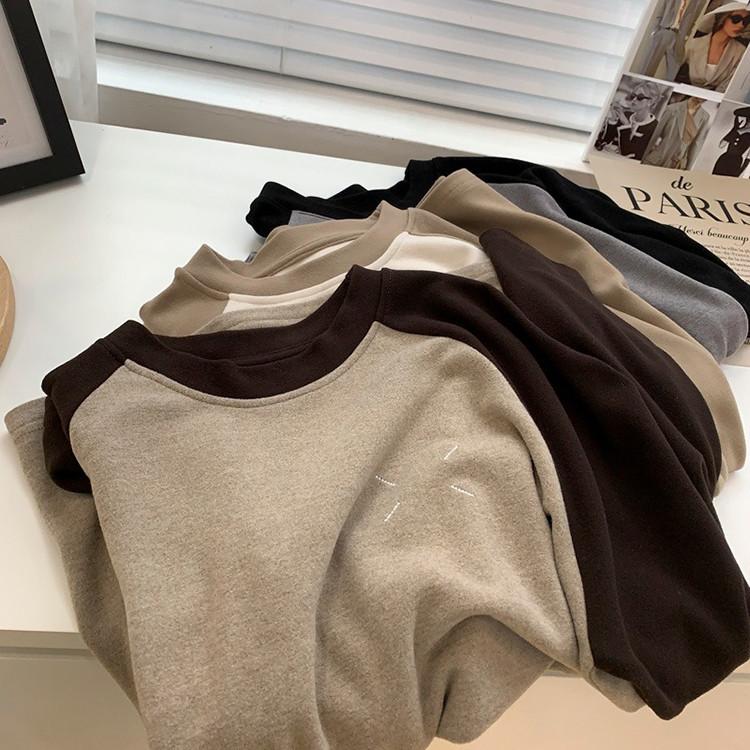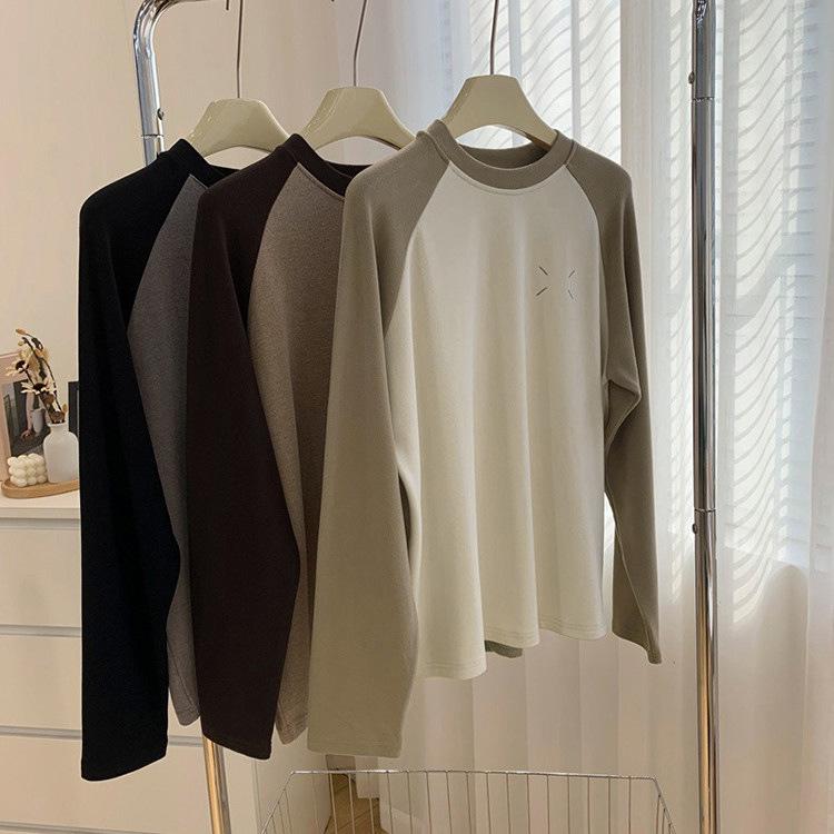 Camiseta de Manga Larga Raglán Mujer Otoño Invierno Nueva Gruesa Holgada Interior Bordado Terciopelo Alemán Cálida Camiseta Base Top Ropa Exterior