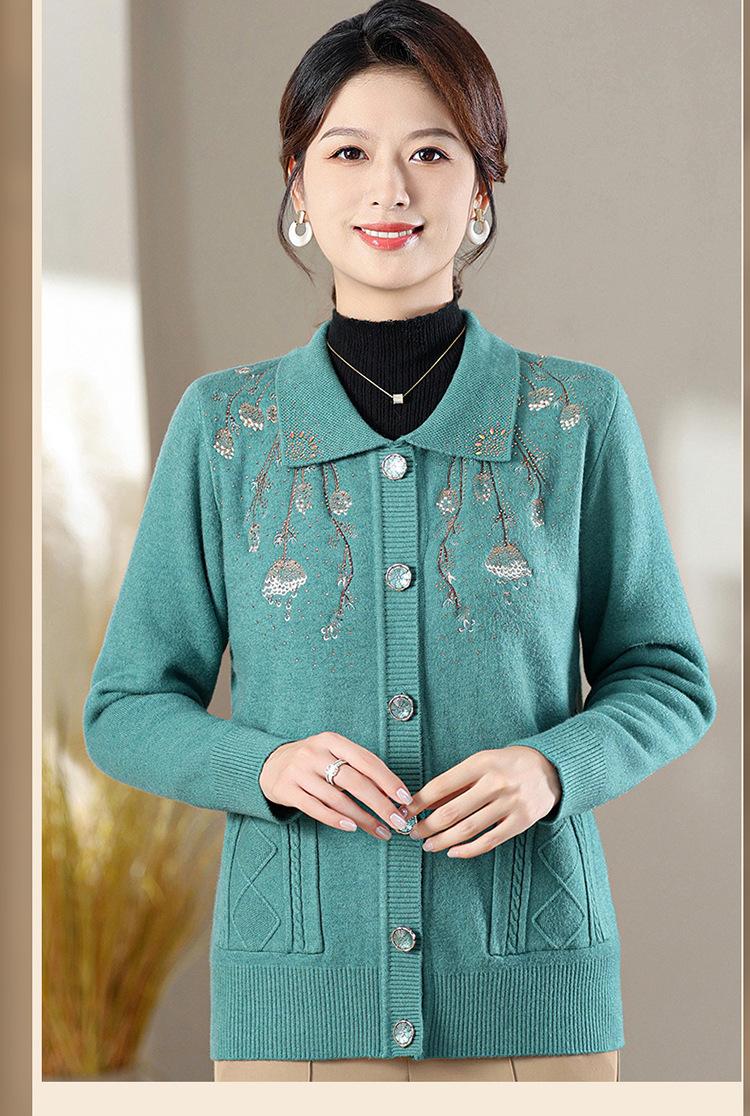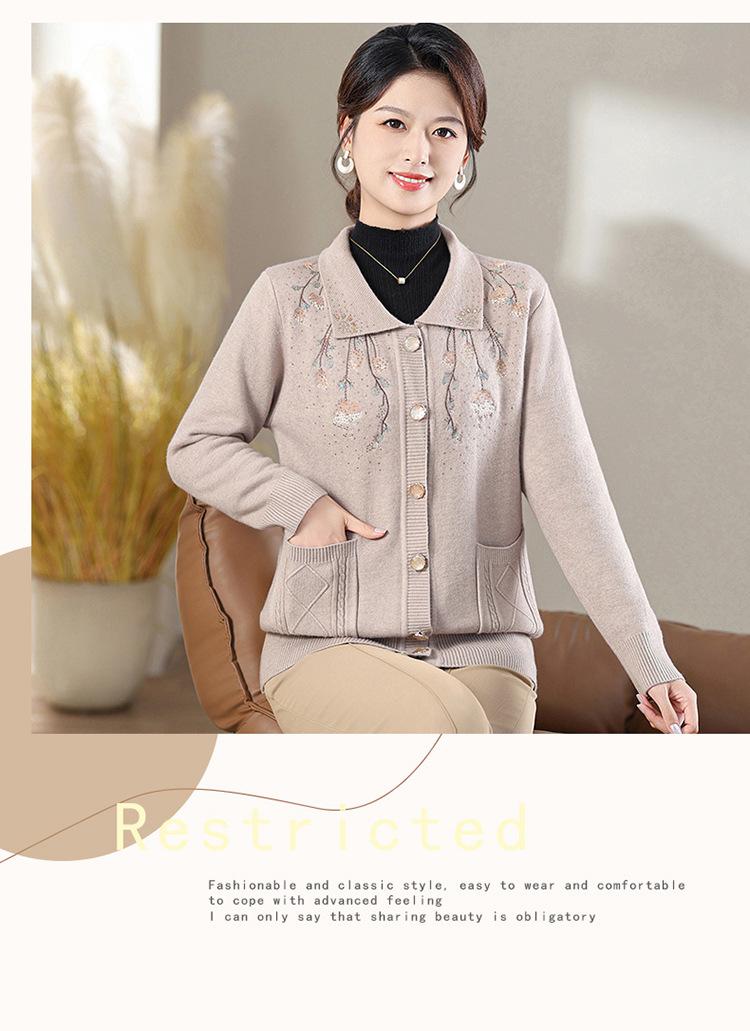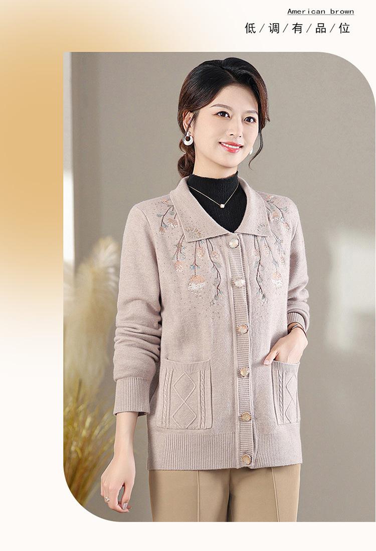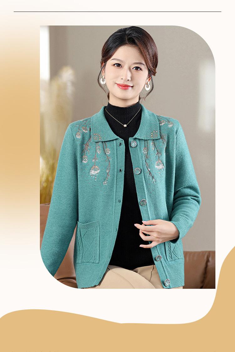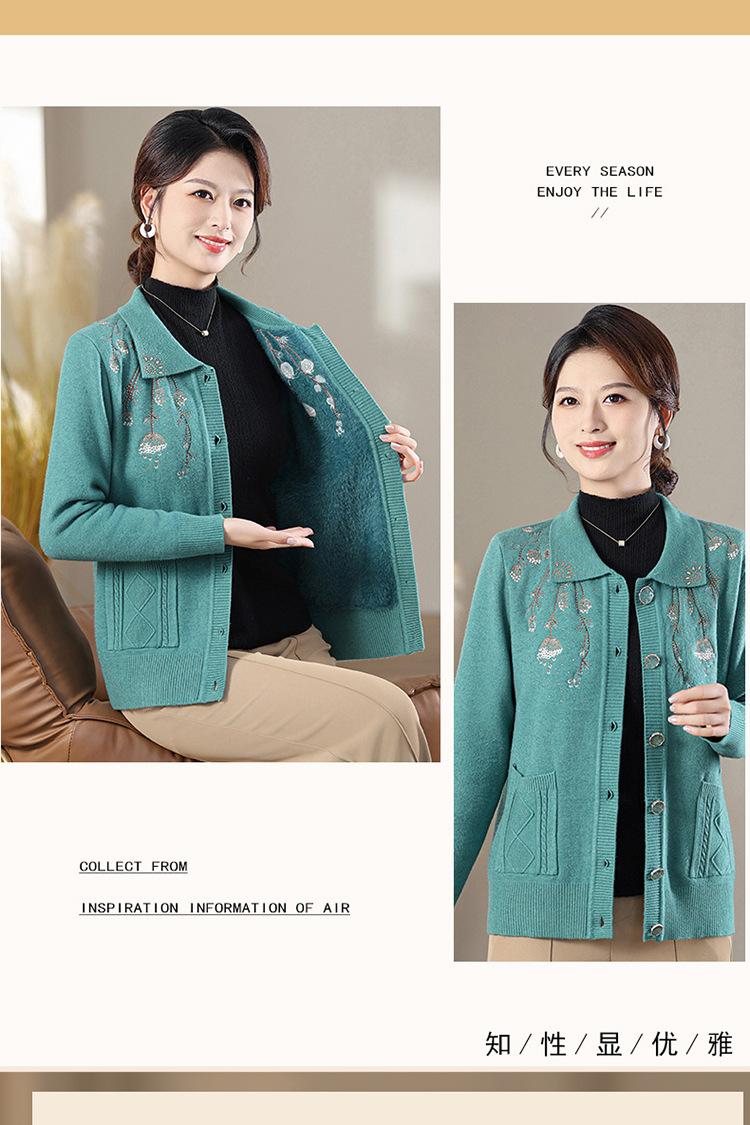 Abrigo de invierno para madre, grueso, de terciopelo de una pieza, cárdigan de punto para mediana edad y personas mayores, solapa con forro polar para madre, ropa cálida de otoño e invierno