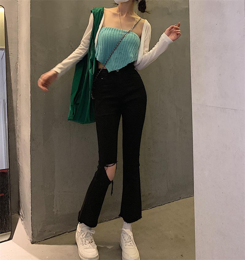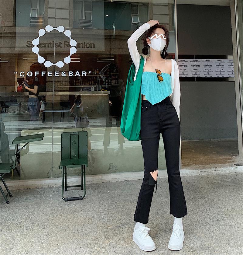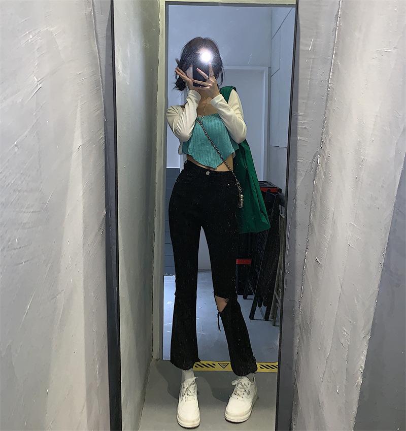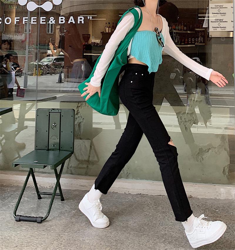 Comercio transfronterizo del Sudeste Asiático jeans de mujer al por mayor con agujeros elásticos mujer sacude sonido libro rojo pequeño una generación de suministro