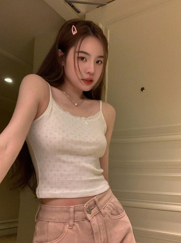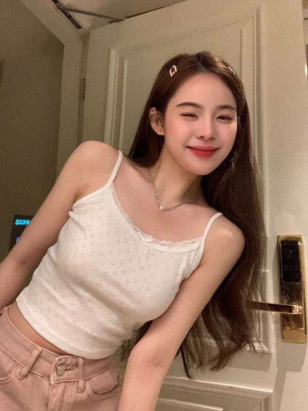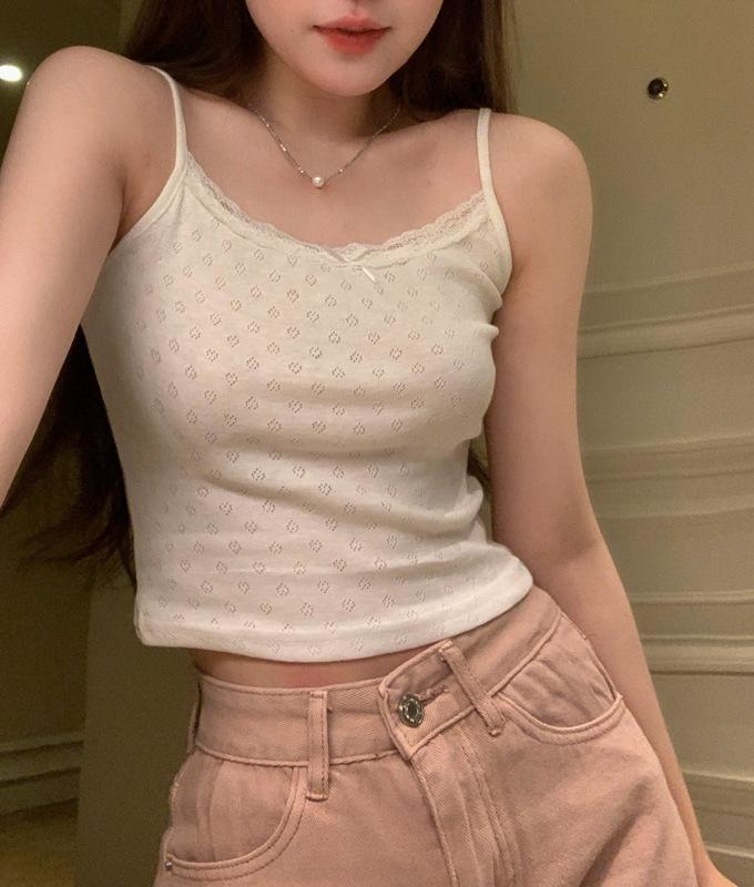 2025 Camisola de Encaje Blanco Ropa Interior para Mujer Top Corto Camiseta Base Sexy Sexy Tirante Pequeño