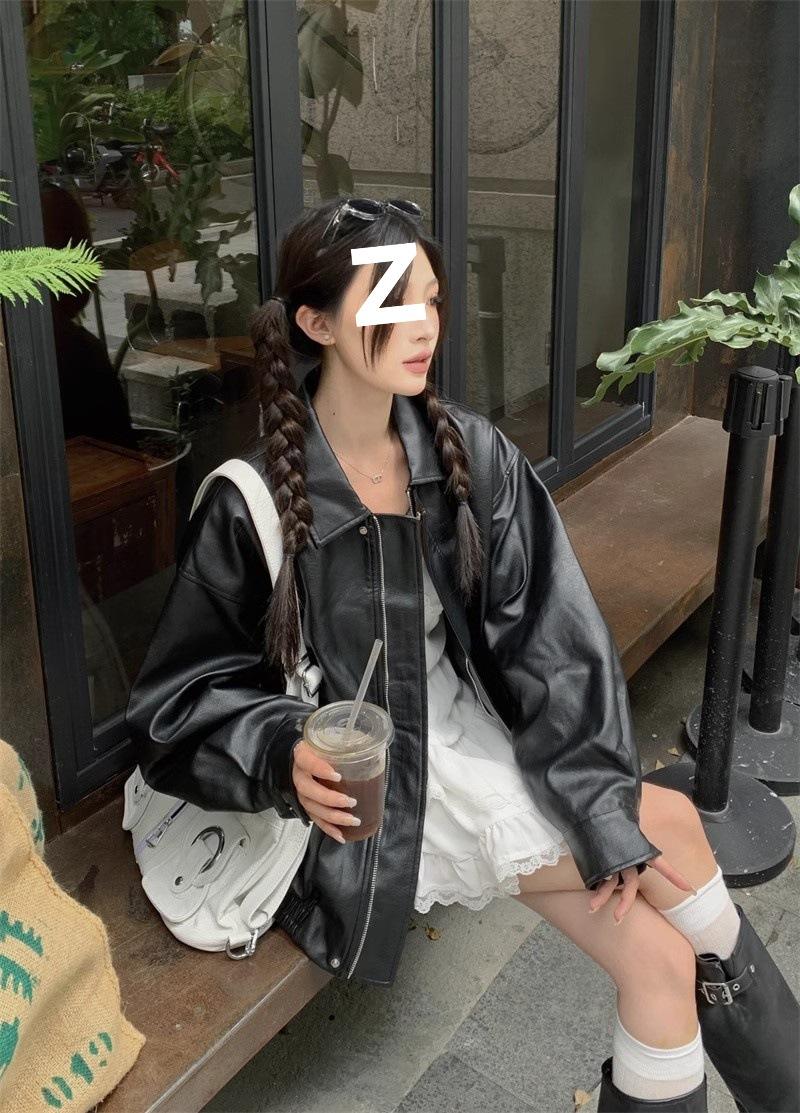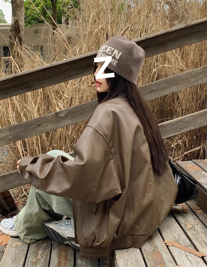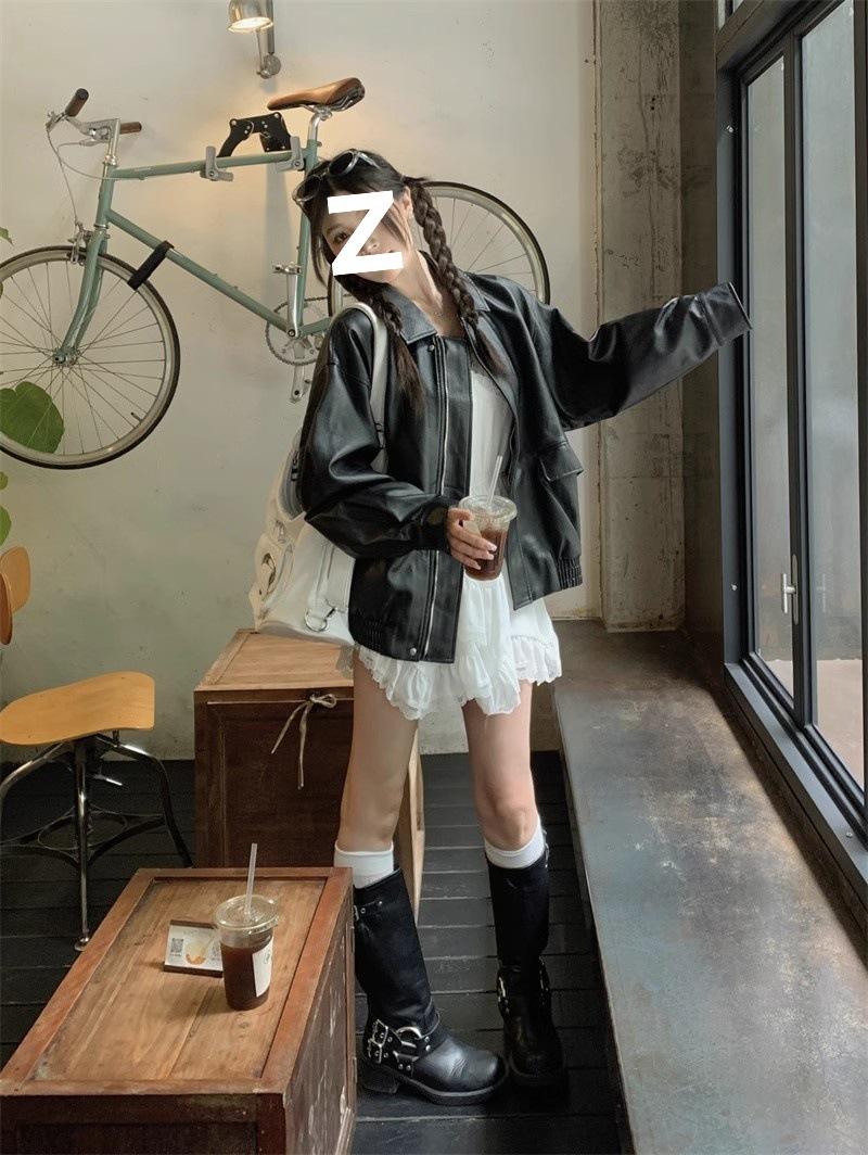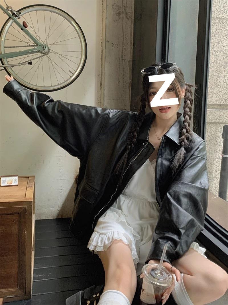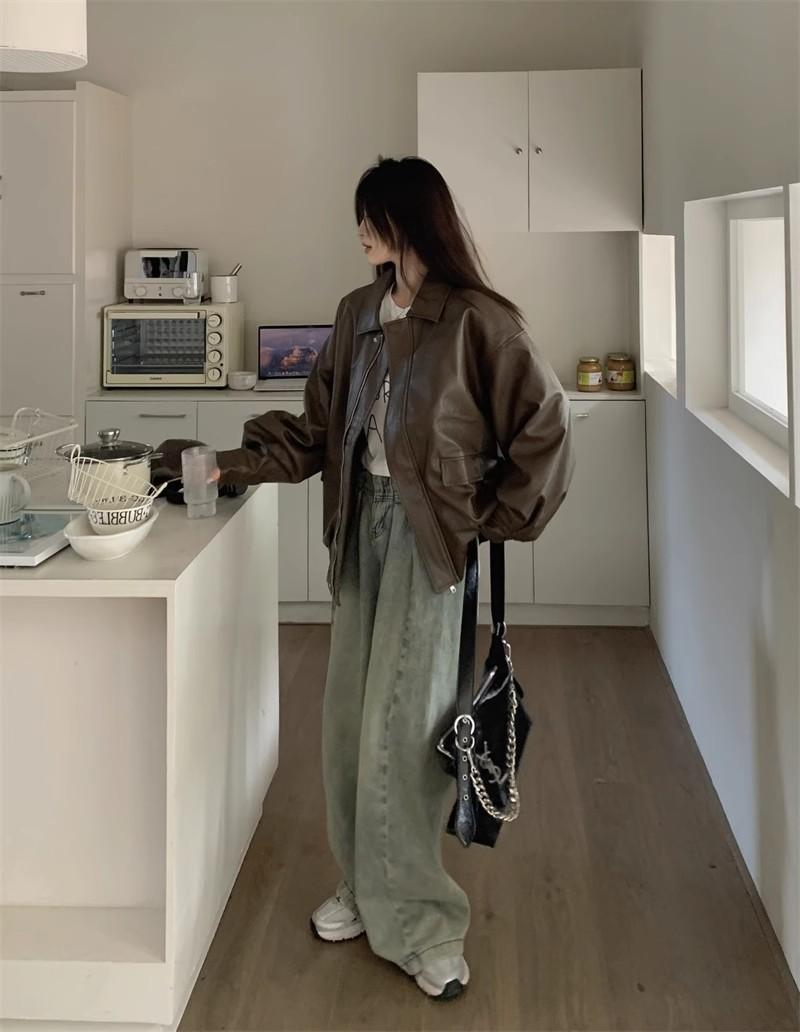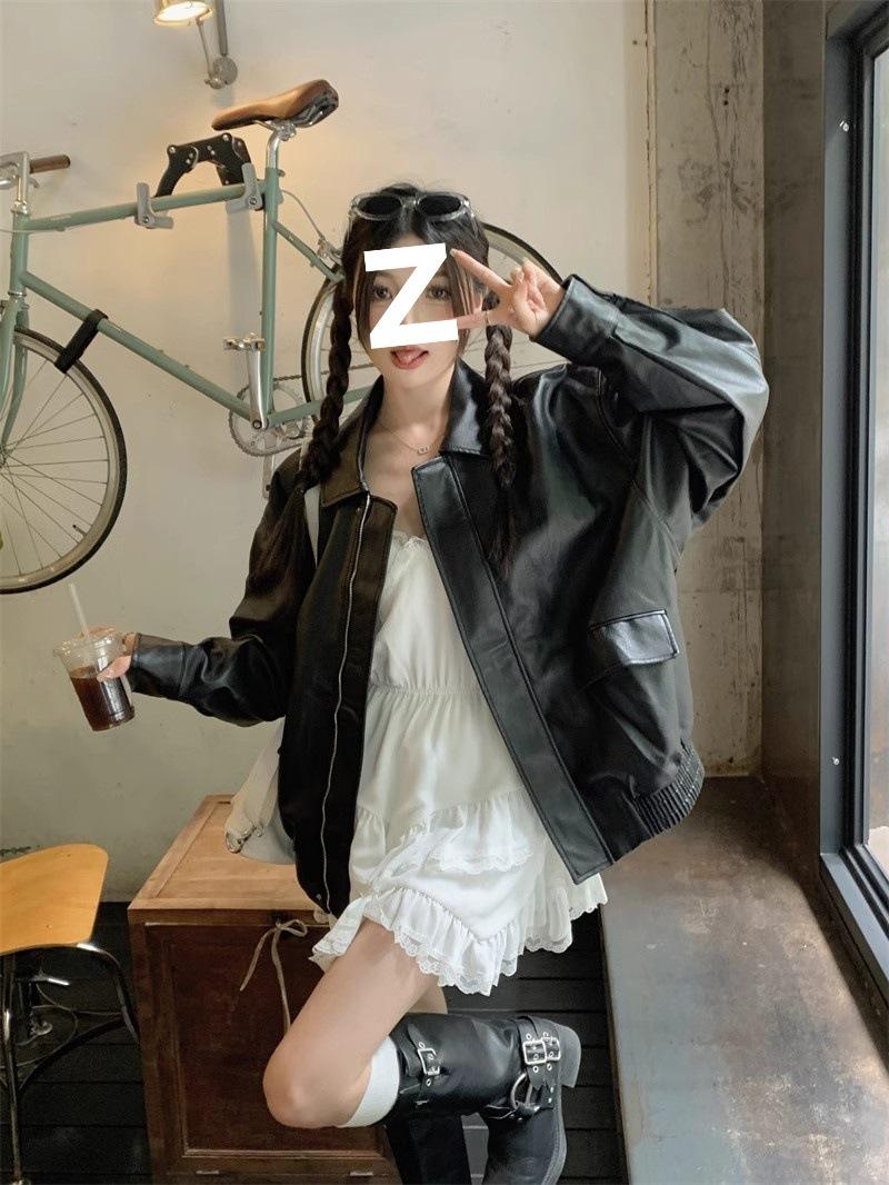 Chaqueta de Cuero Marrón Maillard para Motocicleta para Mujer 2025 Nueva Primavera y Otoño Americana Retro Cortavientos PU Chaqueta Abrigo Tendencia