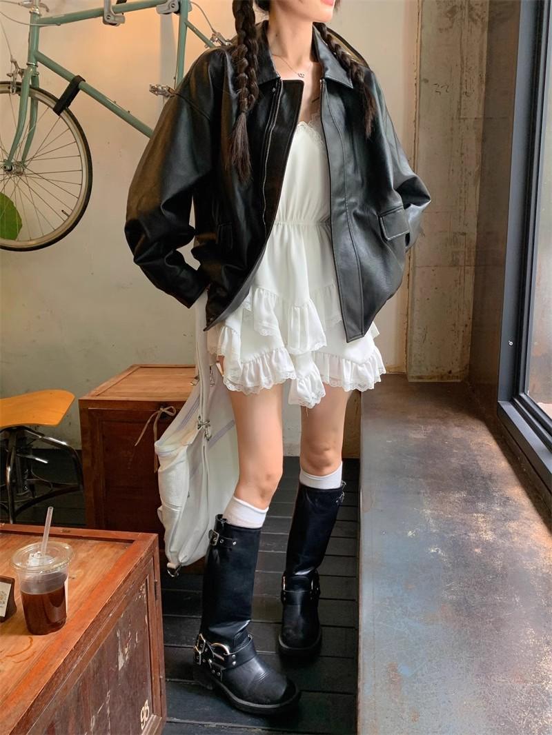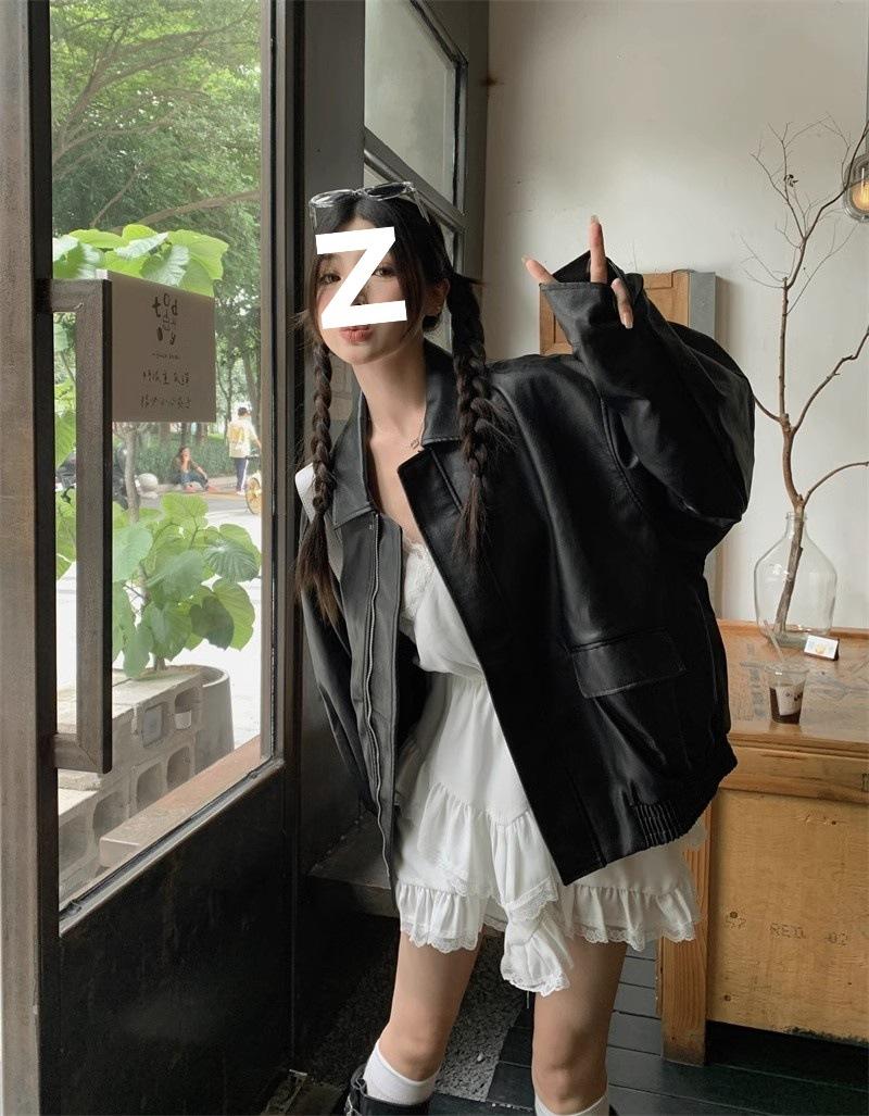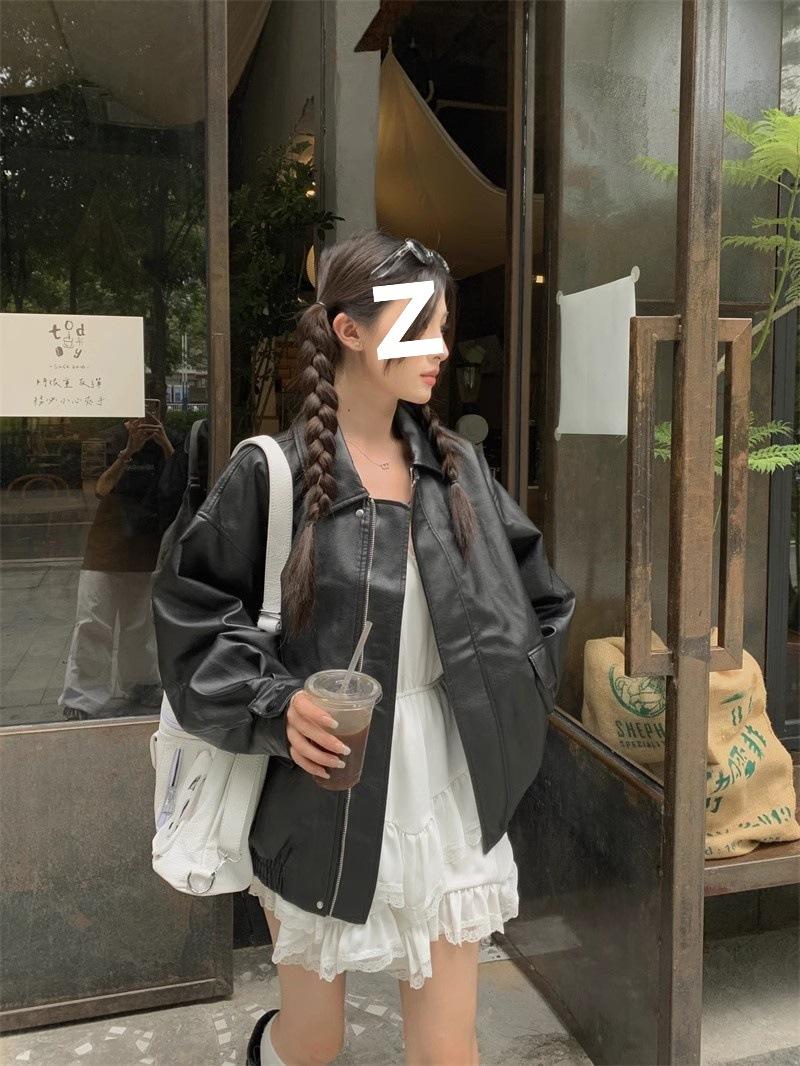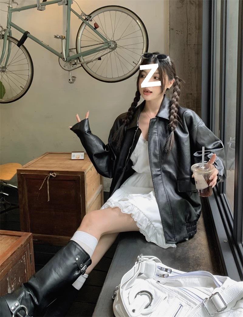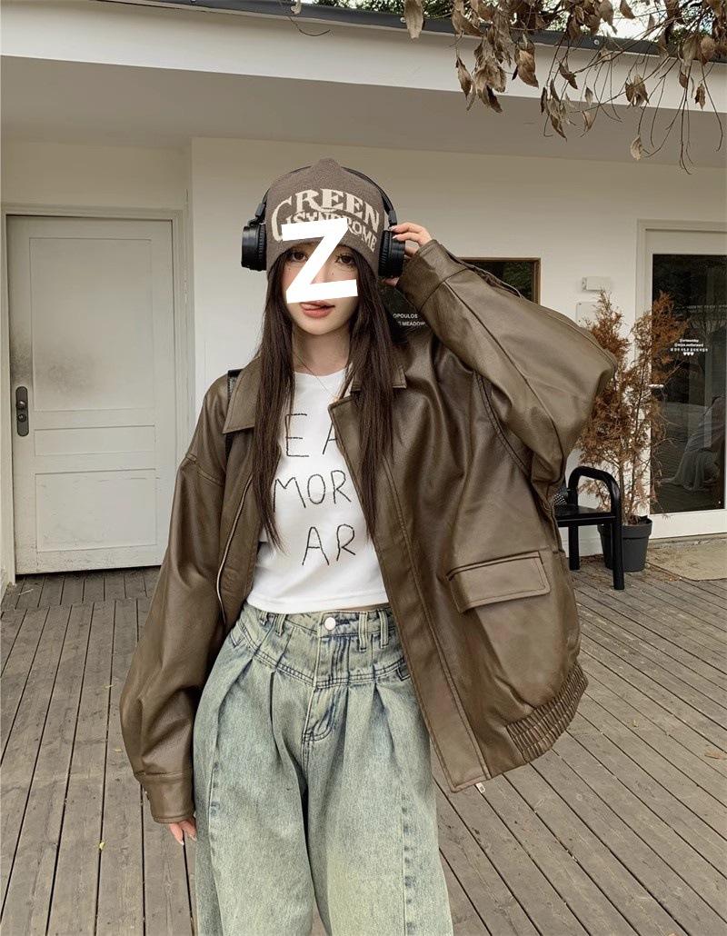 Chaqueta de Cuero Marrón Maillard para Motocicleta para Mujer 2025 Nueva Primavera y Otoño Americana Retro Cortavientos PU Chaqueta Abrigo Tendencia