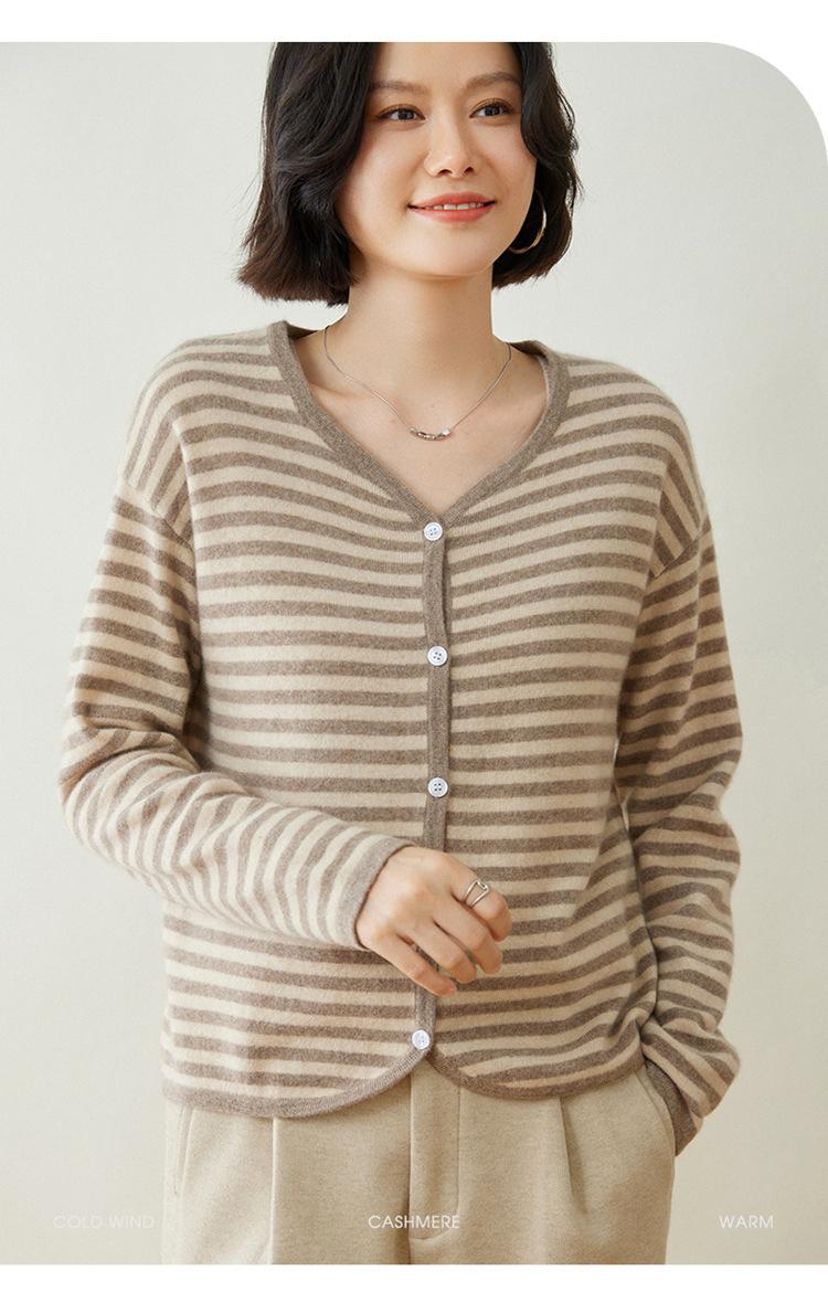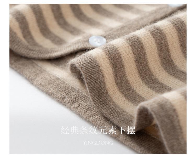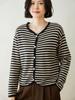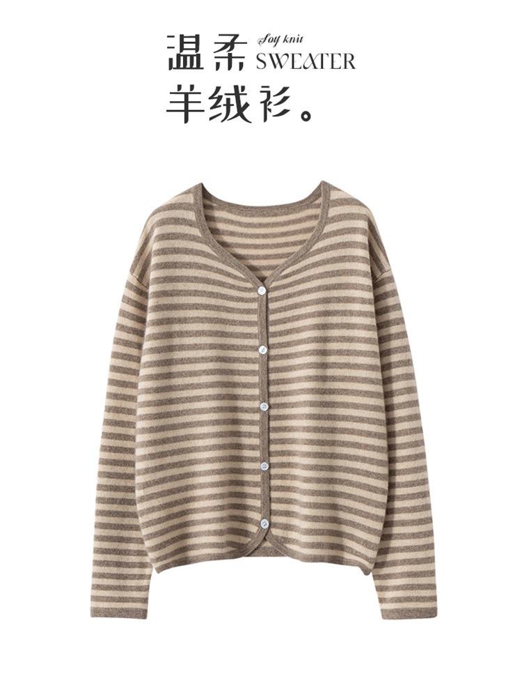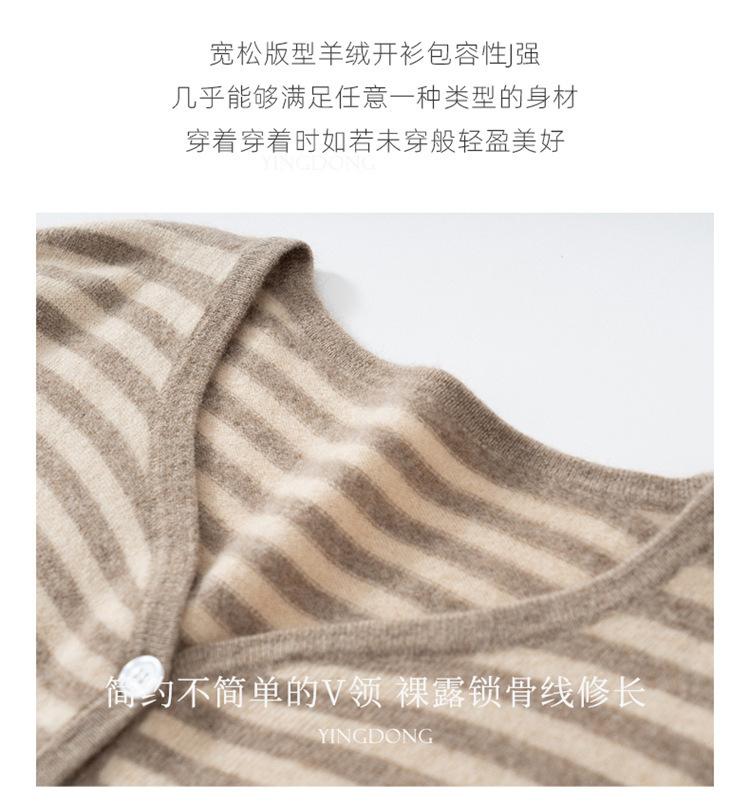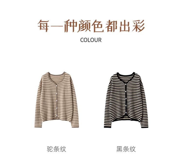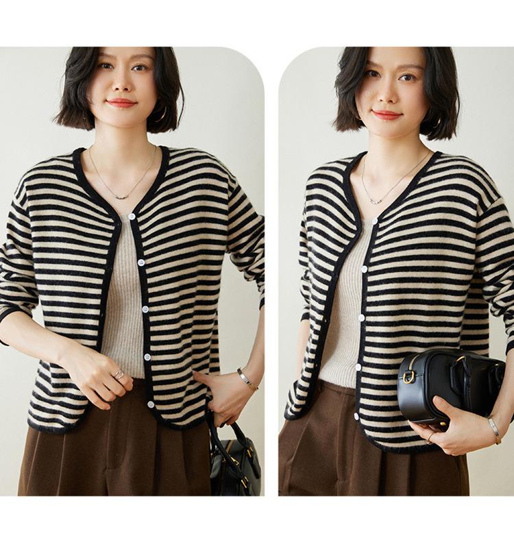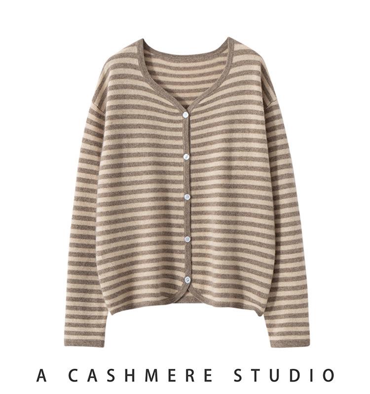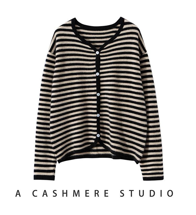 Otoño/Invierno 2025 Nueva Ropa de Punto de Cachemira para Mujer Manga Larga Diseño a Rayas Suelta Suave Versátil Estilo Holgazán Cárdigan