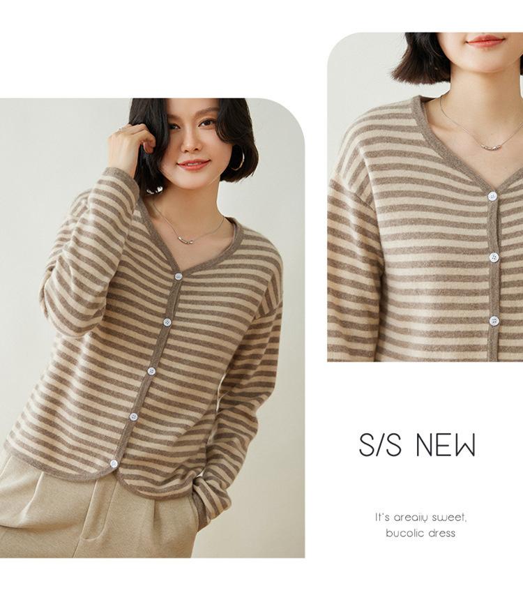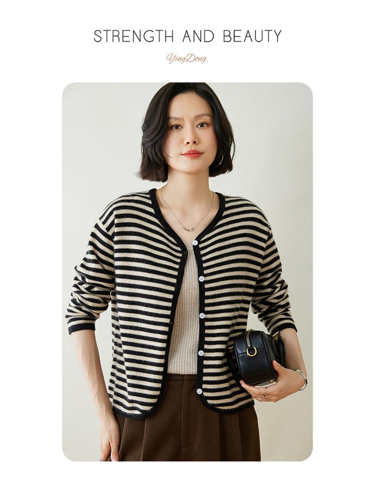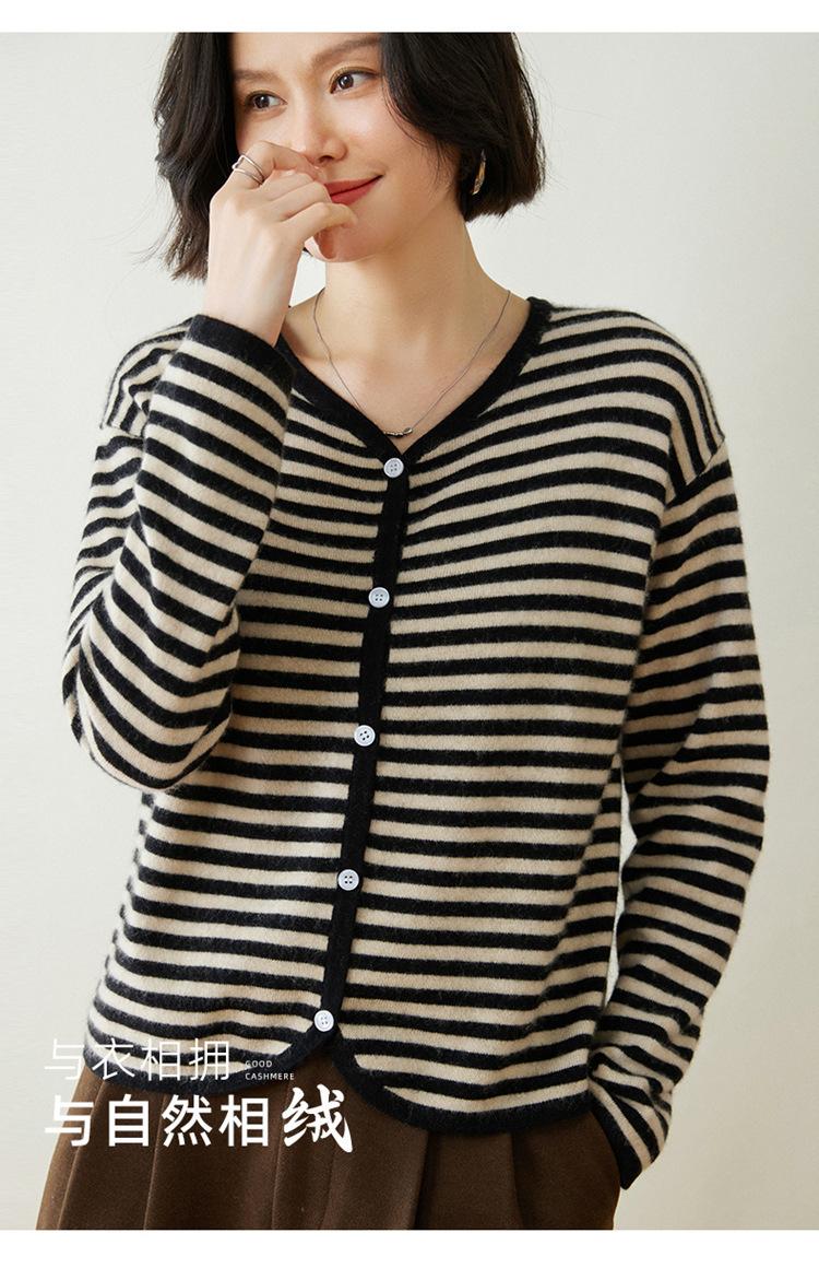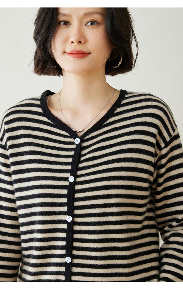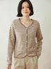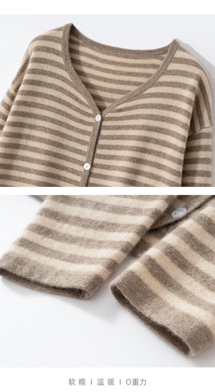 Otoño/Invierno 2025 Nueva Ropa de Punto de Cachemira para Mujer Manga Larga Diseño a Rayas Suelta Suave Versátil Estilo Holgazán Cárdigan